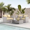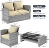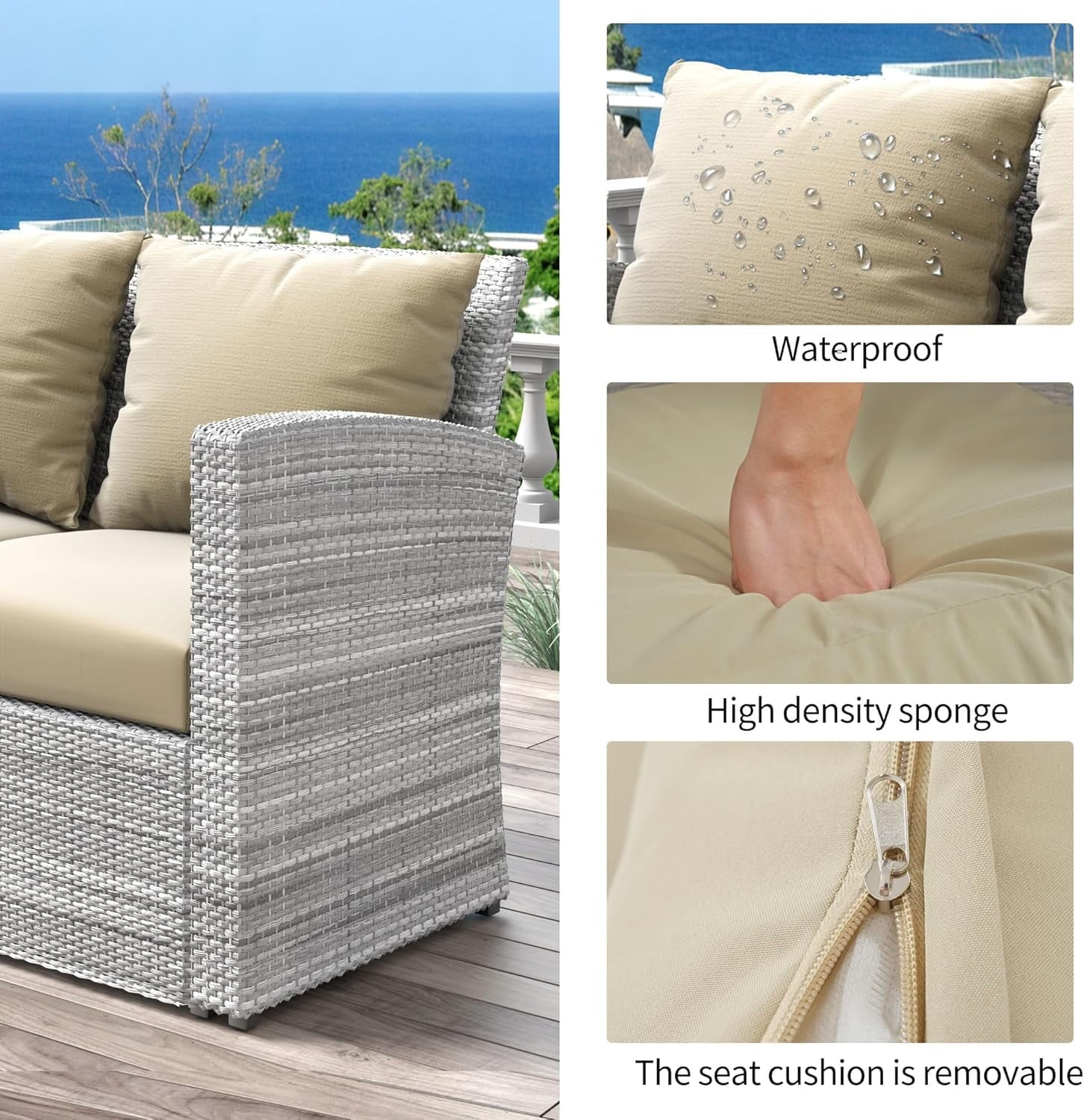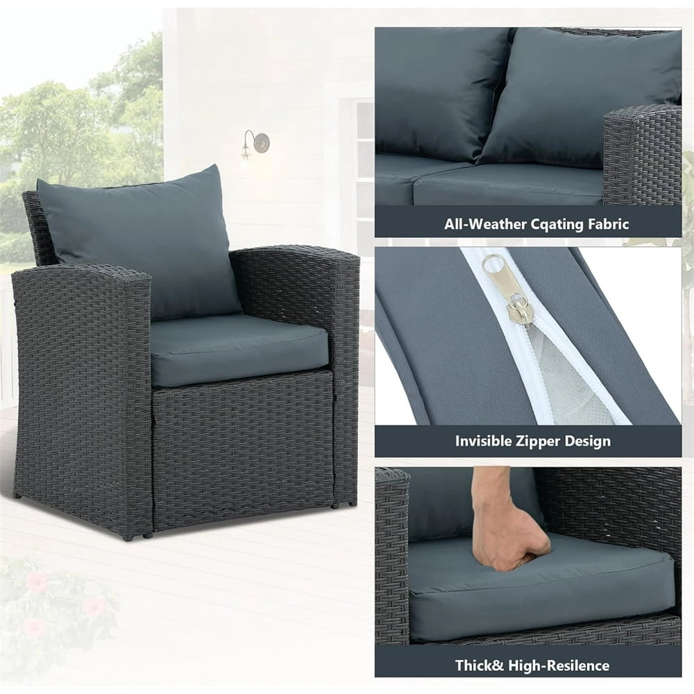 - The wicker sofa set comes with 4 thick seat cushions and 4 soft throw pillows, each with a zippered removable cover for easy cleaning.
