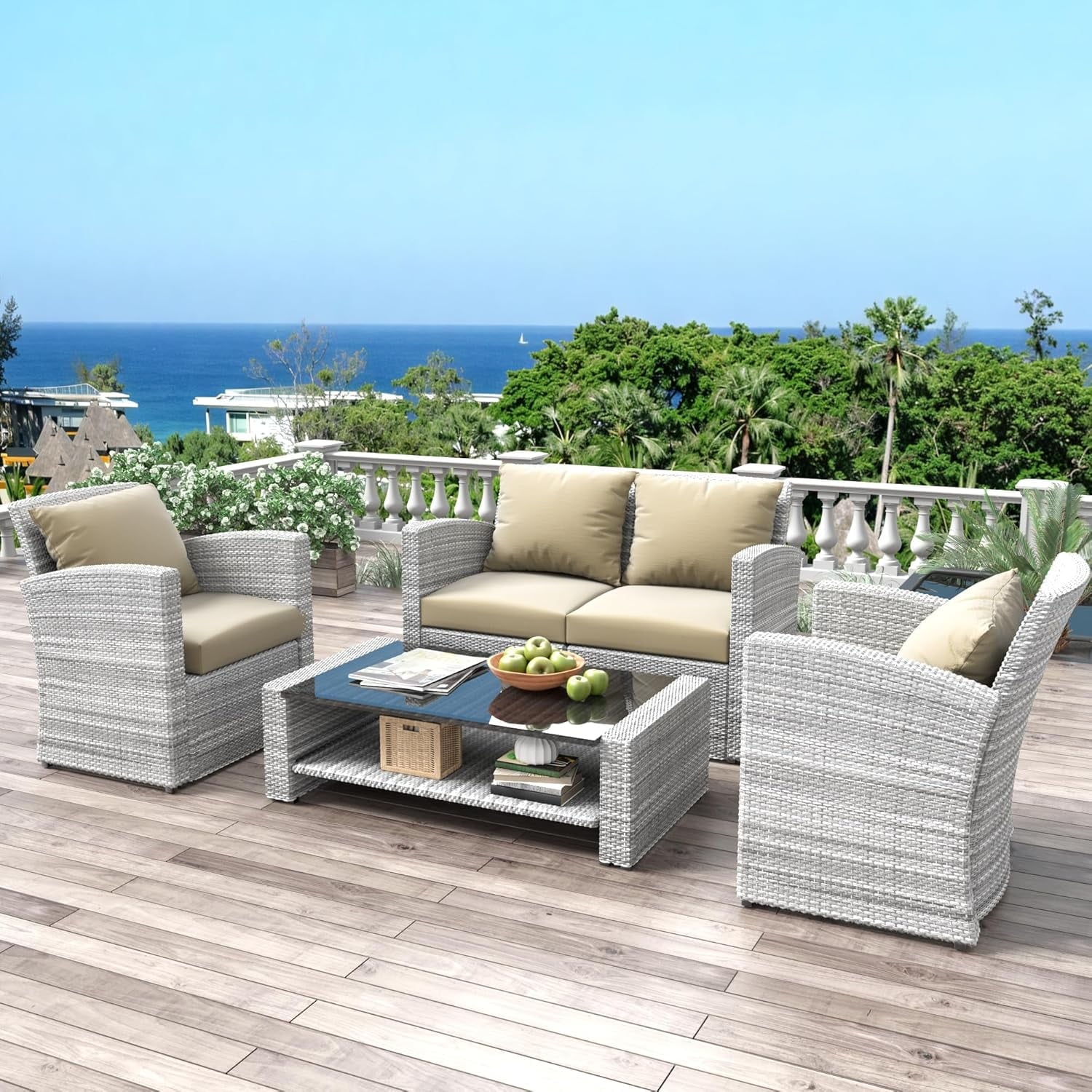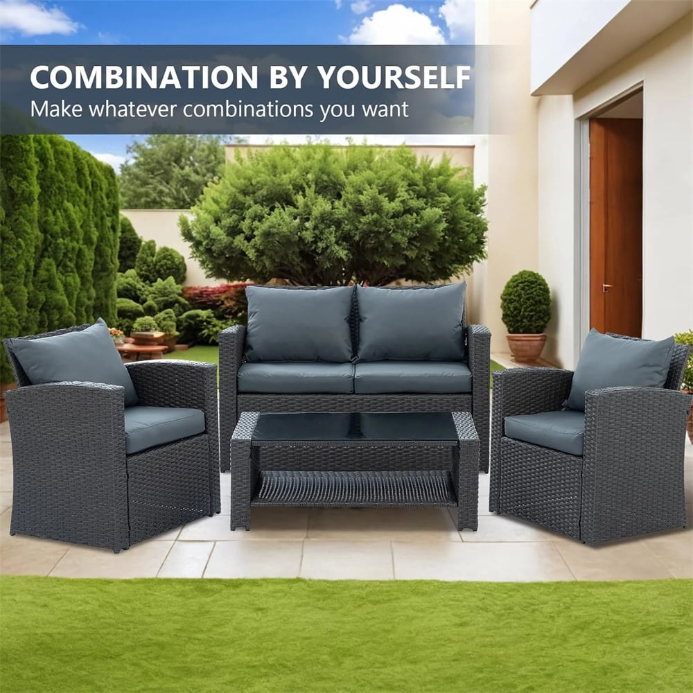 Our 4 piece wicker sofa set is modern, stylish and offers users versatility with a unique reconfigurable design. Brighten up your patio and make the outside of your home as welcoming as the inside with this 4-piece outdoor furniture set. Mix and match patio chairs to create the perfect seating arrangement for your outdoor space. This backyard furniture combines decoration, functionality, and durability to create a welcoming space that you and your family can enjoy year after year. buy it! We will lead you to experience unprecedented comfort and pleasure, and better enjoy your leisure time.