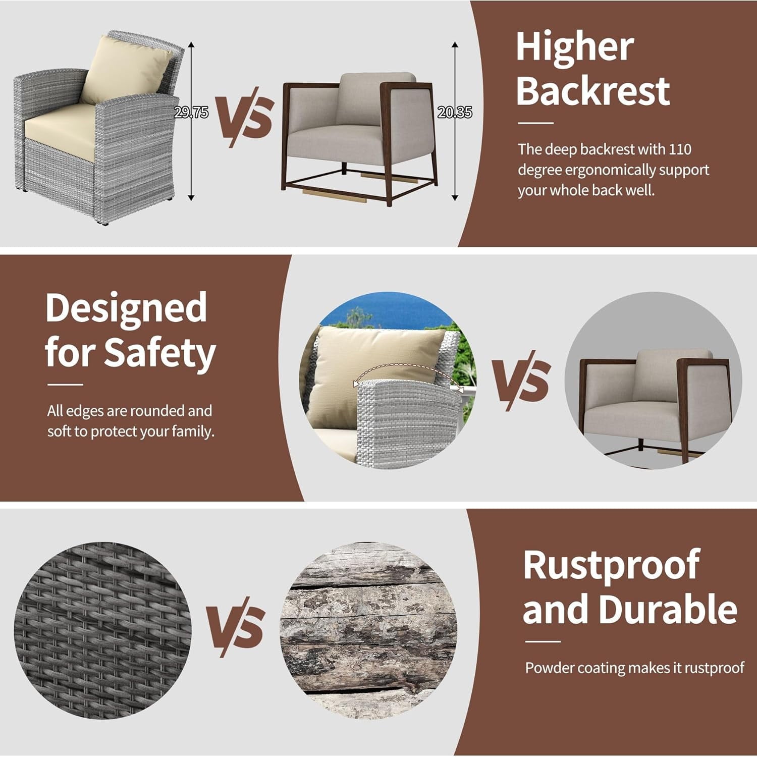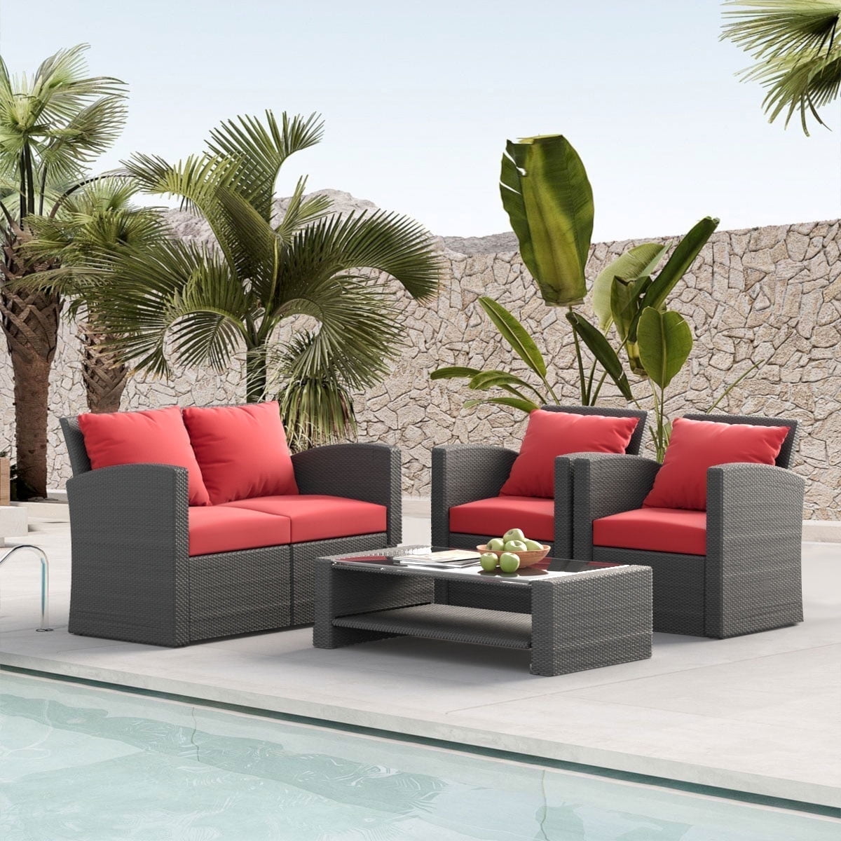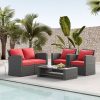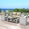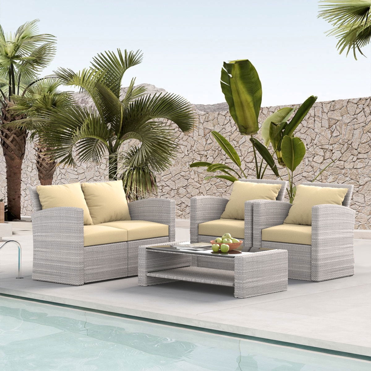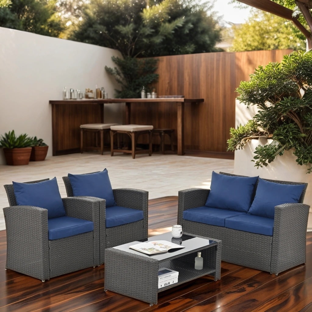 - Our 4-piece sofa set features a sturdy steel frame and finely hand-woven rattan, making it weatherproof and quick to clean and ready for use after a rainy day. Perfect for your living room, patio, or poolside.