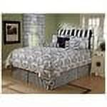 - Decorative pillows and bedskirt feature contrast stripe design in the same colors