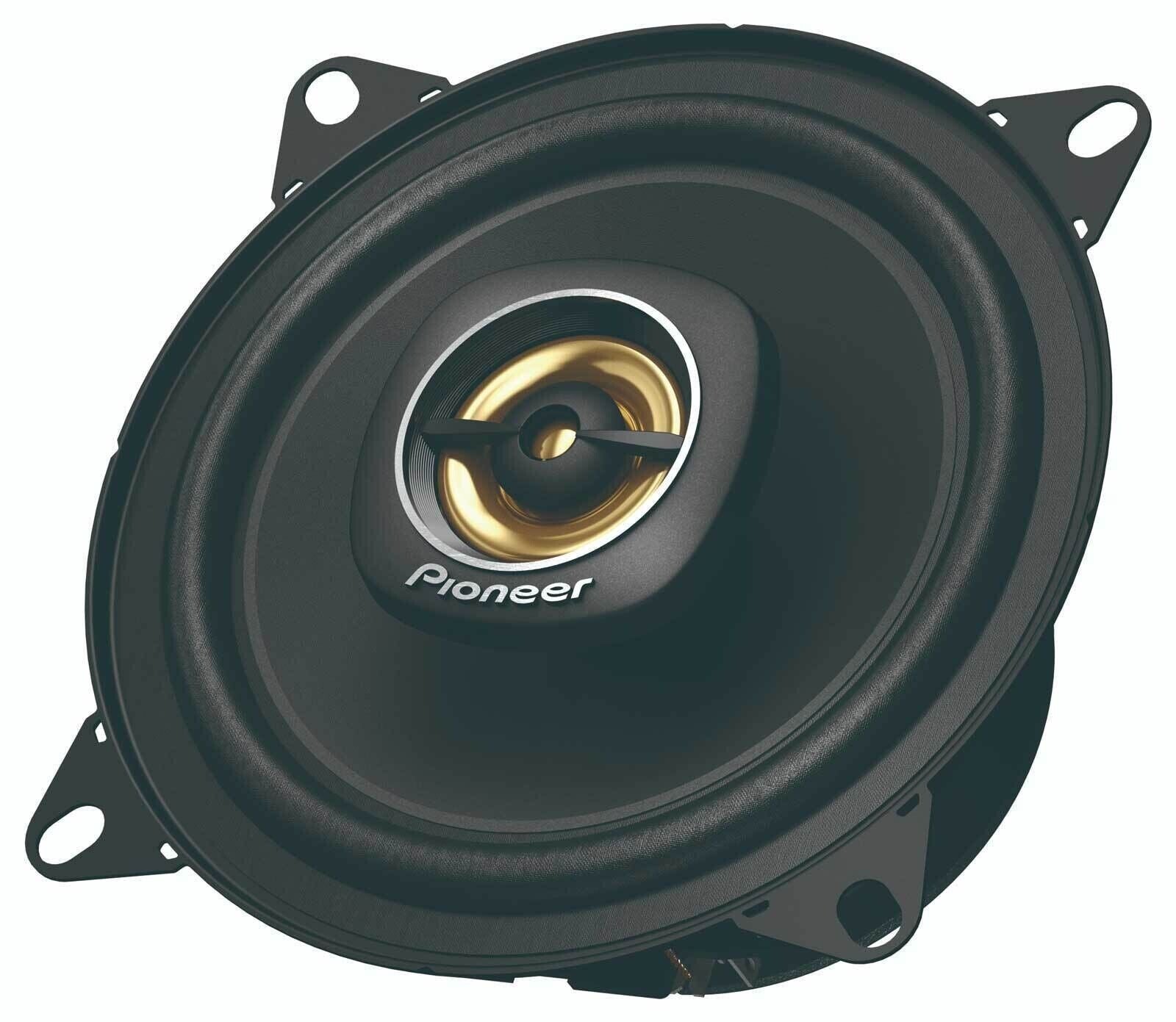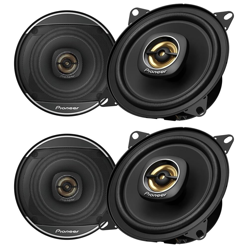 Upgrade your cars audio system with the Pioneer TS-A1081F 4” 2-Way Round Car Speakers. Sporting a sleek black color with gold accents, these speakers are designed to deliver enhanced sound quality and performance, allowing you to enjoy your favorite music like never before. With a maximum power handling of 230 watts and a continuous power handling of 50 watts, the TS-A1081F can handle higher power levels, allowing you to enjoy louder and more dynamic audio. The speakers are designed to deliver impressive volume levels without sacrificing clarity or causing distortion. Upgrade your cars audio system with the Pioneer TS-A1081F 2-Way Coaxial Car Speakers. Experience improved sound quality, enhanced bass, and clear vocals, bringing your music to life on the road. Enjoy the Pioneer quality and elevate your in-car audio experience. 2-Way Design – Enhance your car accessories with this 2-way design speaker, meaning separate drivers for reproducing different frequency ranges. Results in more accurate and balanced sound reproduction. Power Handling – Maximum power handling of 230 watts and a continuous power handling of 50 watts, these speakers deliver dynamic sound. Crisp highs and deep lows ensure that you can experience a wide range of frequencies with clarity and accuracy. Frequency Response – Receive a rich and immersive sound reproduction across different music genres. This car audio speaker contains a broad range of audio frequencies with a response range of 82 Hz to 40 kHz. Sensitivity – The sensitivity rating of 90 dB ensures that the speakers can produce clear and loud sound even with lower power inputs. This means you can enjoy your music without distortion, even at higher volume levels. Instruction And Operation – Please see the Owner’s Manual for full detail and operation found near the bottom of this page (Technical Specifications).(Pack of 4) PIONEER TS-A1081F, 2-Way Coaxial Car Audio Speakers, Full Range, Clear Sound Quality, Easy Installation and Enhanced Bass Response, Black and Gold Colored 4 Round Speakers