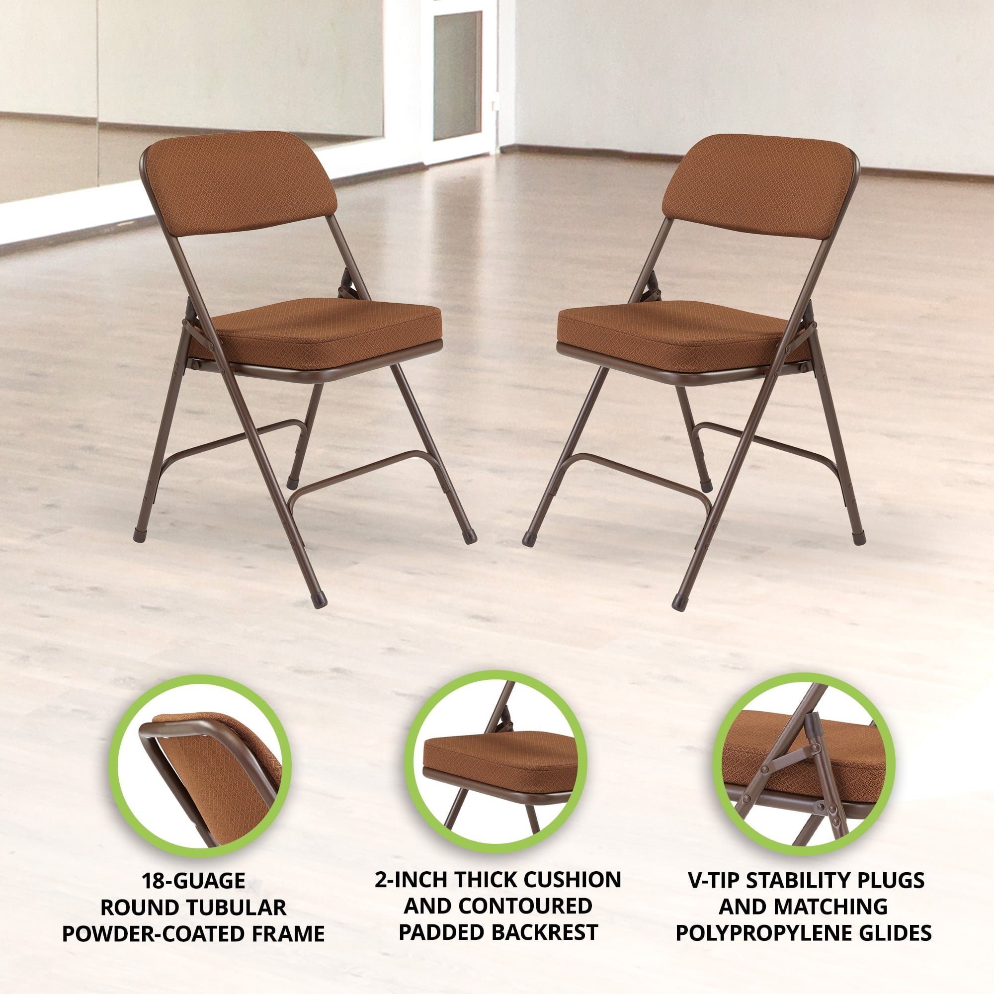 (Pack of 2) NPS 3200 Series Premium 2" Fabric Upholstered Double Hinge Folding Chair, Antique Gold