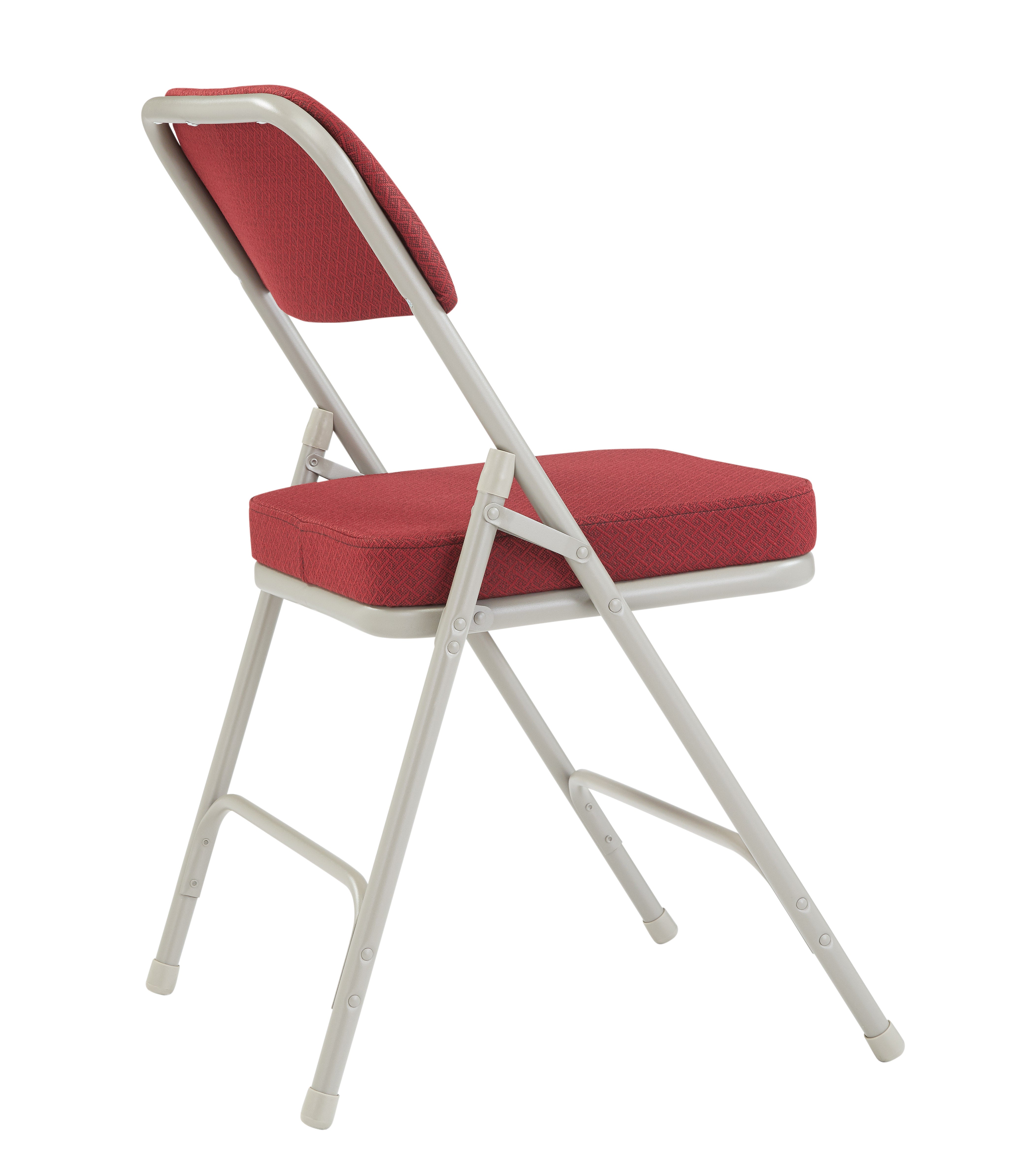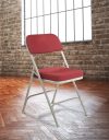 NPS 3200 Series has brought the potential comfort of folding chair to a whole new level with a super-soft 2″ thick cushion. Features include an institutional-grade fabric upholstered box seat on a Masonite board. The large contoured padded backrests are fully covered in matching Scotchguarded fabric on both sides. The institutional-grade frame is made from heavy-duty powder-coated 18-gauge round tubing with two U-shaped double-riveted cross-braces to securely support the double-hinged legs. Color-coordinated V-tip stability plugs provide added reinforcement and matching replaceable glides prevent floor damage.