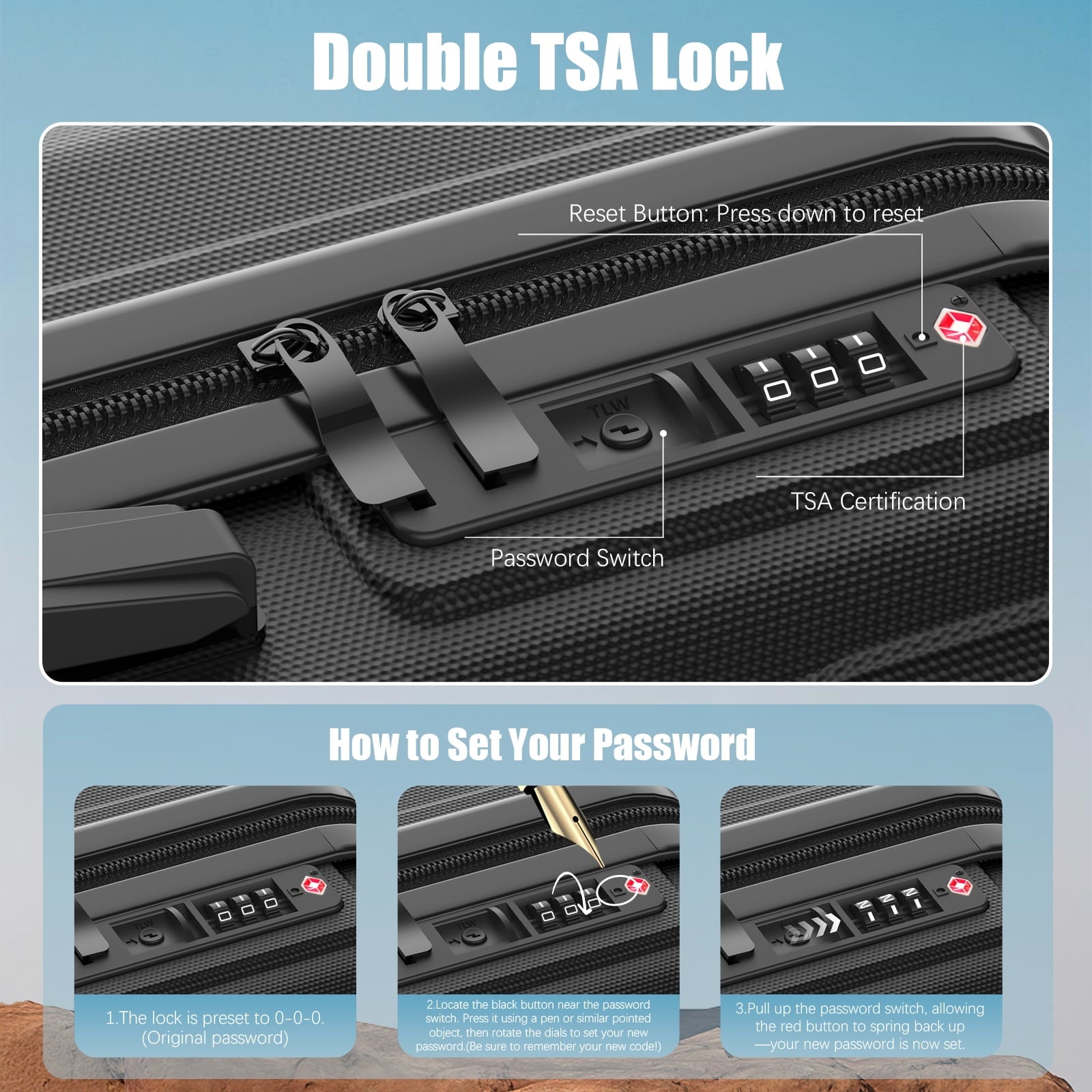 • Combination Lock & TSA Customs Lock, Double Protection of Luggage Security.