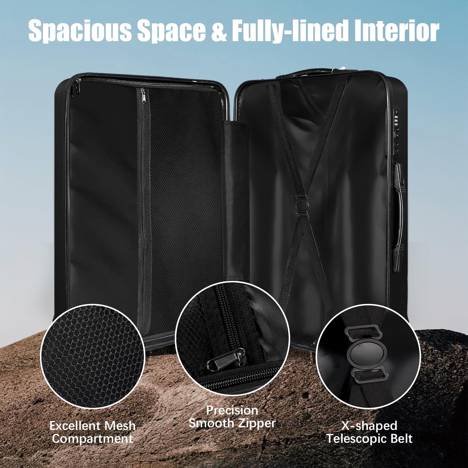 Crafted from lightweight yet durable ABS+PC material, 4 piece suitcase sets features
