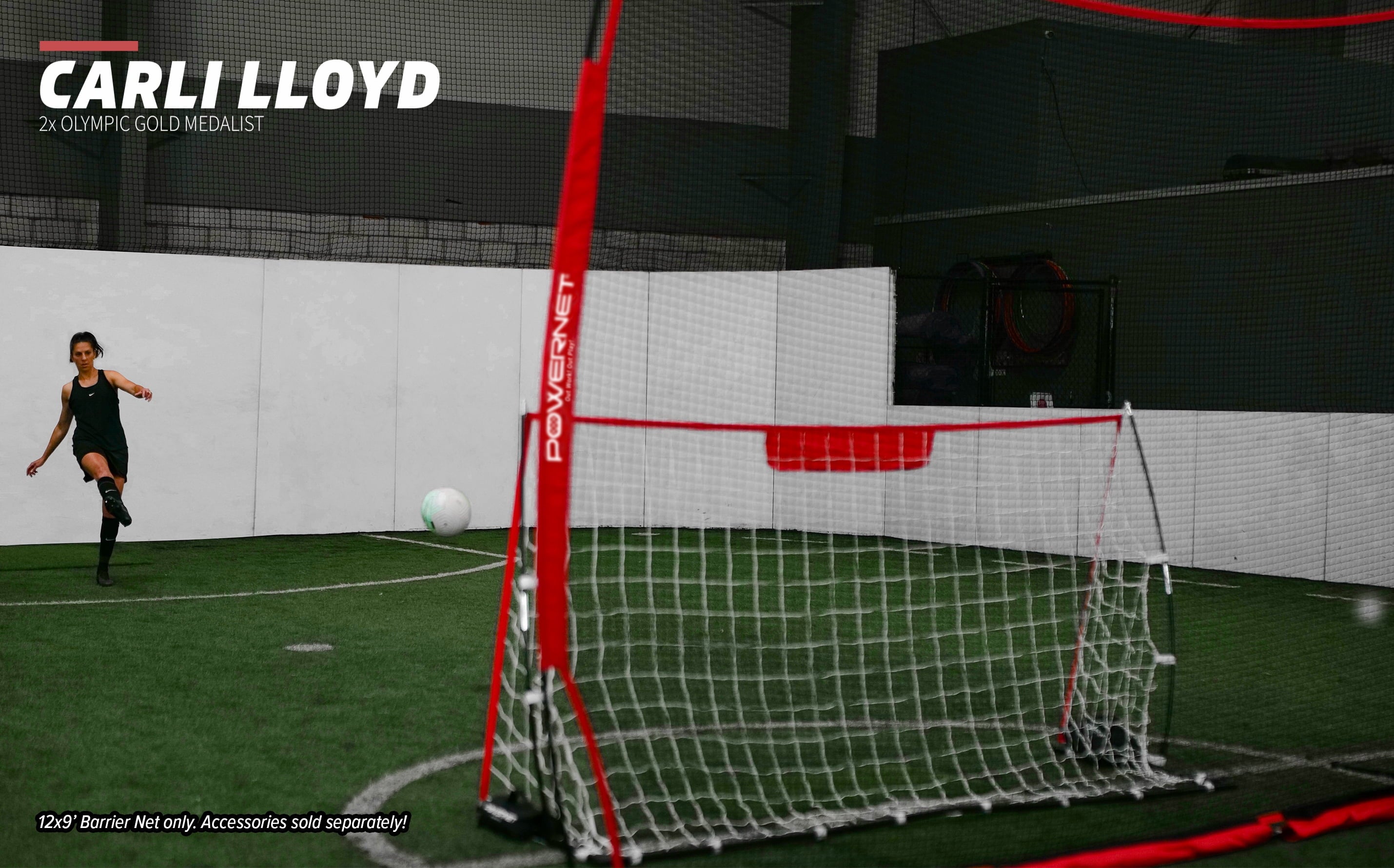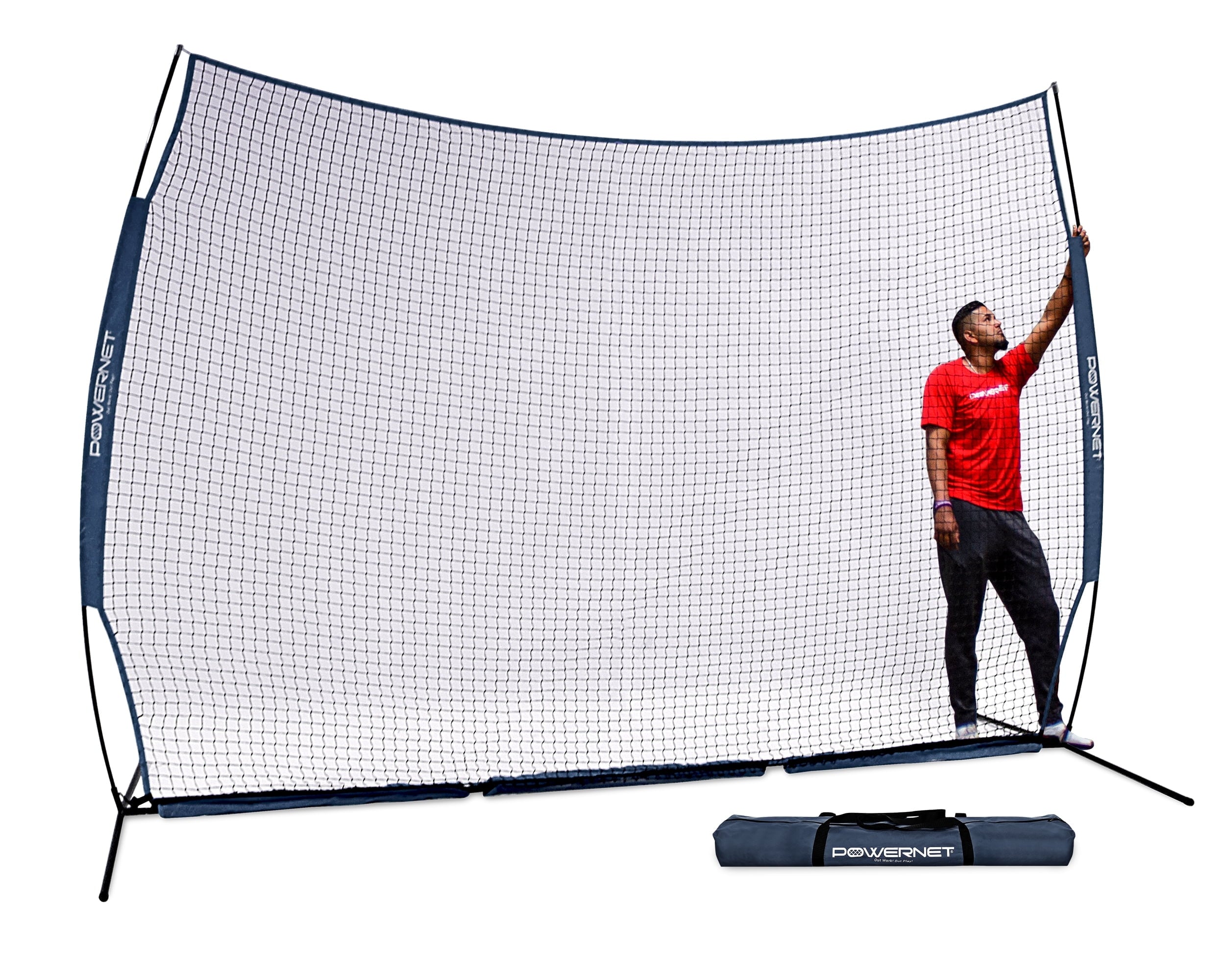 - 12′ x 9′ BLACK BARRIER NET: The Powernet Portable Backstop Net is a versatile sports netting system that also functions as a reliable driveway barricade, a safety net, and a garage net screen to protect your surroundings during sports and practice sessions