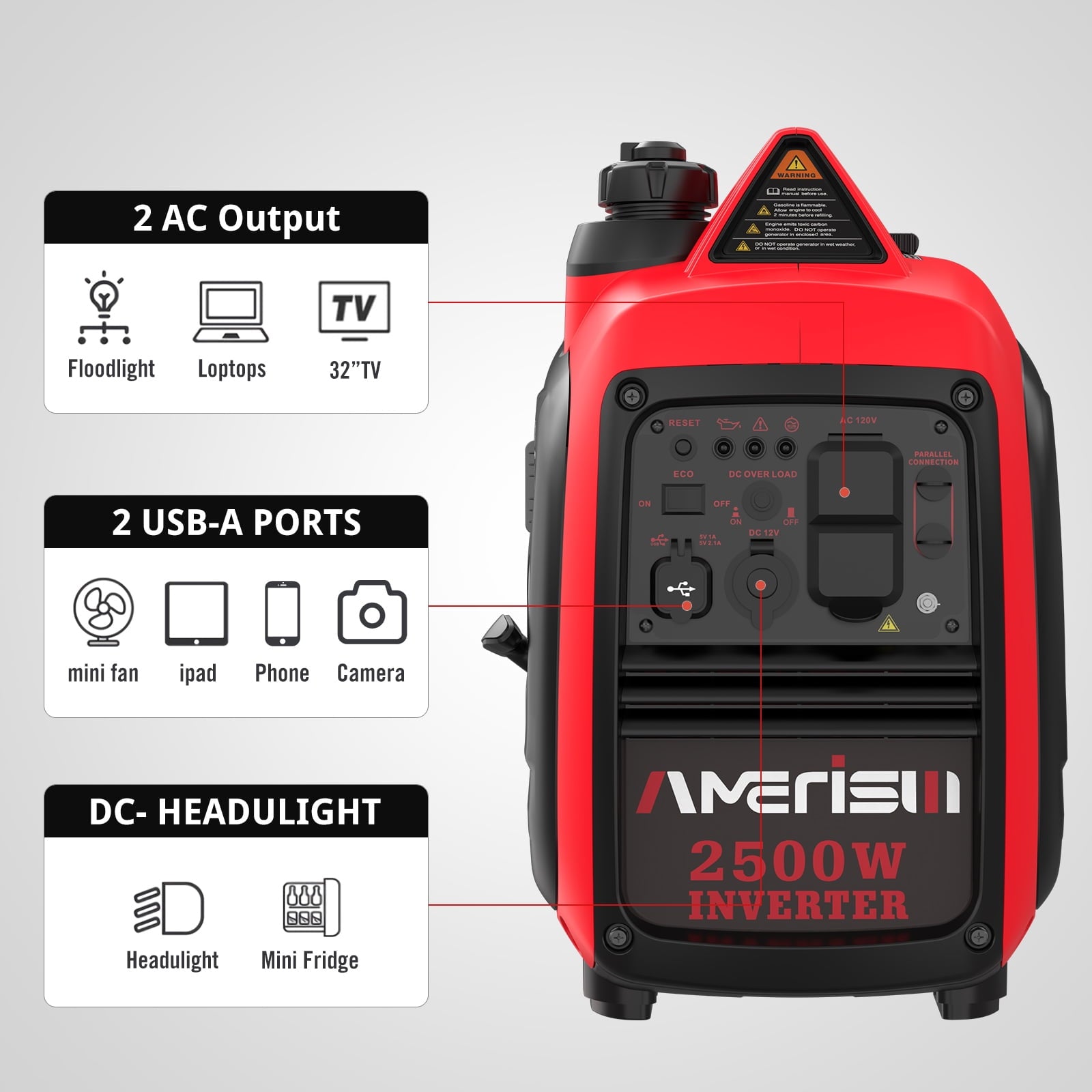- ENHANCED POWER CAPACITY: Connect this inverter with another Amerisun 2500-watt inverter to double your output power, providing ample wattage and amperage for larger energy demands.