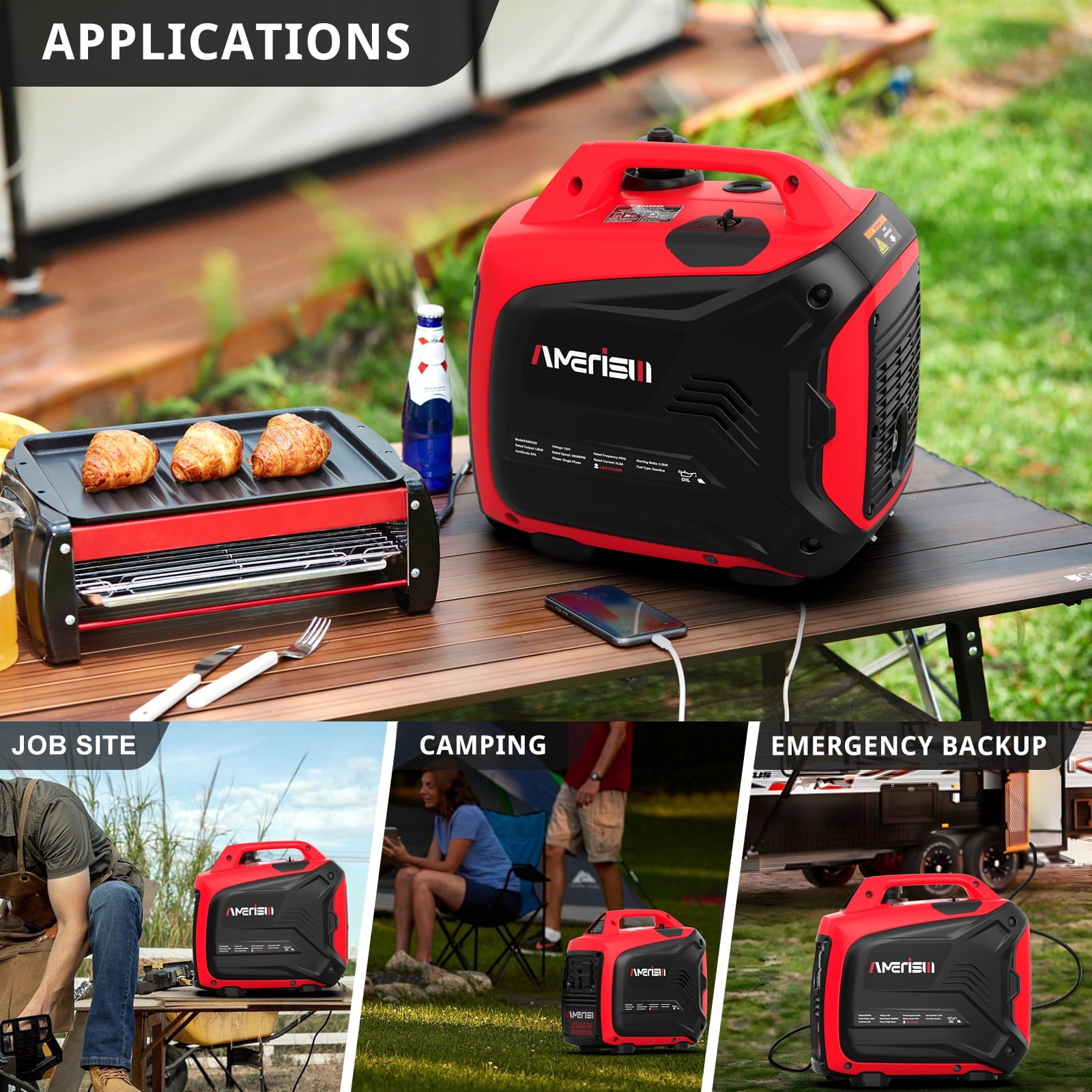 - QUIET OPERATION: Operating at a mere from 23 feet, it’s as quiet as a dishwasher, ensuring a peaceful environment whether you’re camping or hosting an outdoor event.