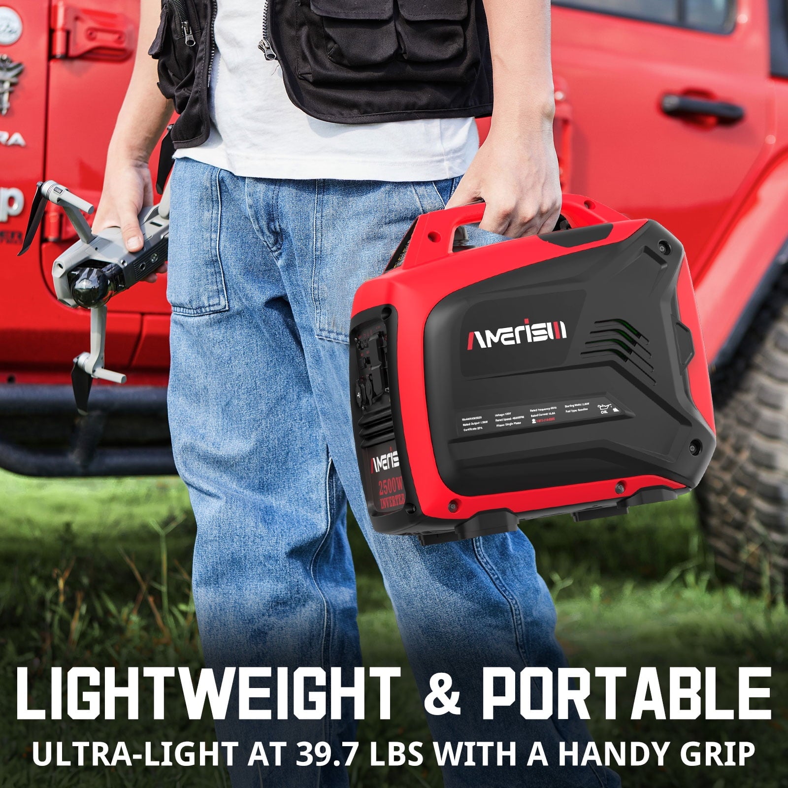 The Amerisun Brand New 2500-Watt Gasoline Portable Inverter Generator is the ultimate power solution for camping, tailgating, and other outdoor adventures. Weighing just 40.3 pounds, this lightweight and compact generator is designed for maximum portability and ease of use, making it the perfect companion for all your on-the-go power needs, ensuring you stay powered up wherever your adventures take you.