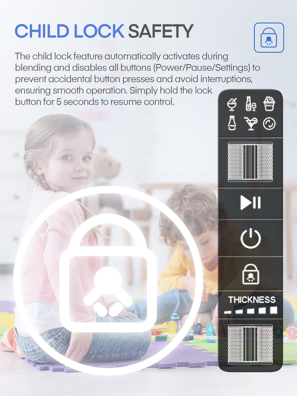 𝑶𝑵𝑬-𝑻𝑶𝑼𝑪𝑯 𝑭𝑹𝑶𝒁𝑬𝑵 𝑫𝑹𝑰𝑵𝑲𝑺 – Thickness controls deliver consistently smooth results in up to 60 minutes at max capacity. *Creating drinks can take 15-60 min depending on ingredients, volume, and starting temperature. (Please note: for the best slushie results, we recommend setting the thickness to a maximum level of 5 until all the slush has been distributed. If the thickness of the slush is not satisfactory, you can try other preset modes, this will help you achieve and maintain the most ideal slushie consistency.)