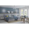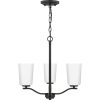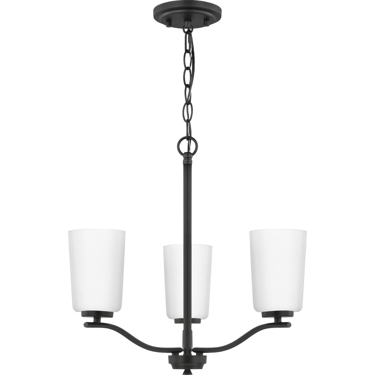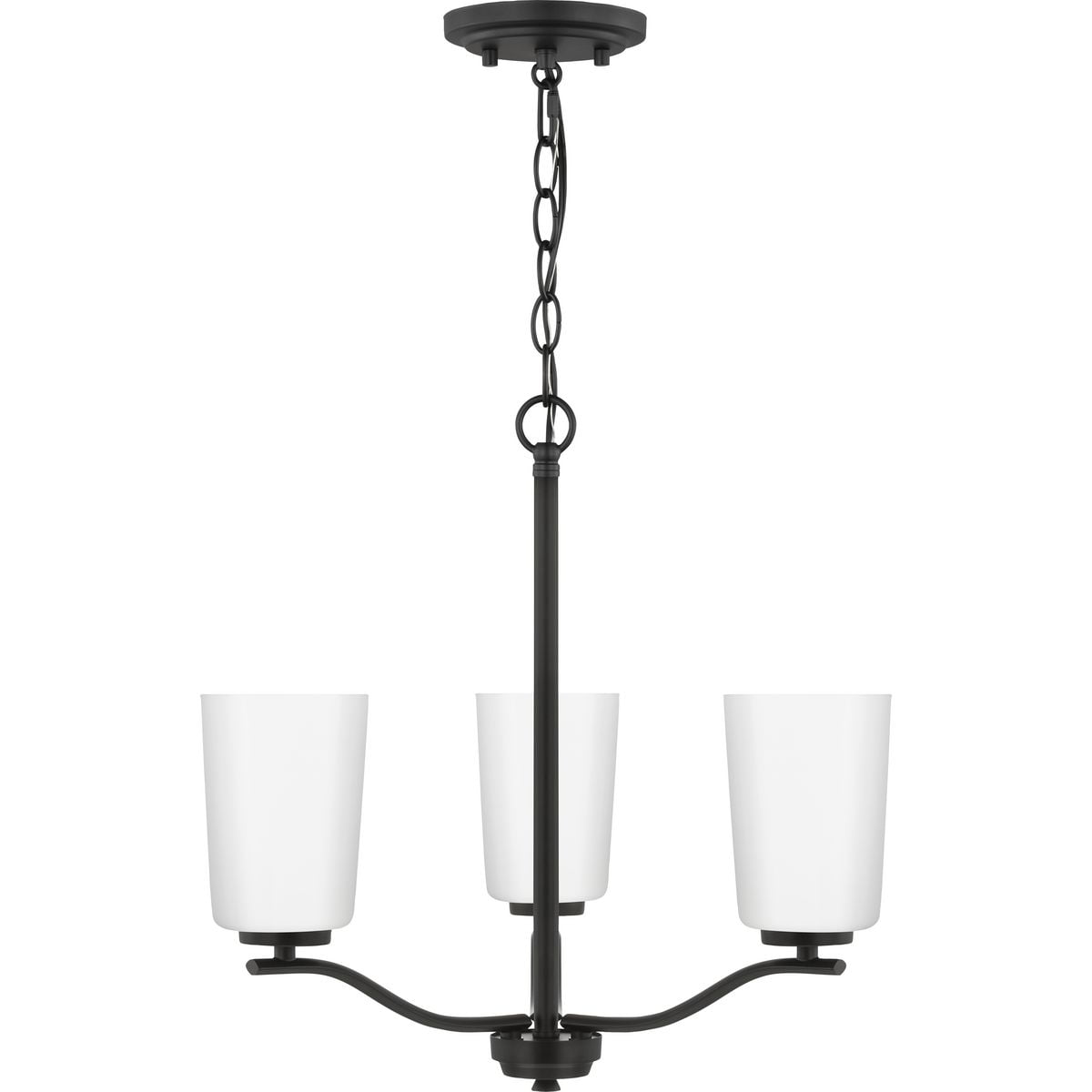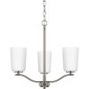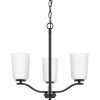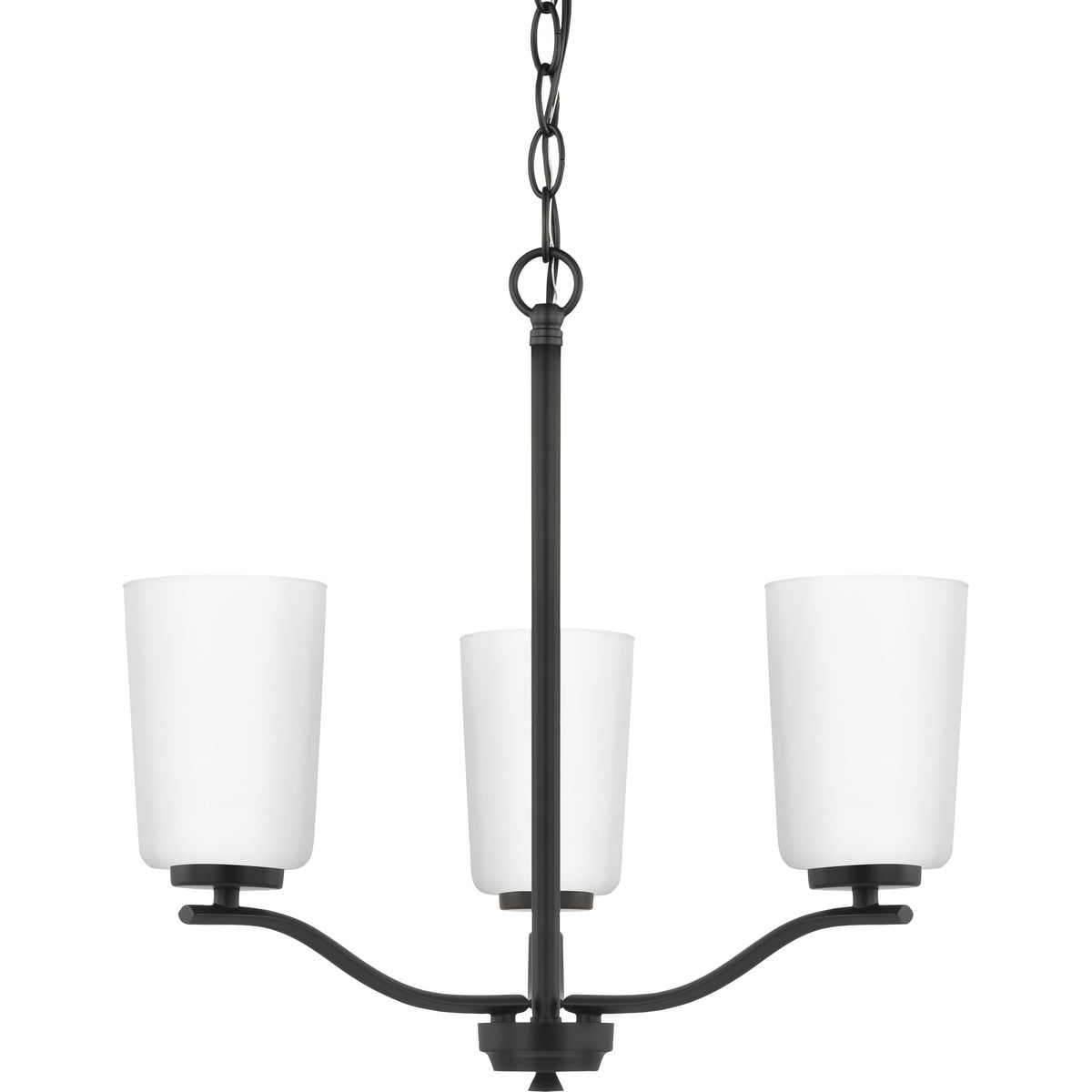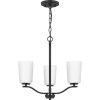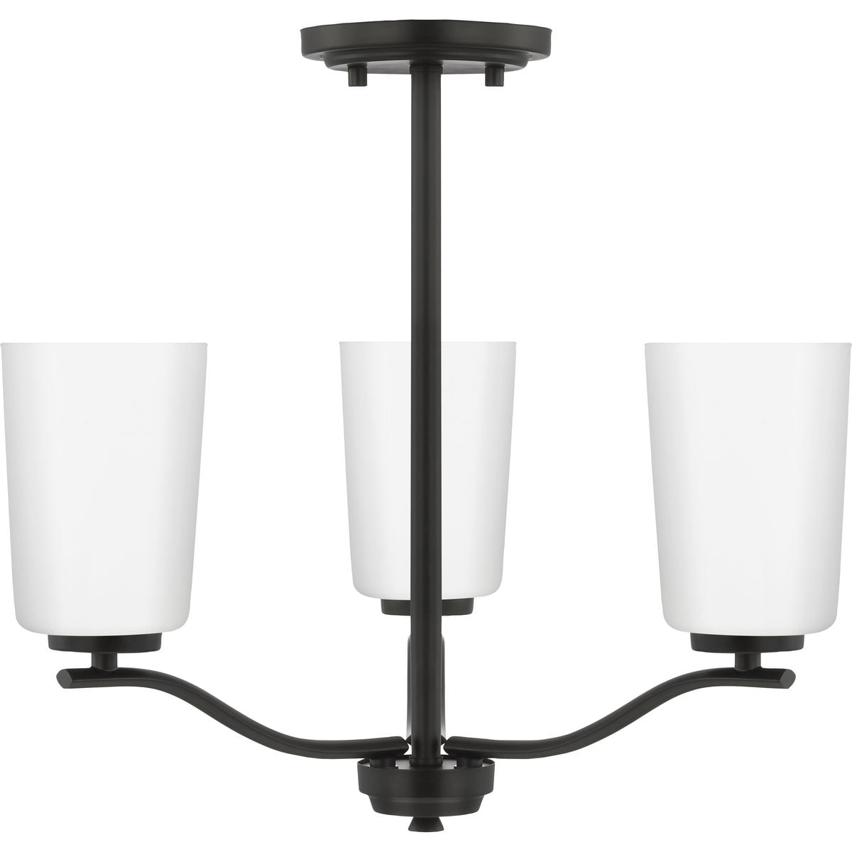 Fundamentally modern but with a traditional twist, the Adley semi-flush convertible chandelier combines etched white glass shades with a curved arms and simple, straight bars finished in satin brass. This light is an elegant choice for illuminating kitchens and breakfast nooks in transitional settings and contemporary settings. The fixture has 48 in. of chain to customize it for a variety of ceiling heights and can be used on a sloped ceiling.