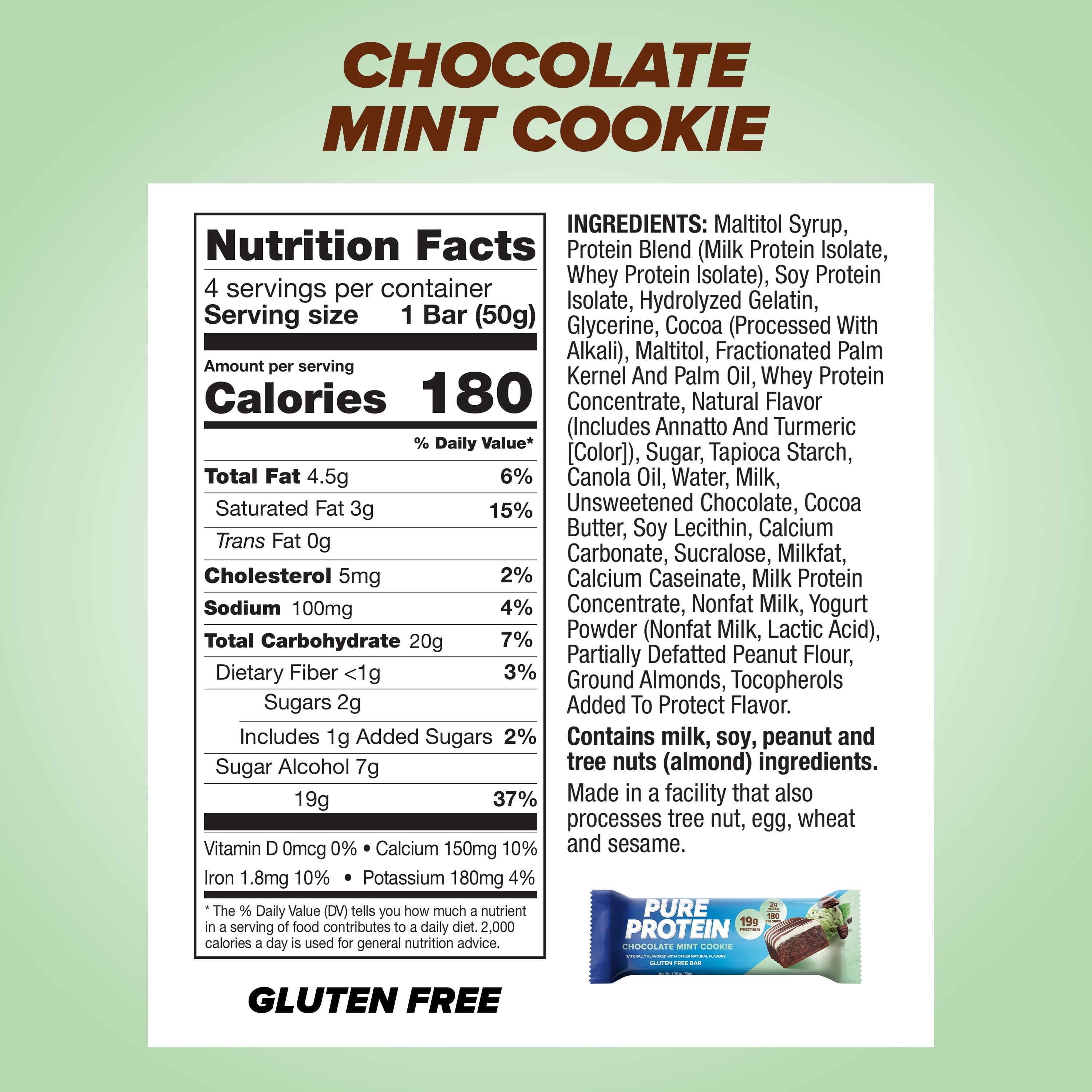 - One 4 count box of Pure Protein Chocolate Mint Cookie Protein Bars