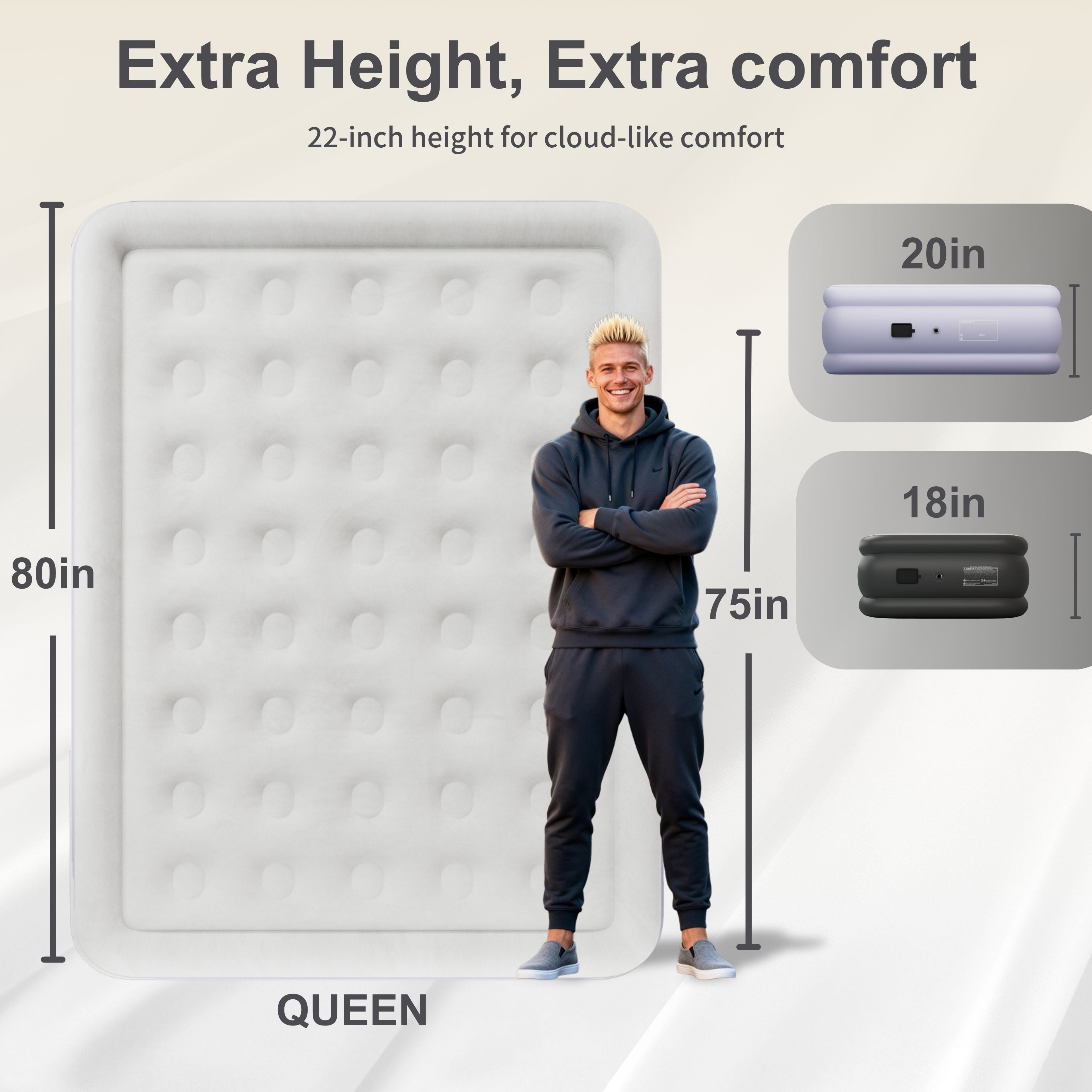 - 【Upgraded Air Retention Technology】High-quality reinforced seam stitching and thicker multi-layer puncture-resistant eco-friendly PVC material prevent the full inflatable bed from air leaking. It’s +30% thicker than the average brand’s product, enhancing its durability and waterproof properties, ensuring you won’t wake up on a deflated bed
