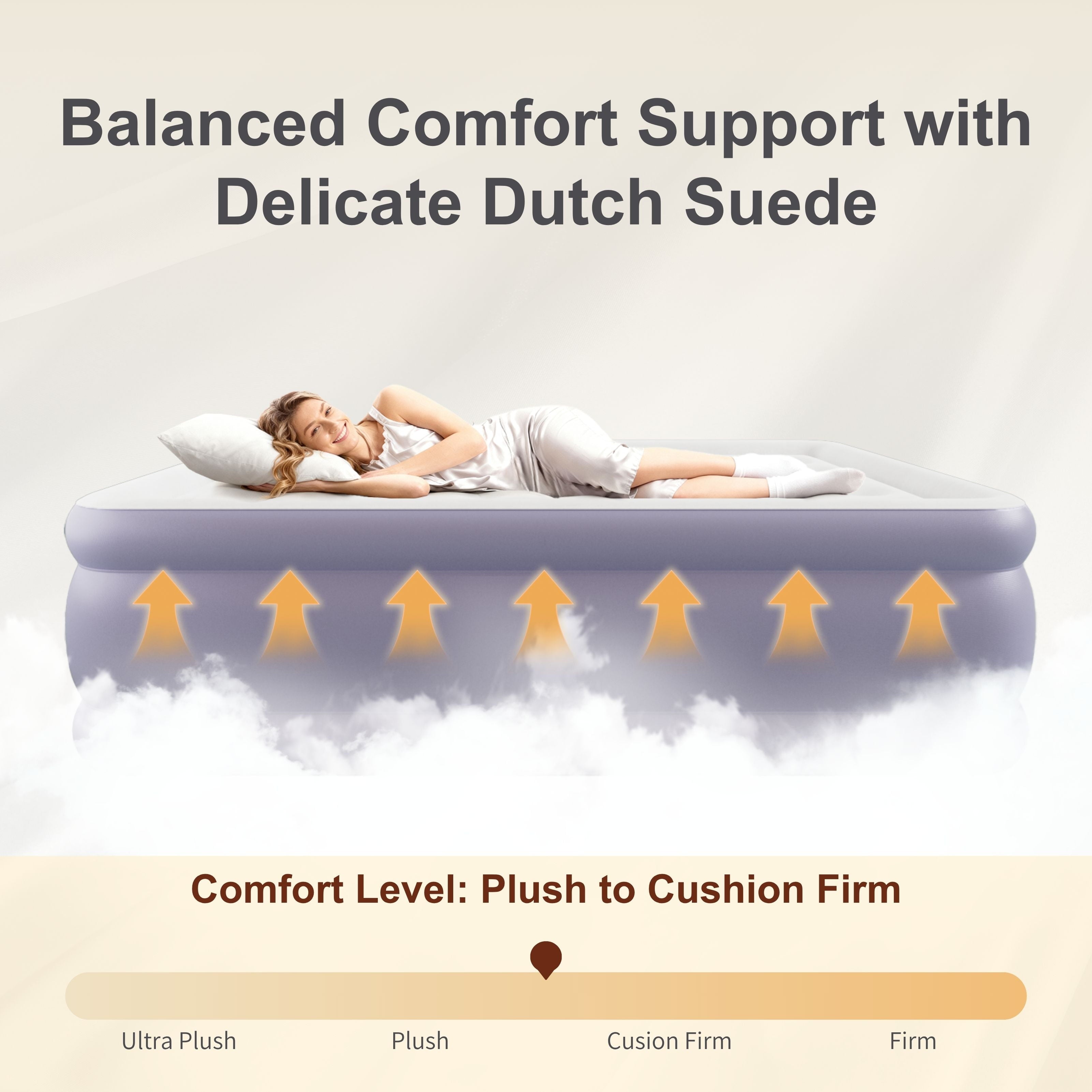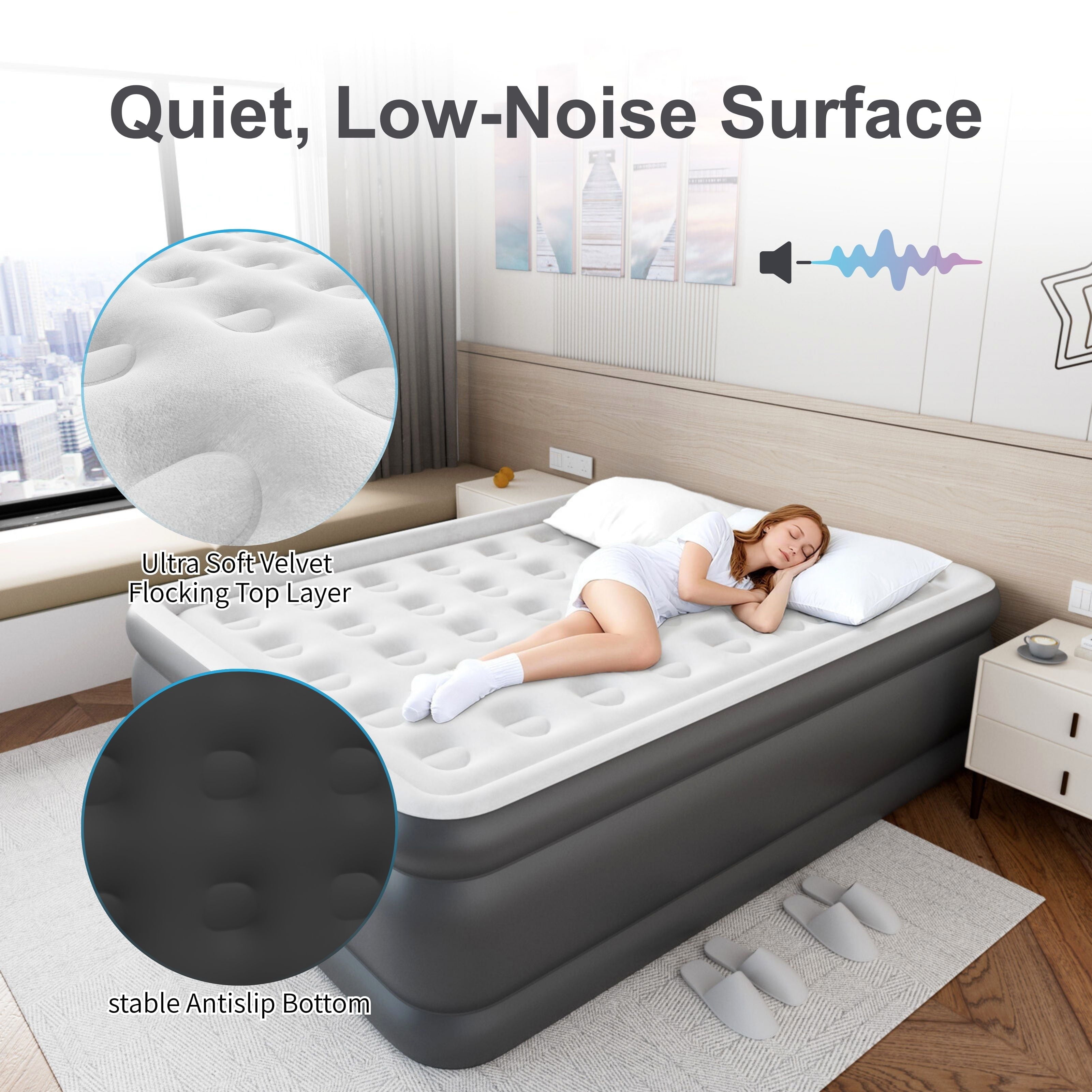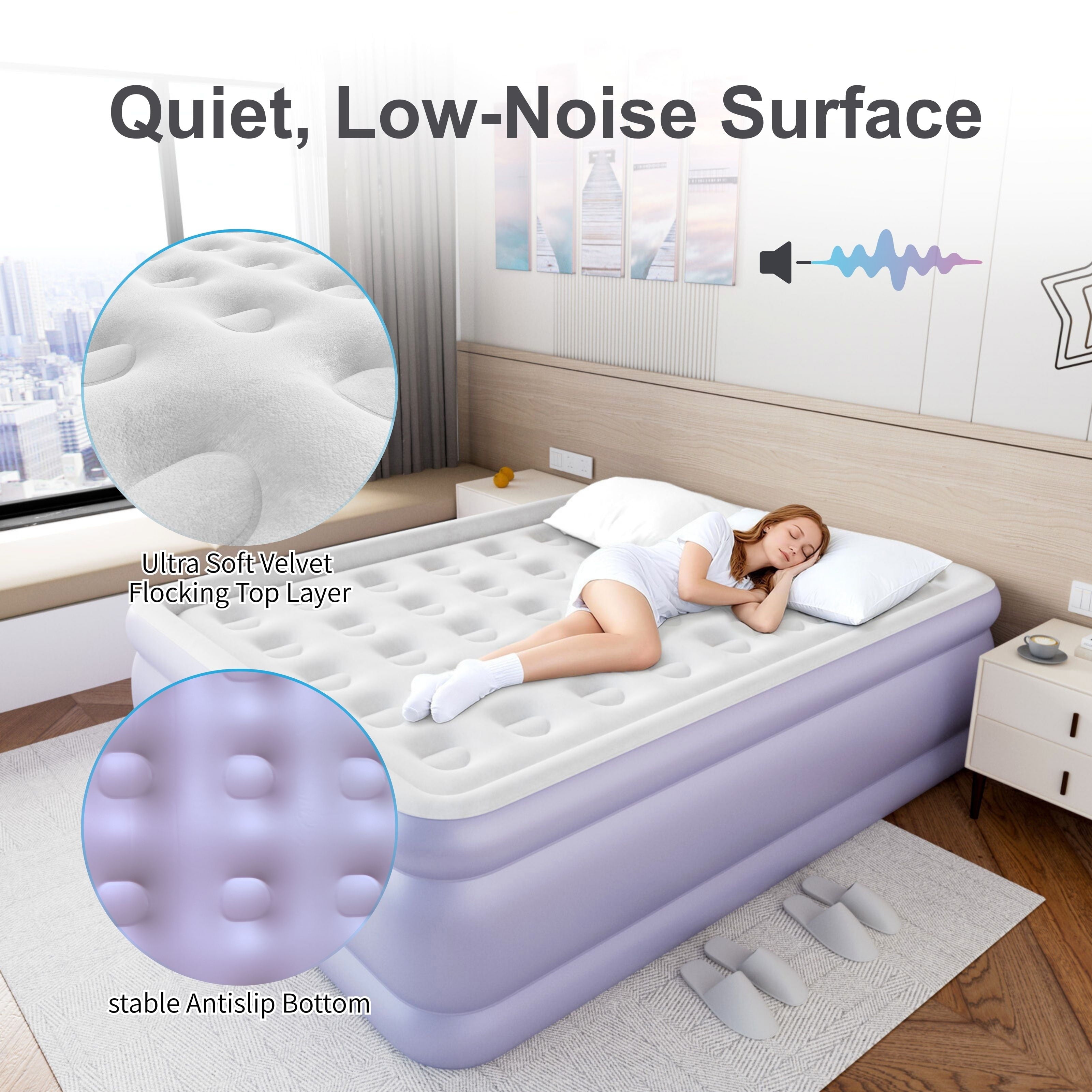 - 【Luxury Dutch Velvet】: The HikerSKY Queen air mattress is a fusion of fabric and PVC material. The Dutch velvet texture makes you feel like you’re lying in the clouds, with a skin friendly, breathable, and waterproof plush surface. It not only has a soft touch, but is also easy to clean, providing our customers with the ultimate comfortable sleeping experience.