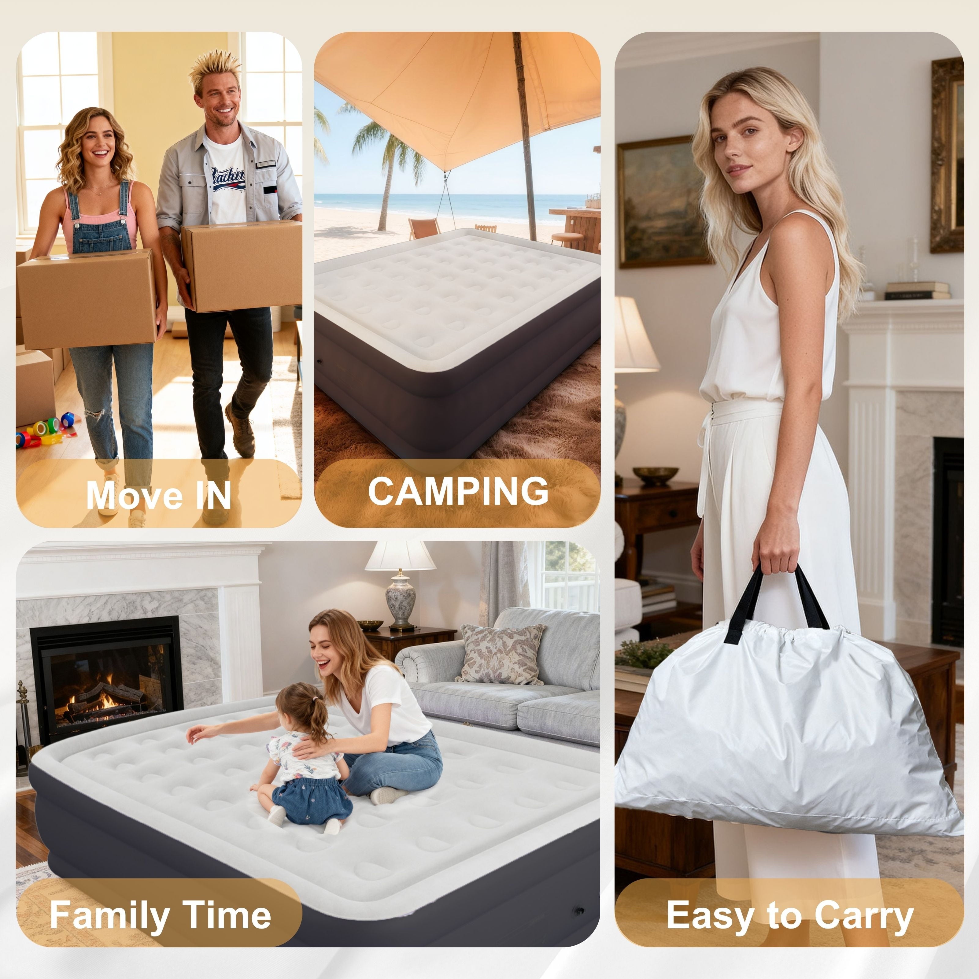 Engineered with coil-beam structural technology, it mimics mattress-level spinal support and stably holds 650lbs – perfect for couples or family cuddles. Compact to a travel bag size, it’s your ultimate solution for camping adventures, surprise guests, or creating a cozy reading nook.