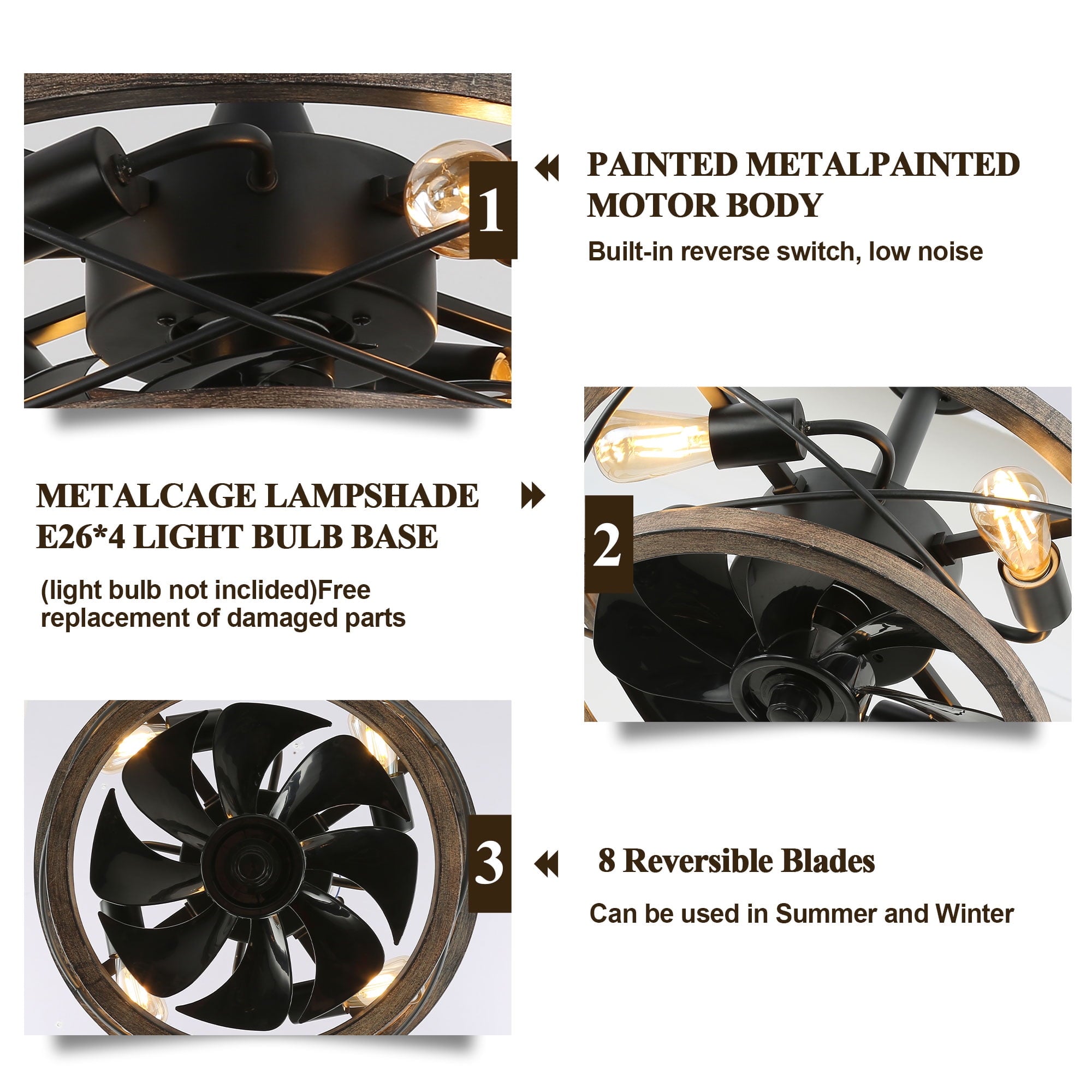 - Reversible Blades: The blades can be reversed to cool your summer and warm your winner.