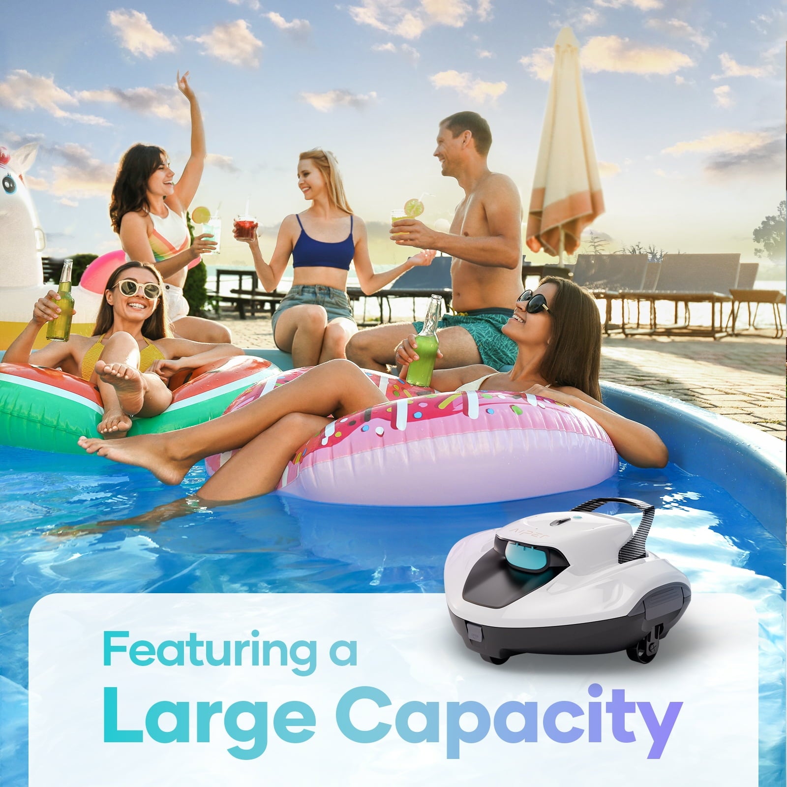 Goodbye, pool boy! Cleaning your pool has never been simpler. The 2025 newly upgraded Aiper Scuba 800W Robotic Automatic Pool Cleaner is the perfect solution for your flat-floored above ground pools up to 860sq.ft, 30ft in length. Completely cordless, this hassle-free automatic robotic pool cleaner features a drive motor and a pump motor, with a 90-minute battery life, and the robotic pool vacuum is lightweight and is activated with just one click. Once the battery of the automatic robotic pool cleaner is low, it will automatically stop near your pool’s wall for easy retrieval with the included retrieval hook.