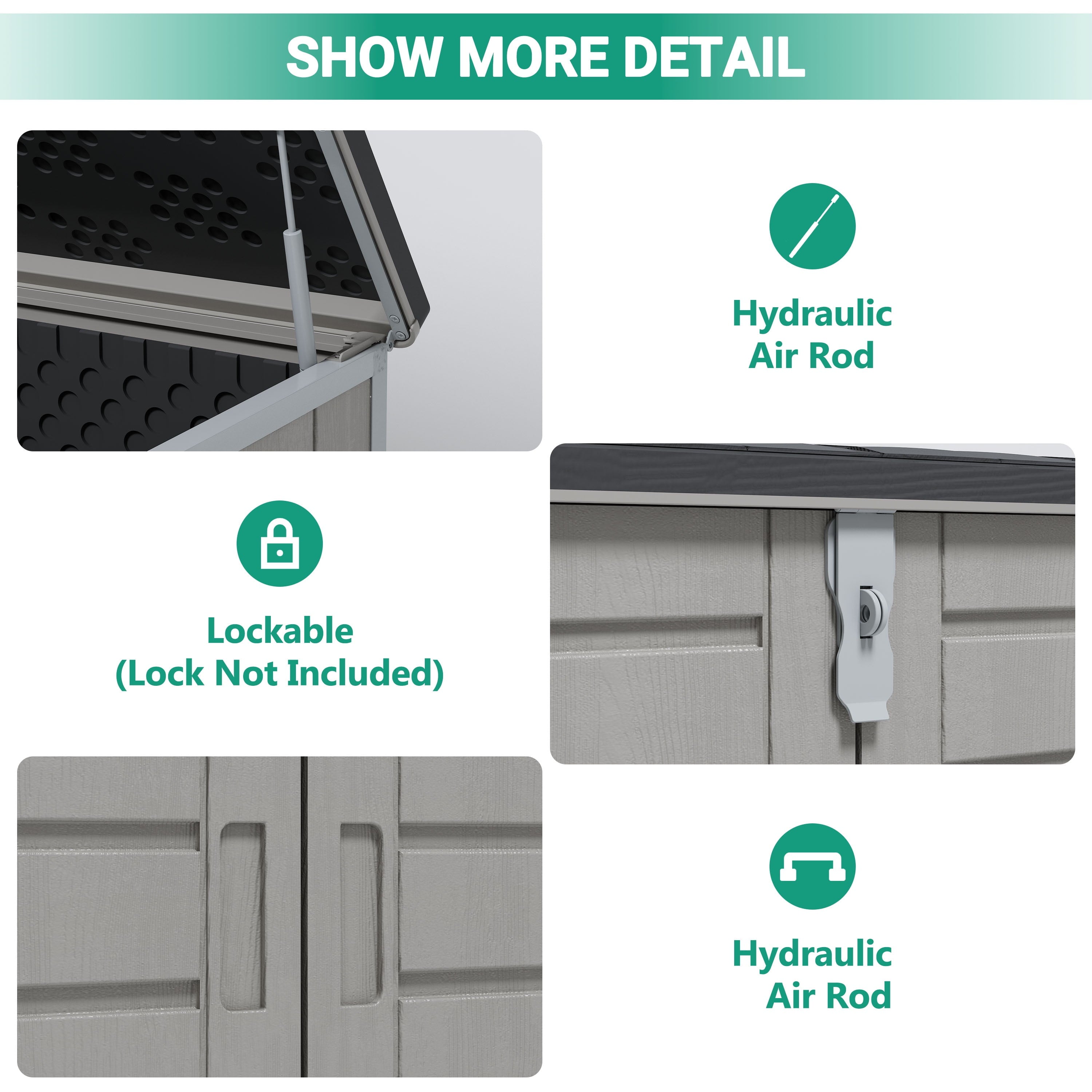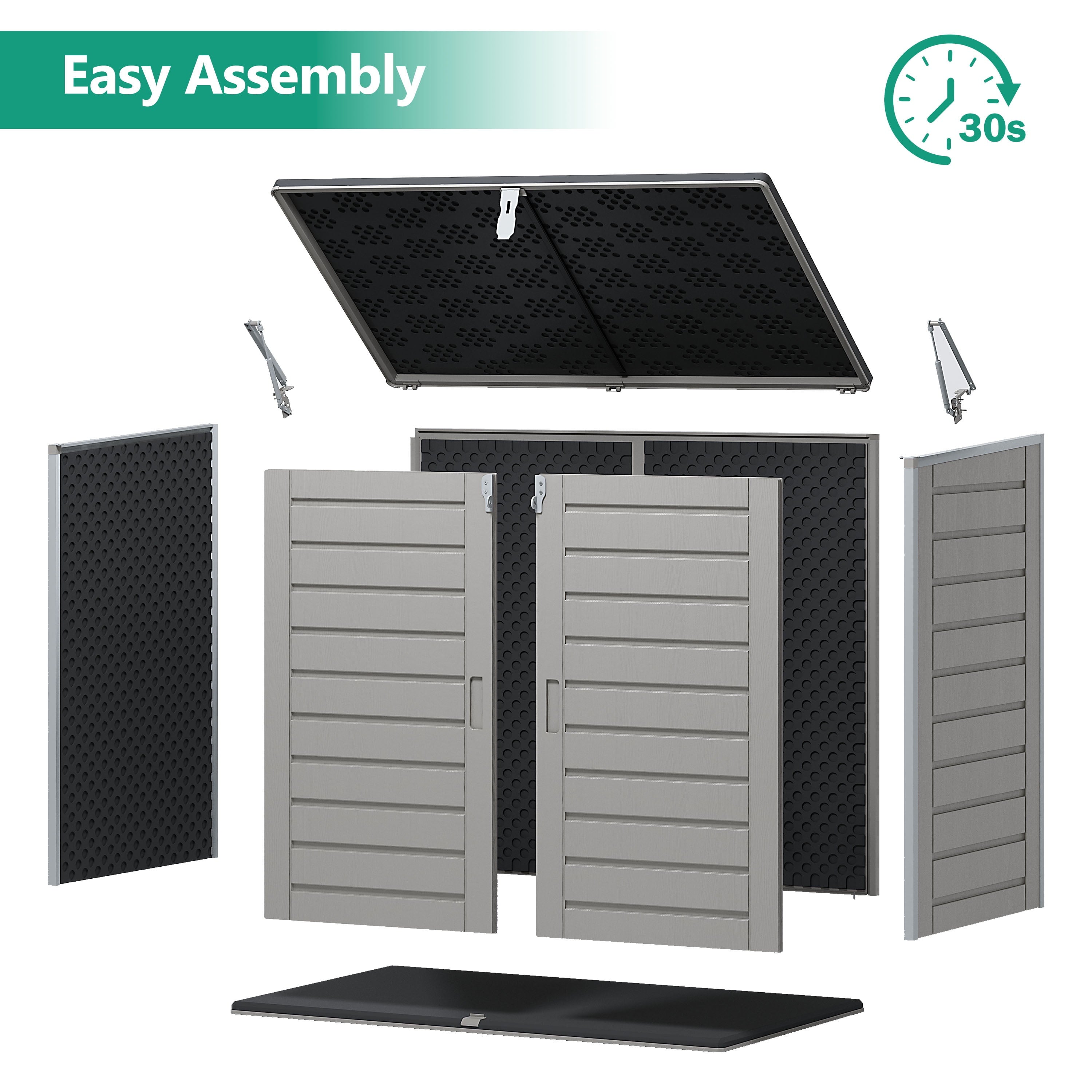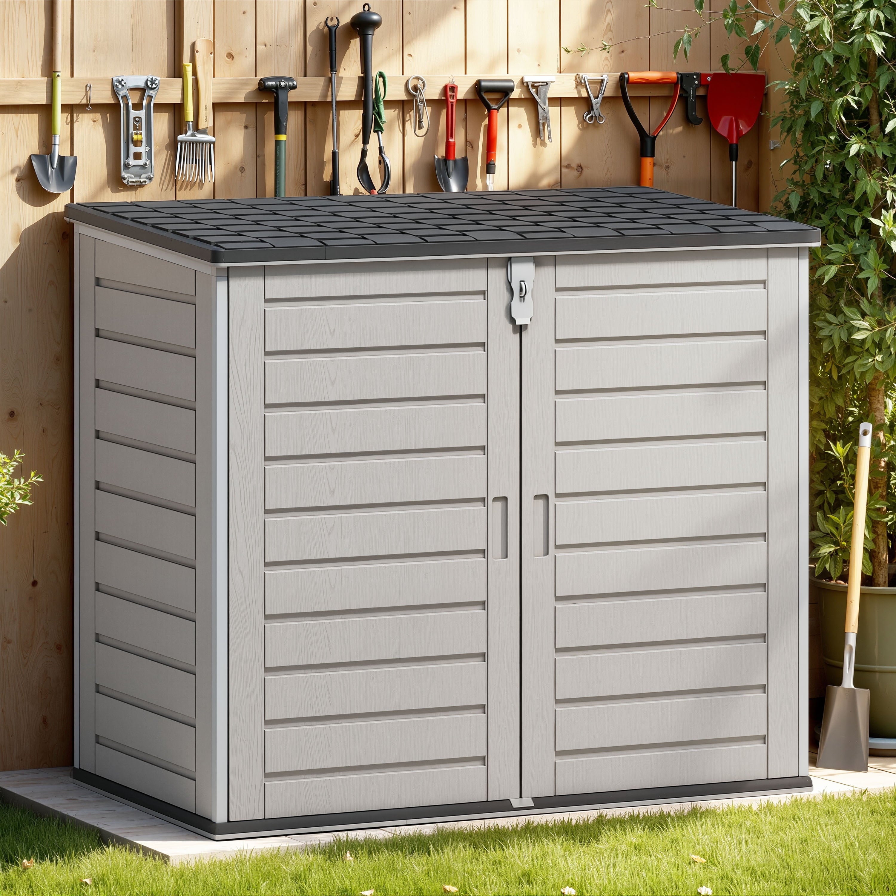 — Larger capacity of 51 Cu Ft, that’s perfect for storing garden tools, BBQ grills, firewood, bikes and trash cans, patio & pool accessories and more.
