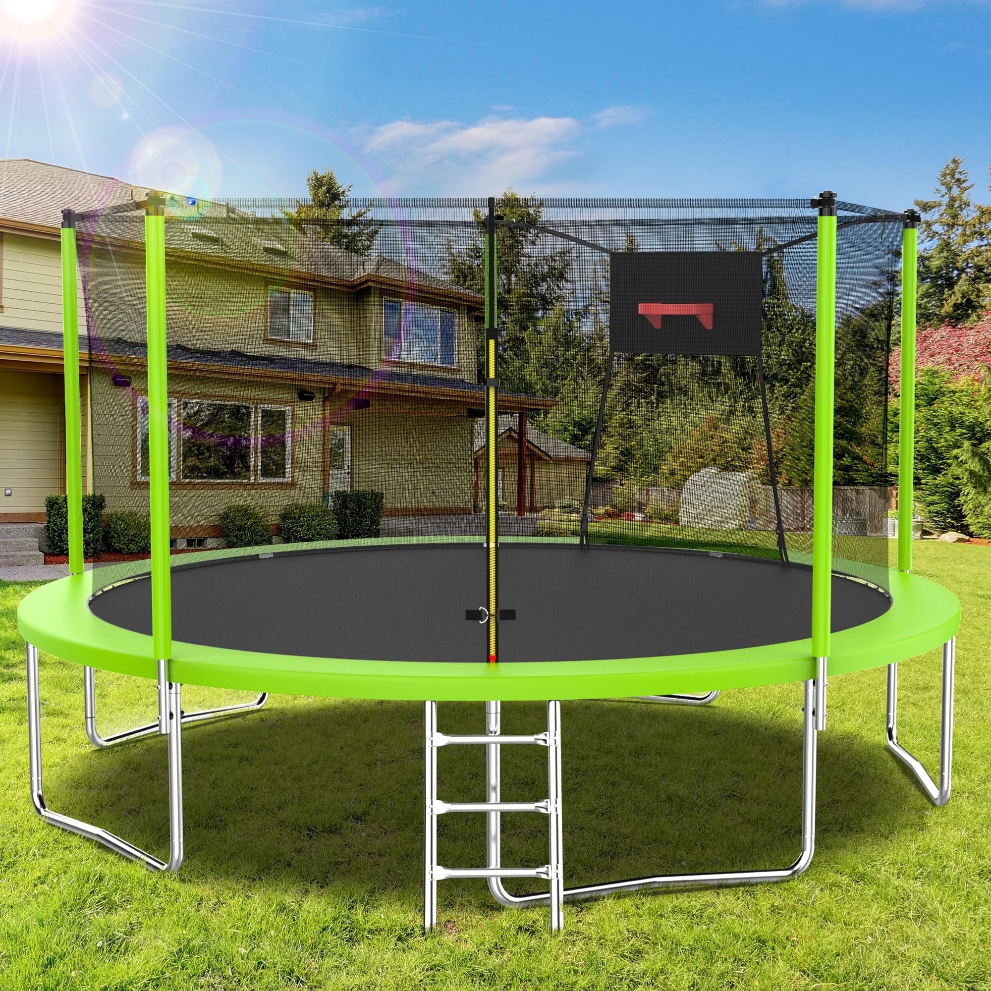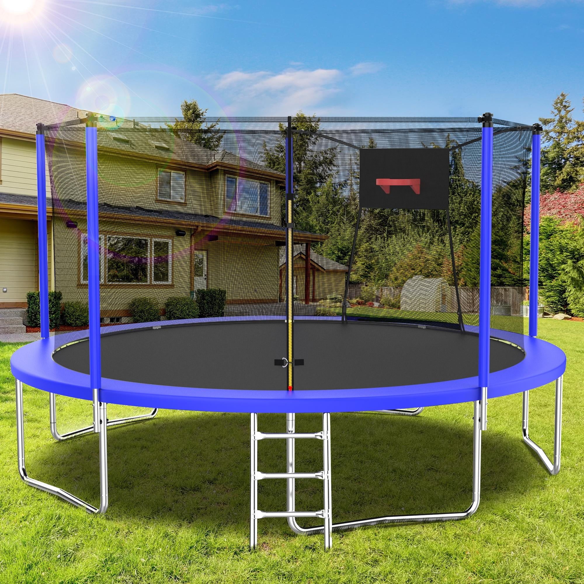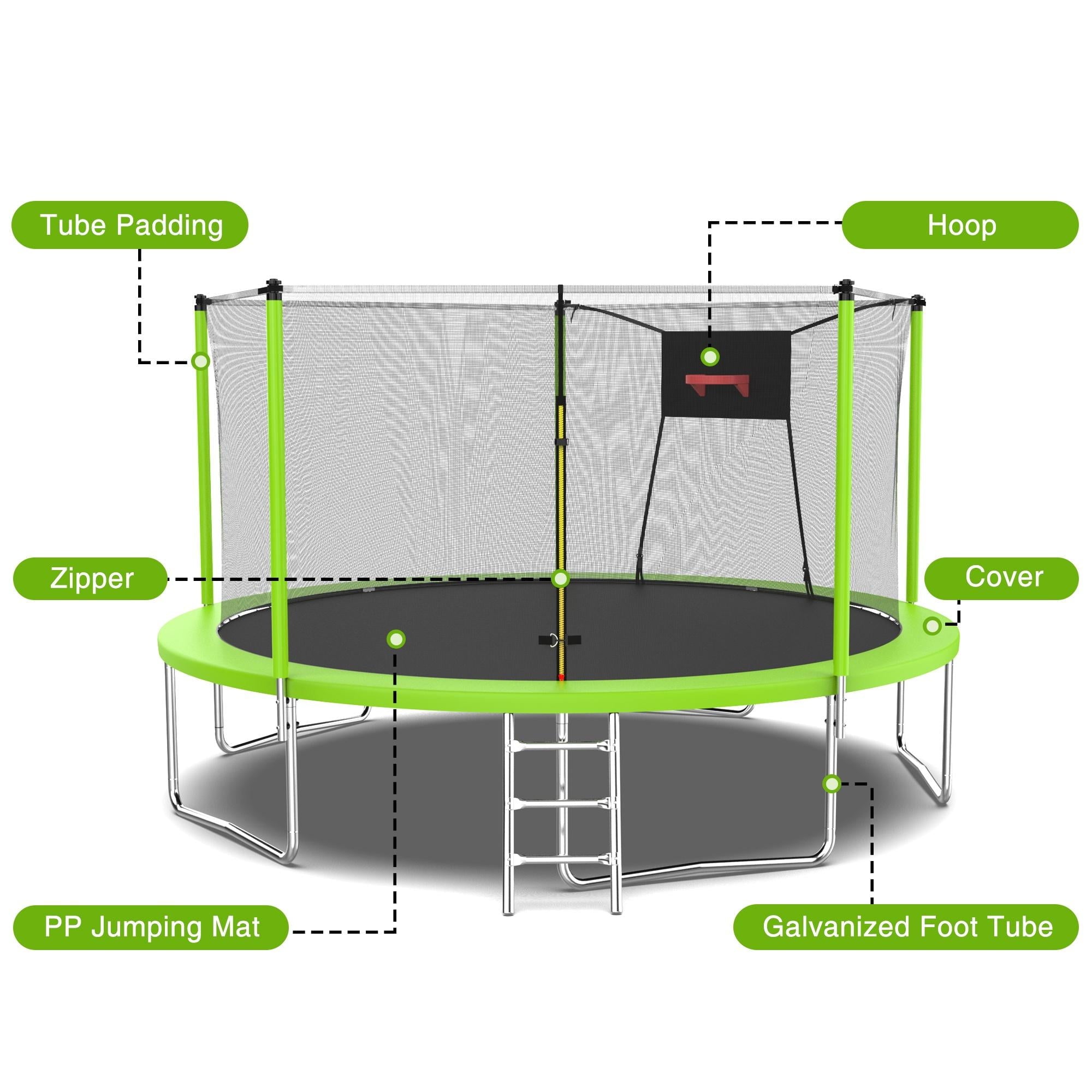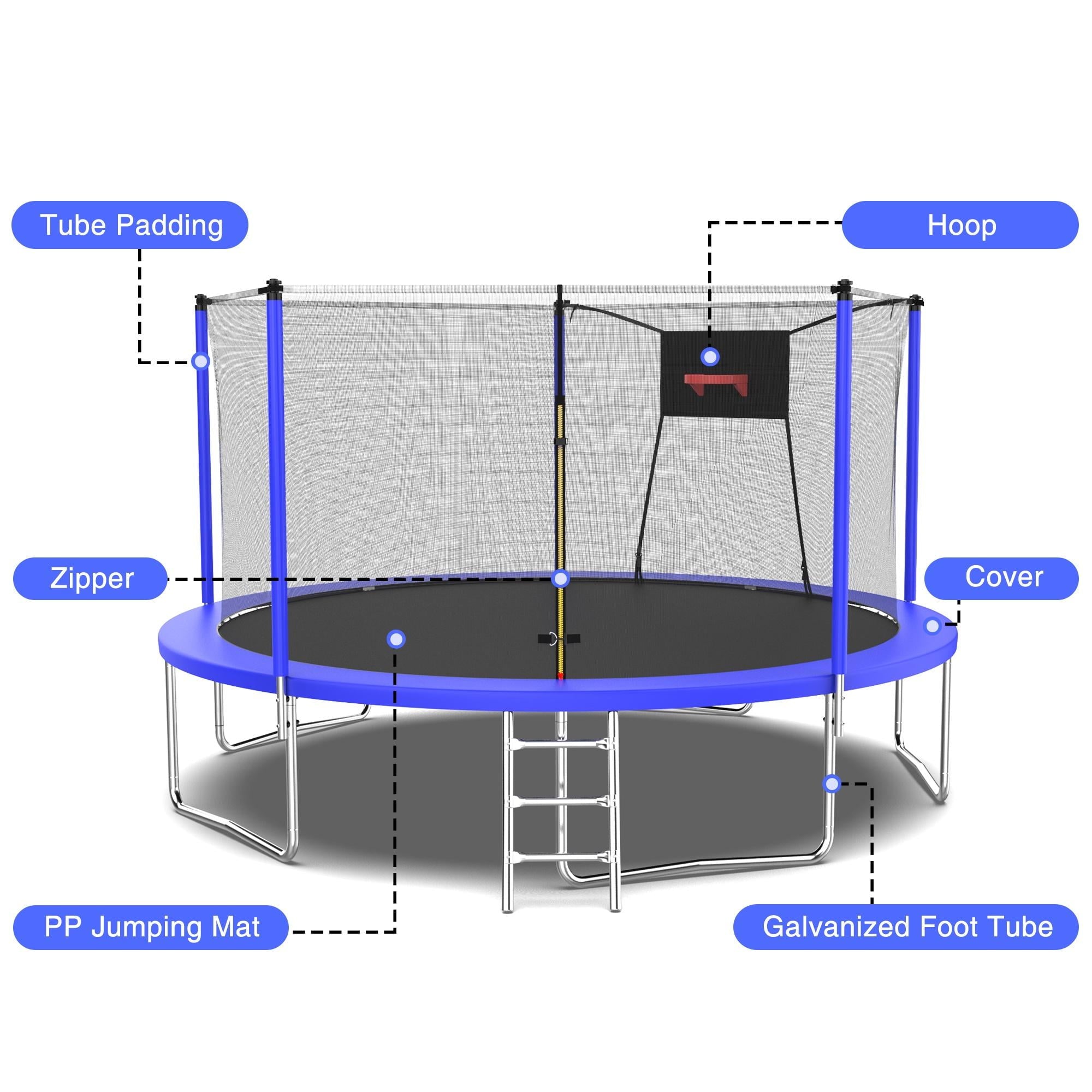 - ??♂️【Basketball + Jumping】- This outdoor trampoline comes with a basketball hoop, after quick assembly, your little guys can enjoy the dual sports of basketball + jumping!