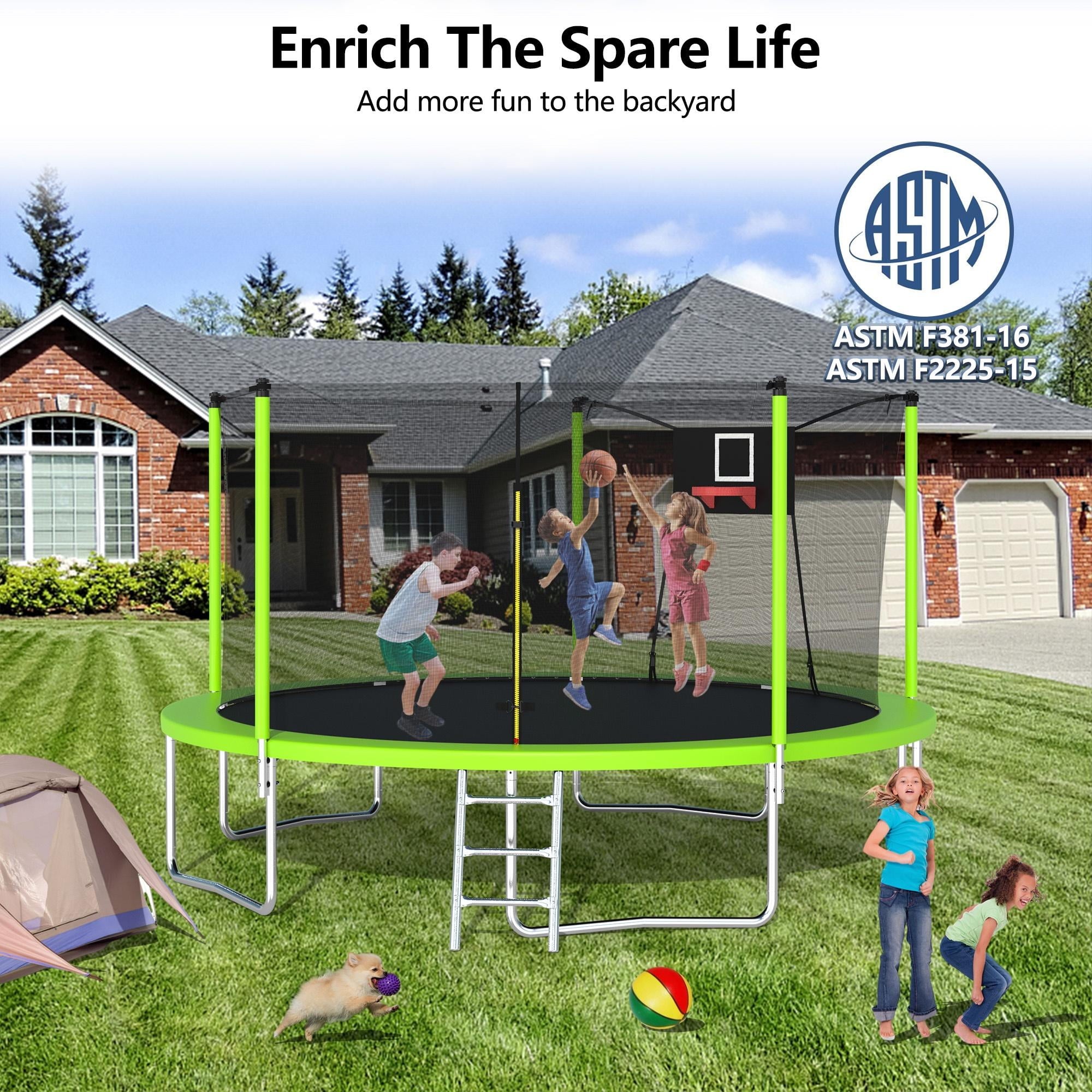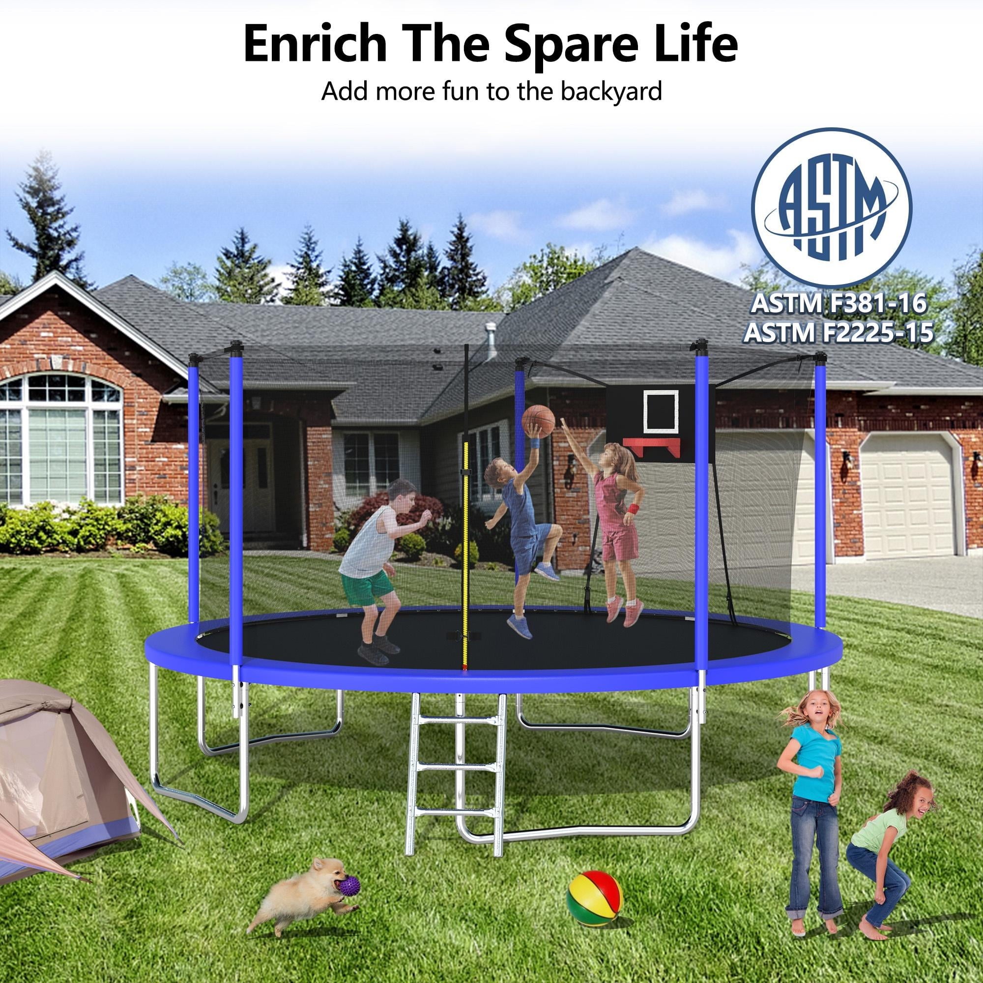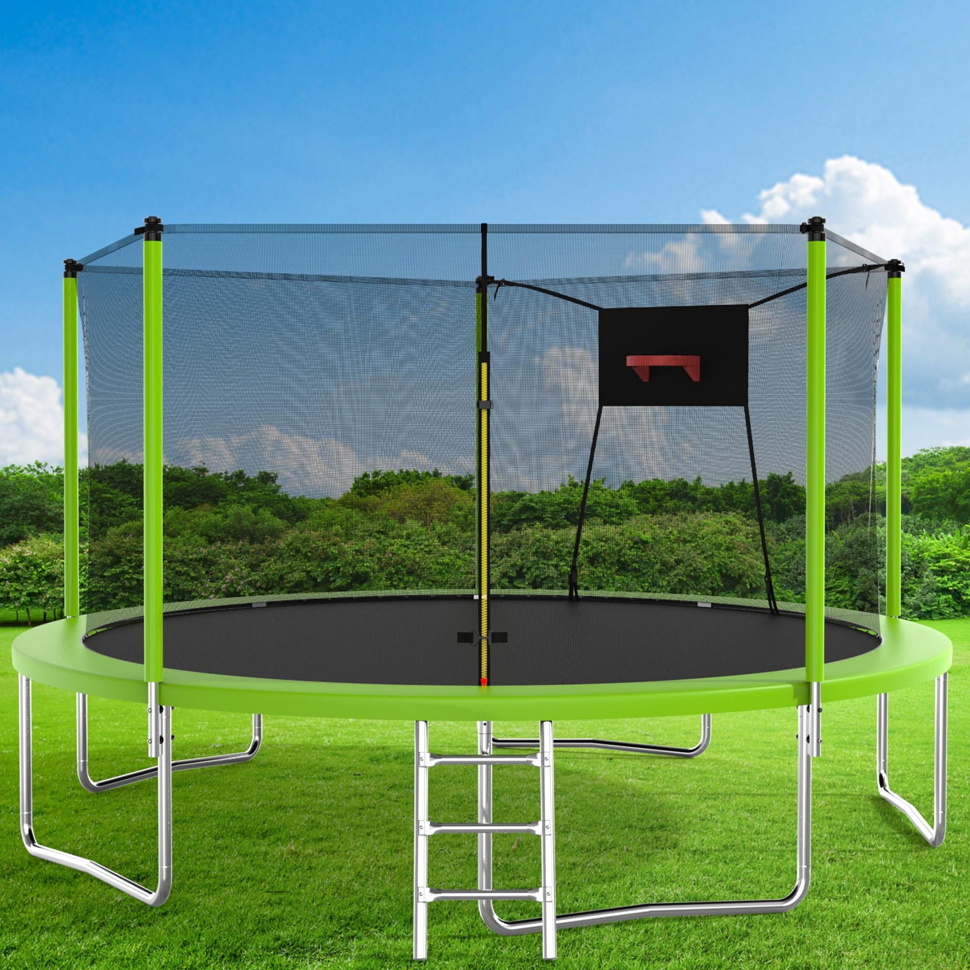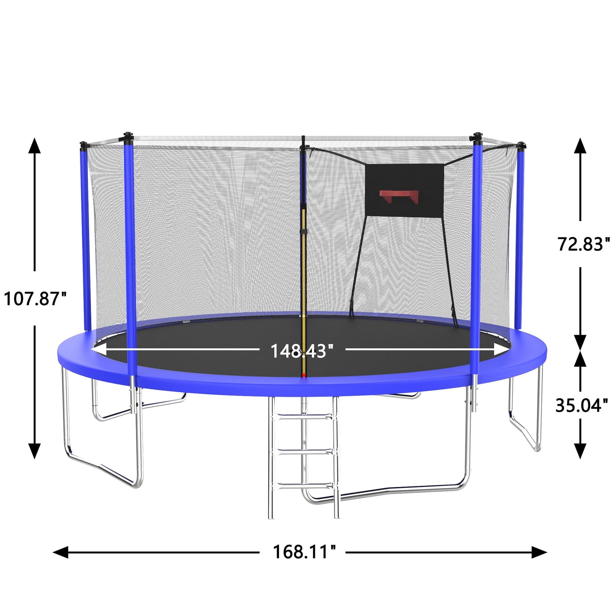 - ??♂️【Basketball + Jumping】- This outdoor trampoline comes with a basketball hoop, after quick assembly, your little guys can enjoy the dual sports of basketball + jumping!