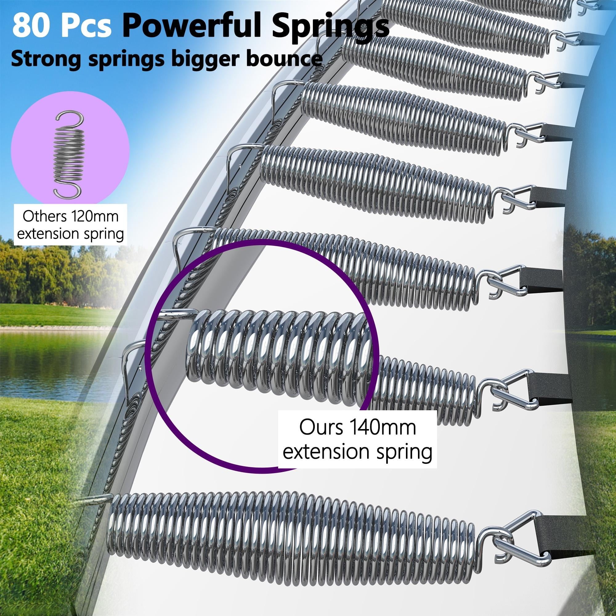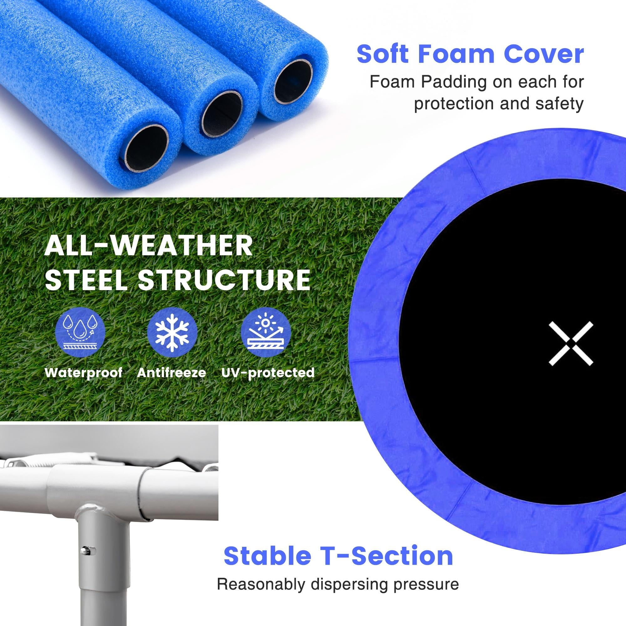 - ??♂️【All-Weather Use】- This all-weather large trampoline is specially built for the outdoors, made of galvanized metal, anti-UV spring pads and waterproof PVC frame pads, it can be used outdoors, lawn, garden, courtyard, etc. for a long time. You don’t need to tire to disassemble it after enjoying the pleasant outdoor sports.