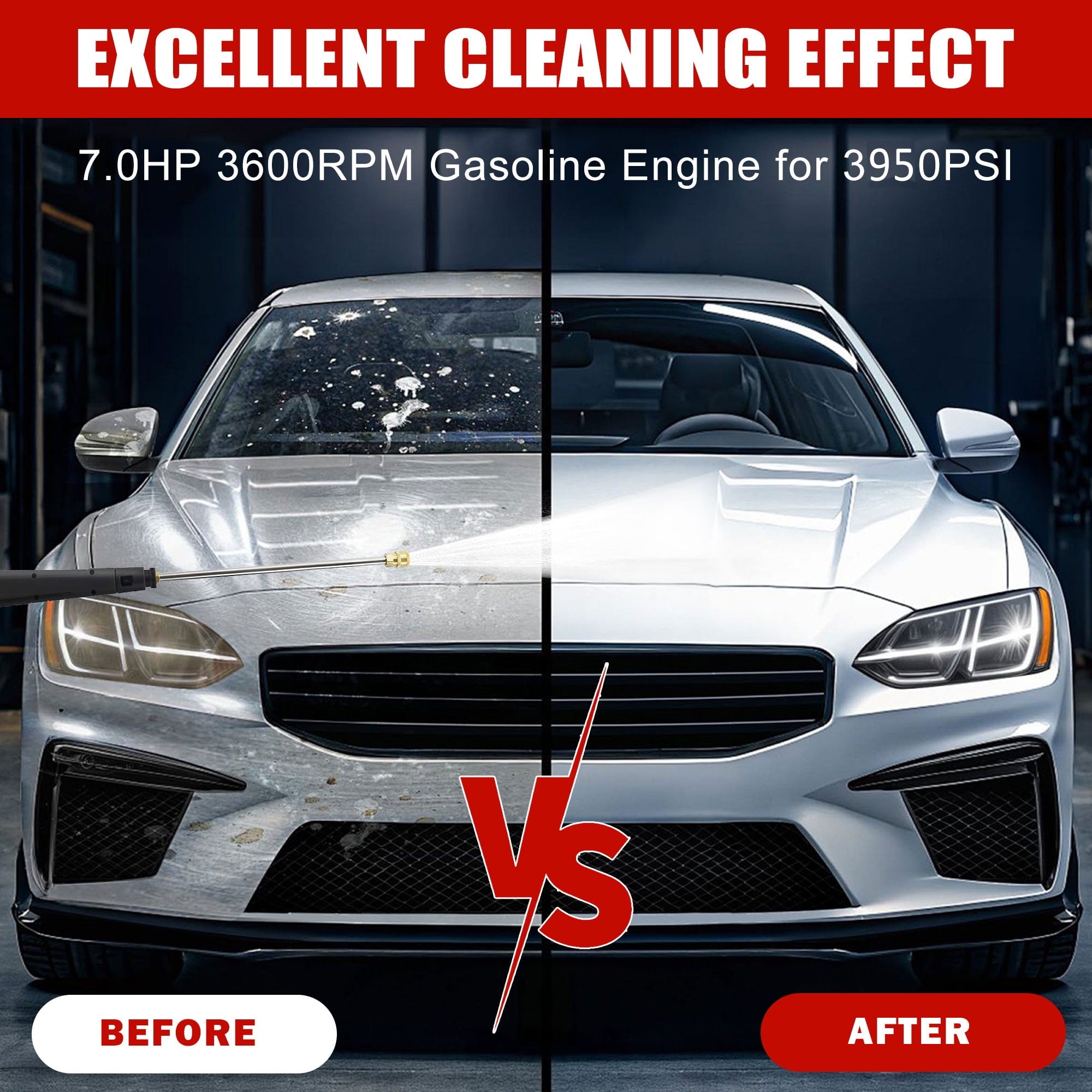 • ✔️[Professional-Grade Power] -Equipped with a 7HP 4-stroke OHV gasoline engine (210cc displacement) and axial cam pump, delivering 3950 PSI pressure and 2.6 GPM flow rate. Outperforms standard gas models for tough cleaning tasks like stripping grime from siding, driveways, vehicles, or surface prep.