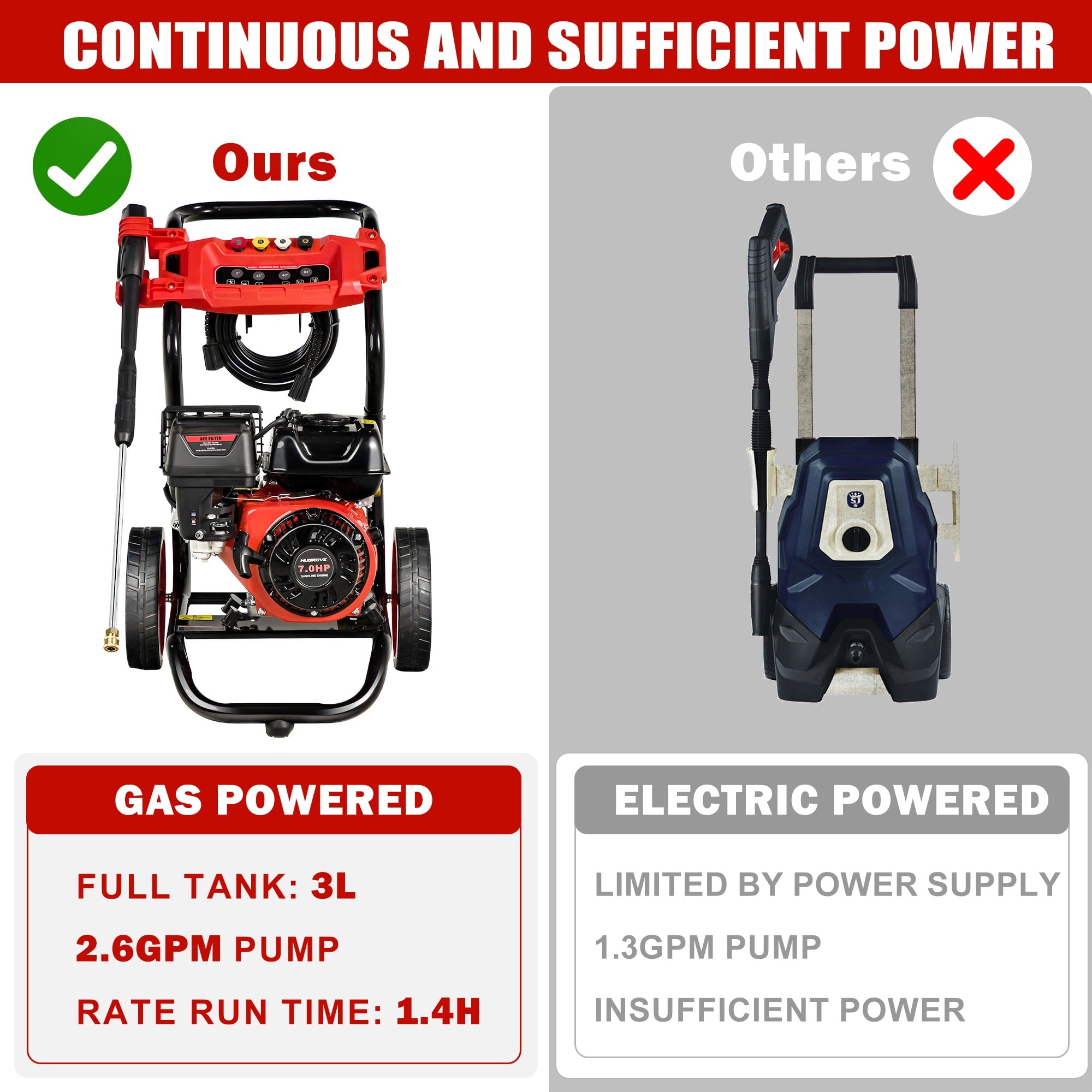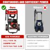 • ✔️[Durable Engine Design] -Heavy-duty gas engine with recoil start ensures reliable operation and low maintenance. Axial cam pump enhances longevity for extended heavy-duty use.