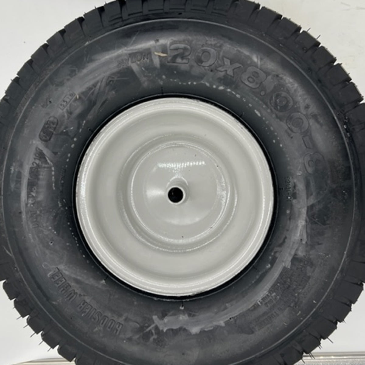 • Set of 2, 20×8.00-8 Lawn Mower Wheels with Gray Rim.