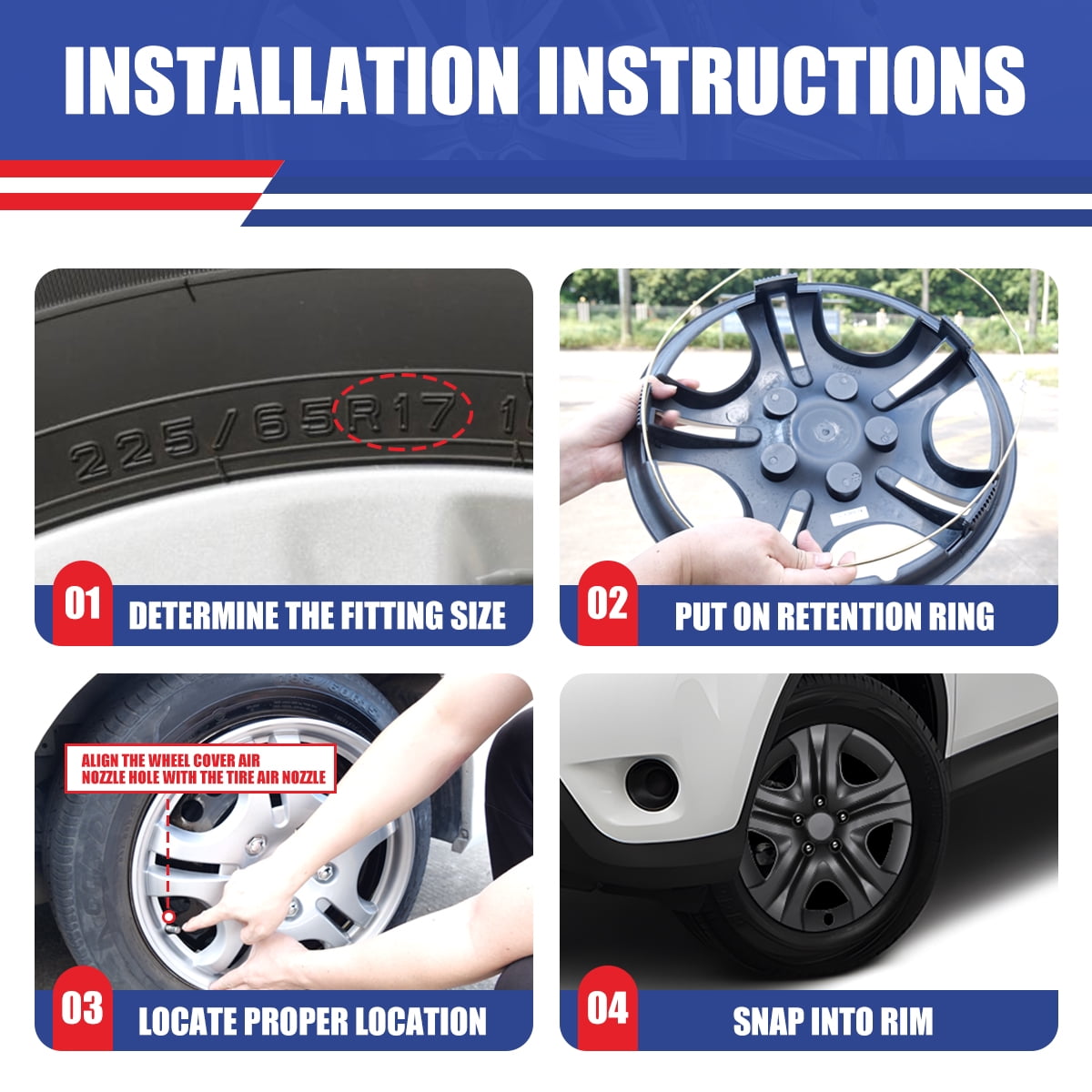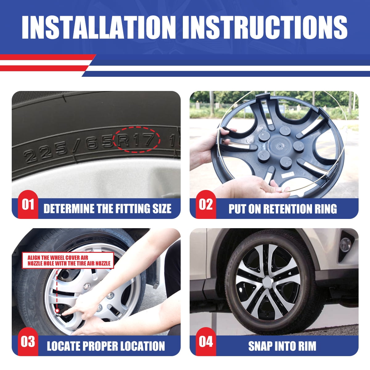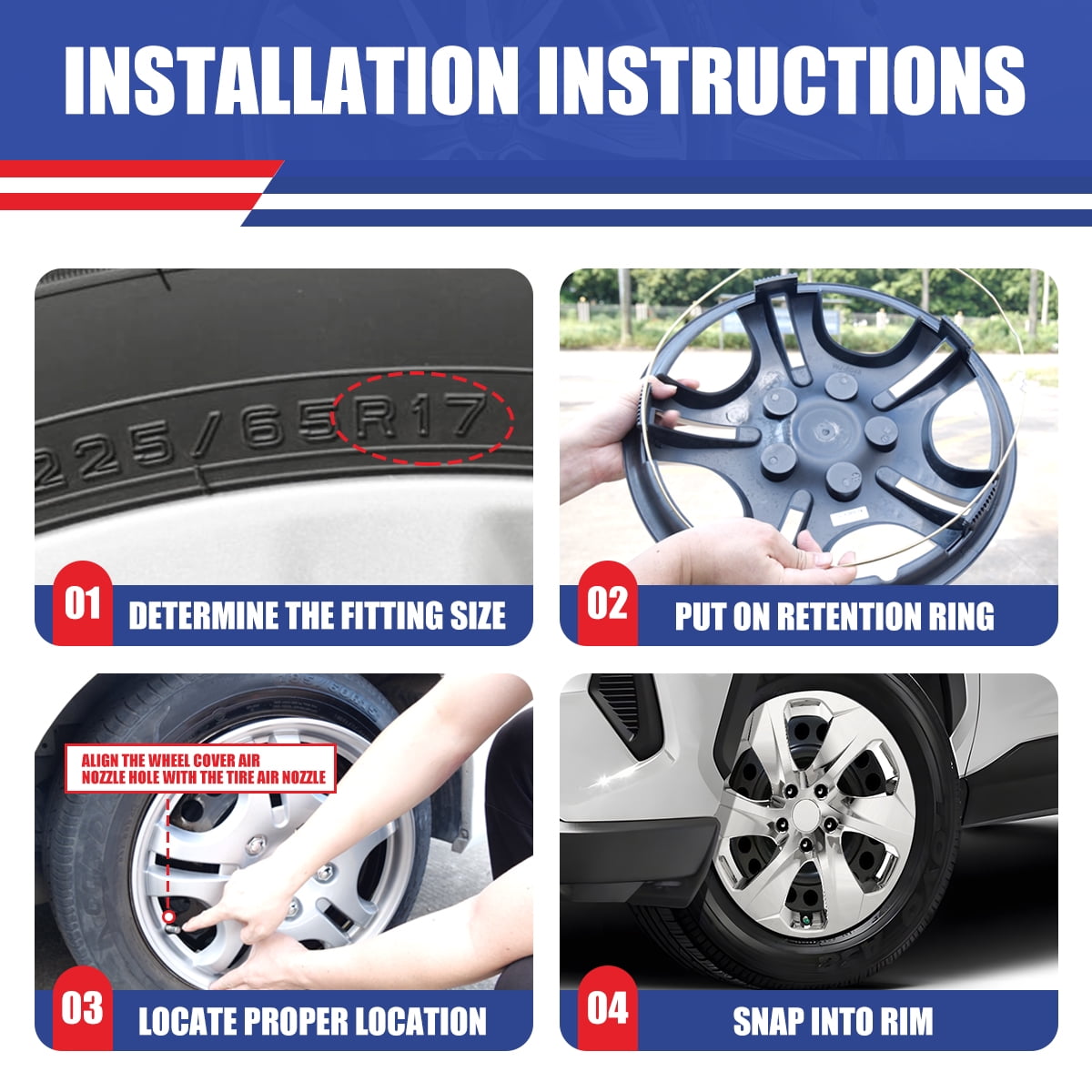 - Applicable models: Suitable for 2013-2018 TOYOTA RAV4(Not fit for winter wheel rims), matching the aesthetic design of the car. The full-wrapped design of the rim cover makes your car look more sporty and stylish after installation.