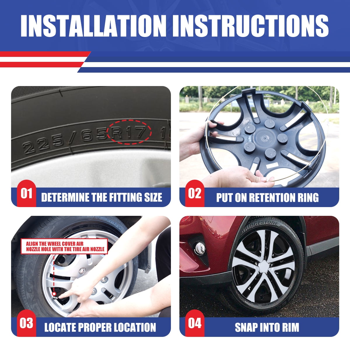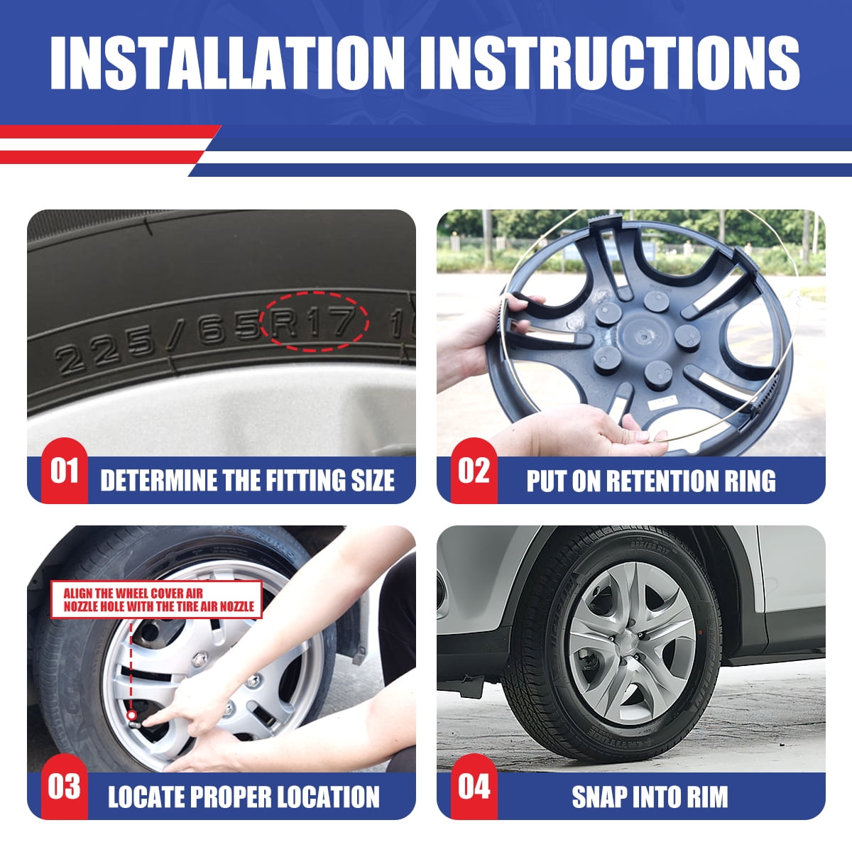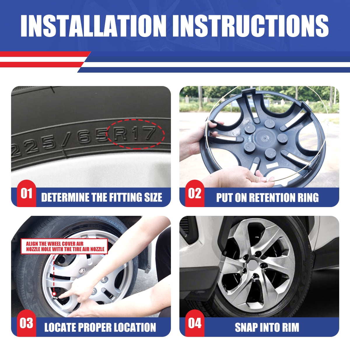 - Applicable models: Suitable for 2013-2018 TOYOTA RAV4(Not fit for winter wheel rims), matching the aesthetic design of the car. The full-wrapped design of the rim cover makes your car look more sporty and stylish after installation.