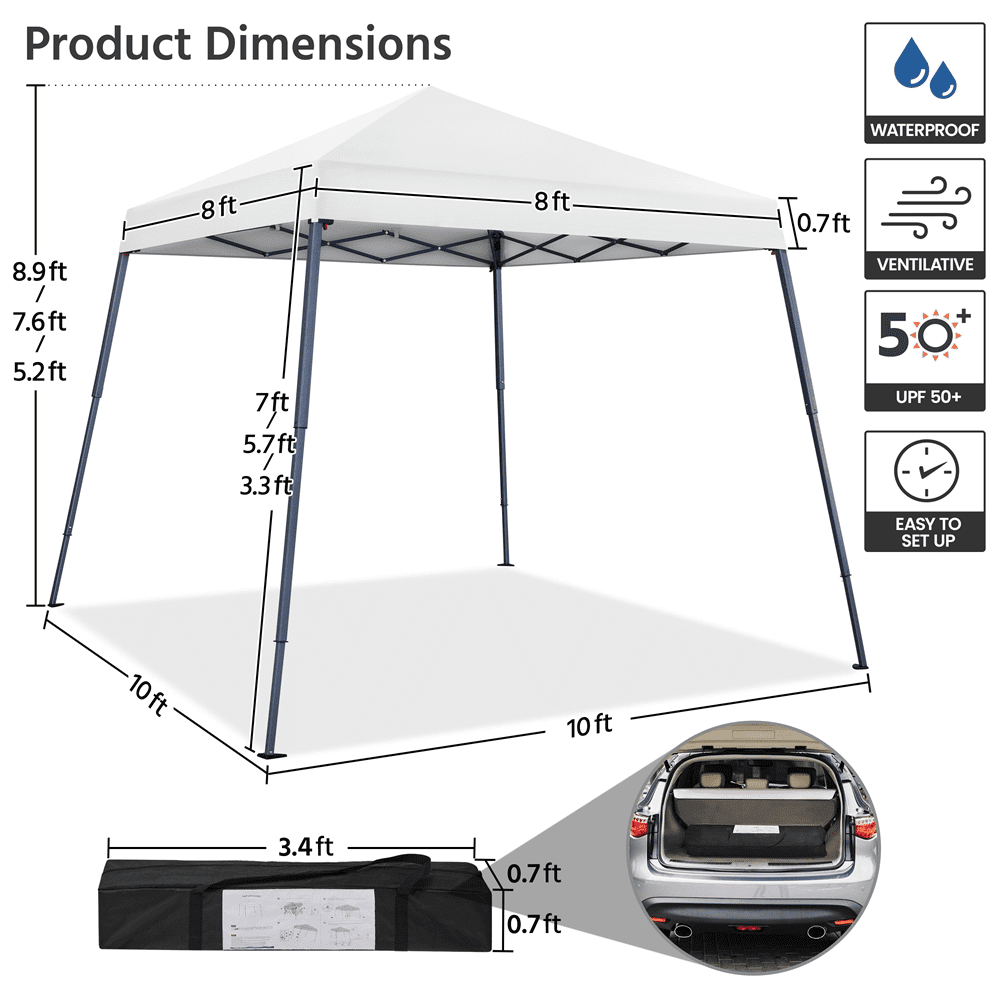- Adjustable Canopy Height: 5.2′, 7.6′, 8.9′