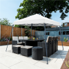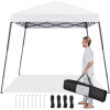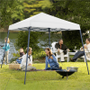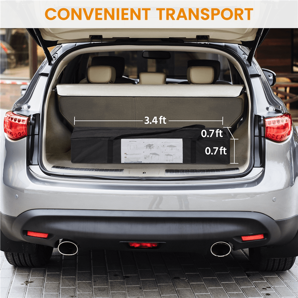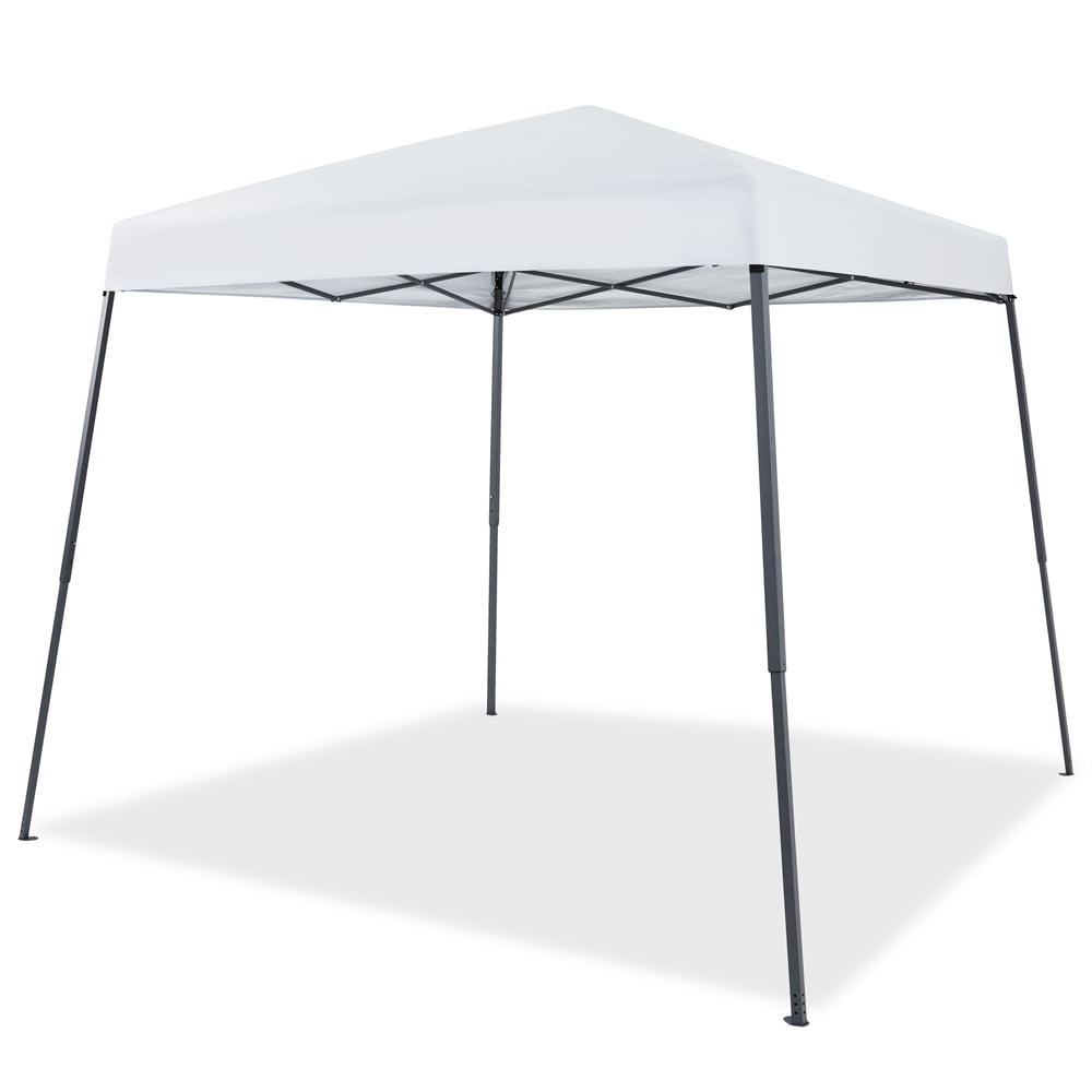 This 10ft × 10ft pop-up canopy is designed for ultimate outdoor convenience. Constructed with durable polyester fabric featuring a UPF 50+ UV protective coating, it provides reliable sun and rain protection. The powder-coated steel frame ensures long-lasting durability, while the slanted legs offer improved stability and increased interior space. It comfortably accommodates up to ten people, making it ideal for beach outings, picnics, or backyard parties. The adjustable height allows you to customize the canopy for any occasion. For easy transport, it folds neatly into a compact carry bag. This complete set includes guy lines and ground stakes for a secure setup, offering both portability and stability for all your outdoor events.