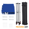 • Overall size: 10x10x8.3/8.6/9ft (LxWxH); wheeled bag size: 45.3x10x8inch (LxWxH); N.W.: 32.2lb; G.W.: 35.3lb