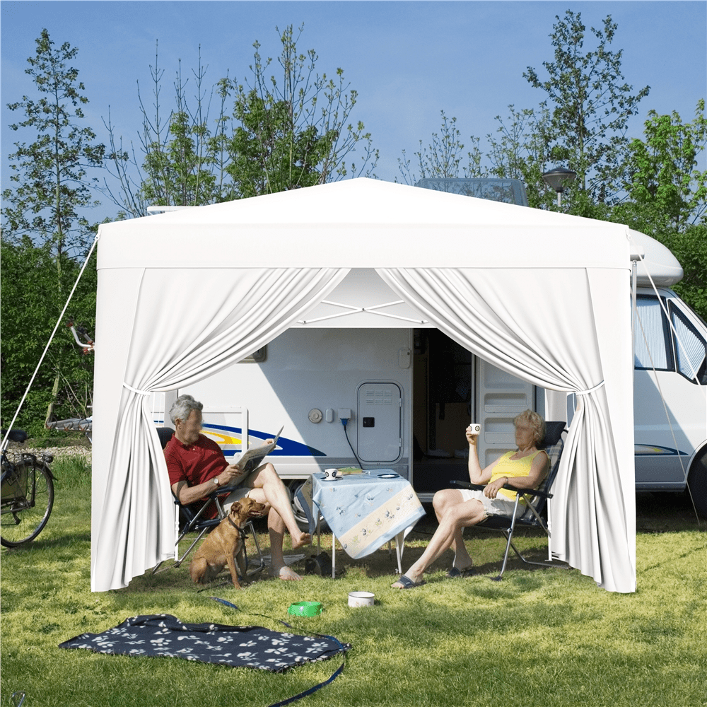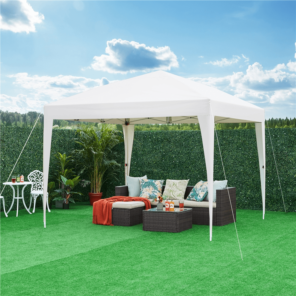 SmileMart 10x10ft Outdoor Canopy Pop up Gazebo with Sidewall Window, White