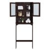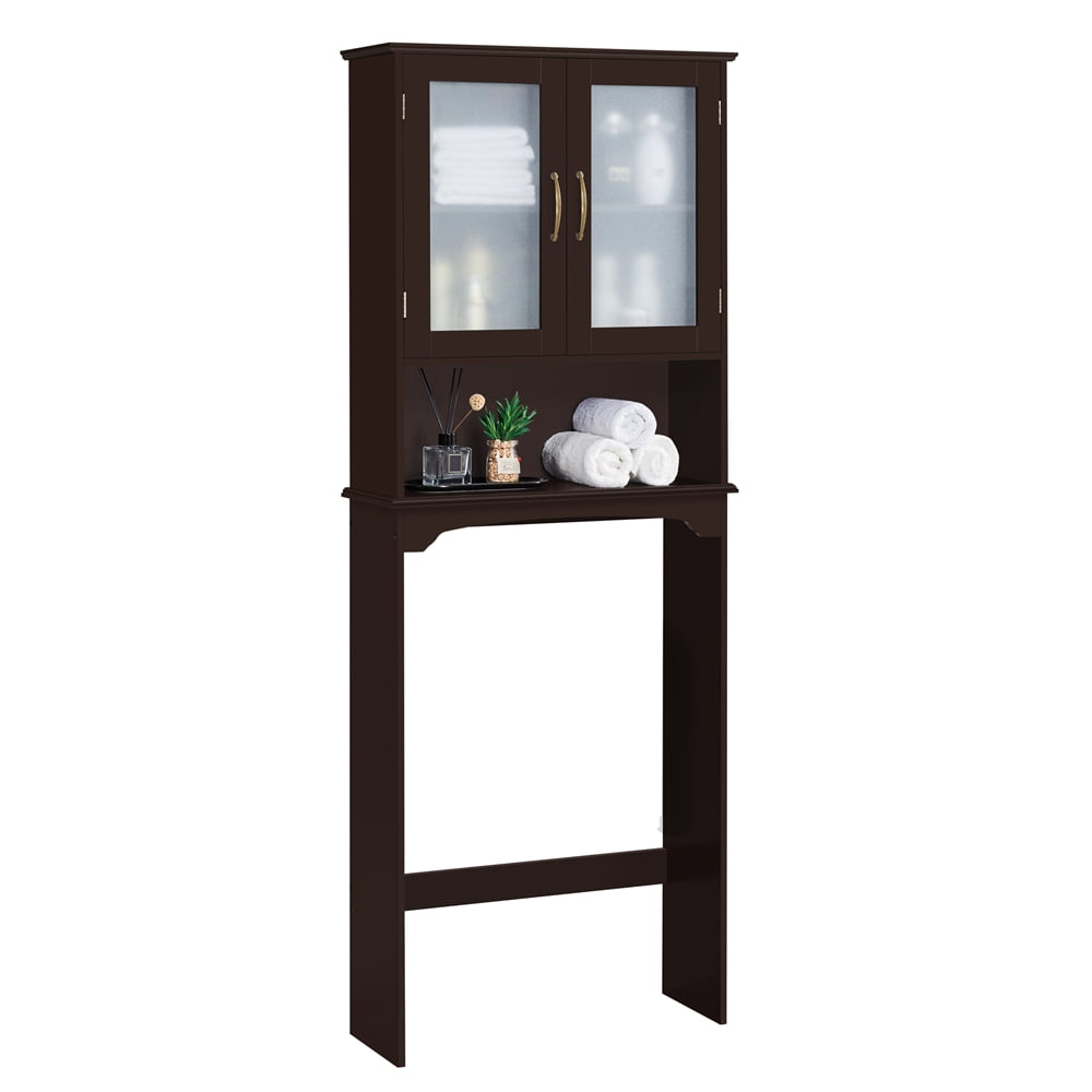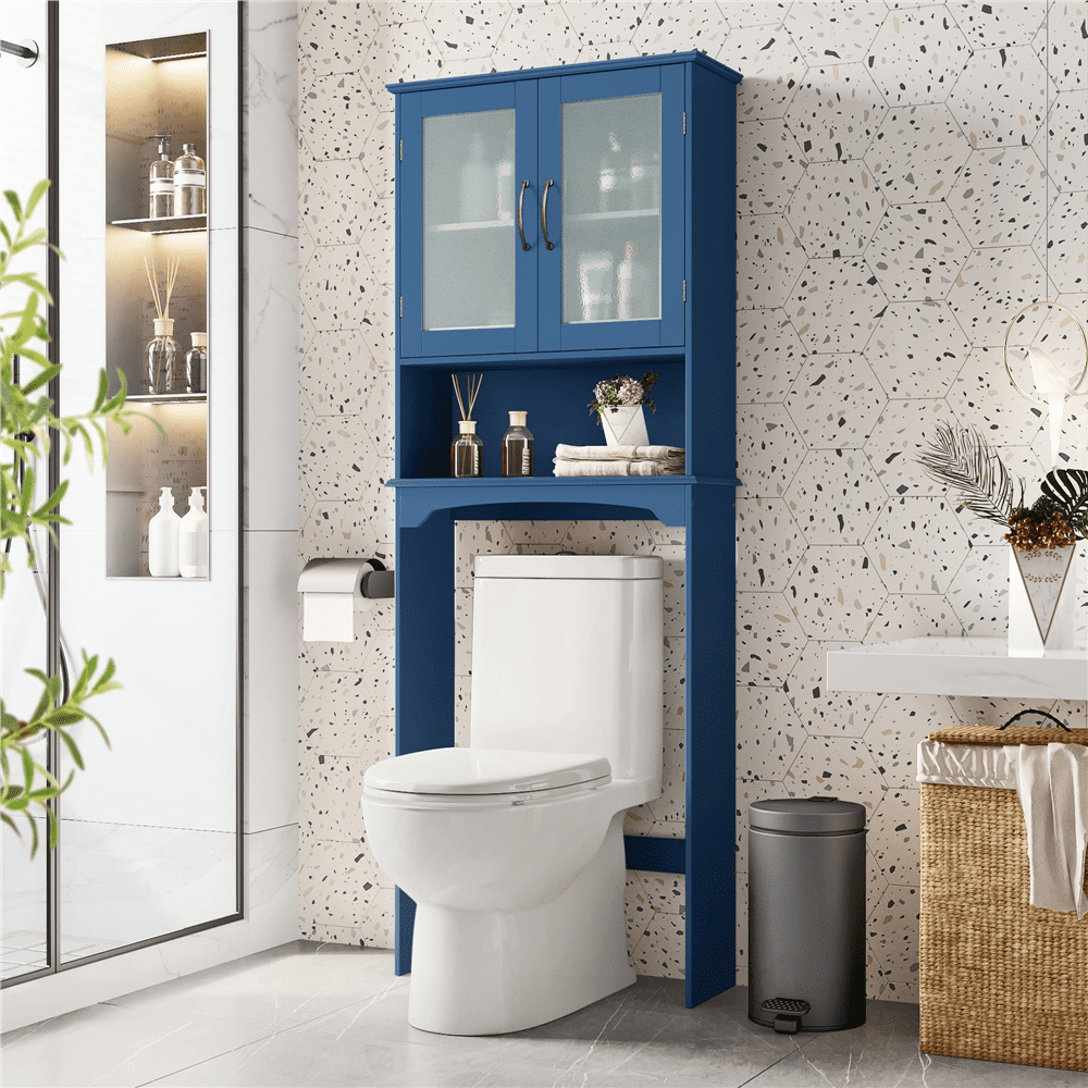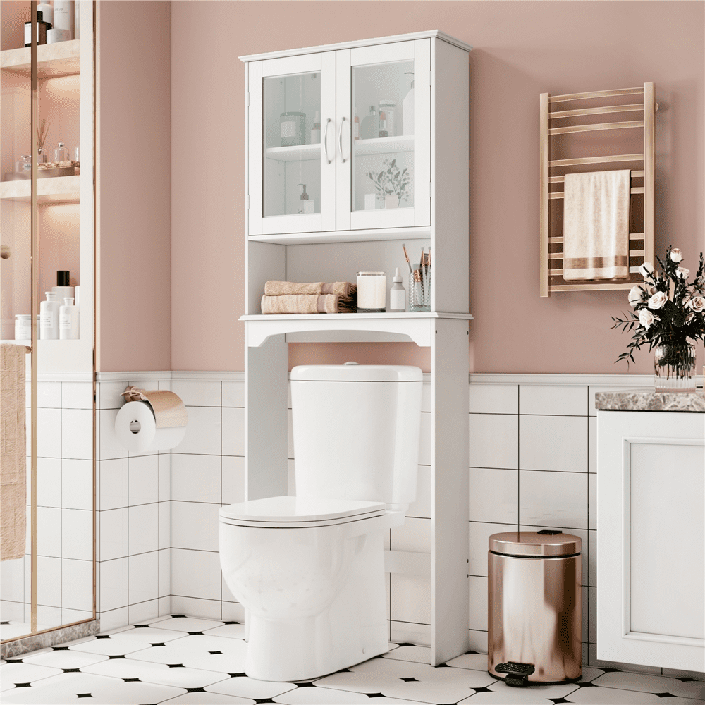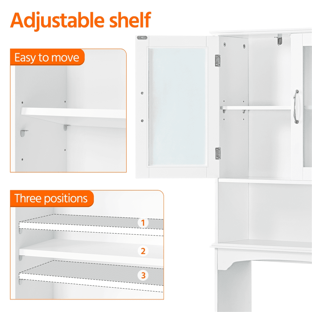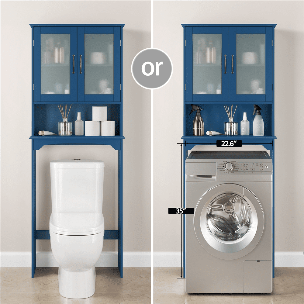 This versatile bathroom space saver features a two-door cabinet and an open shelf for easy access storage which allows you to utilize extra space for all your bathroom storage needs. This bathroom space saver features sturdy MDF construction, and its white finish ensures that it will match and accent any existing decor. An open shelf under the cabinet gives you an easy spot to keep your essentials organized and close by. It has four slim legs, so it can sit above your toilet for easy storage.