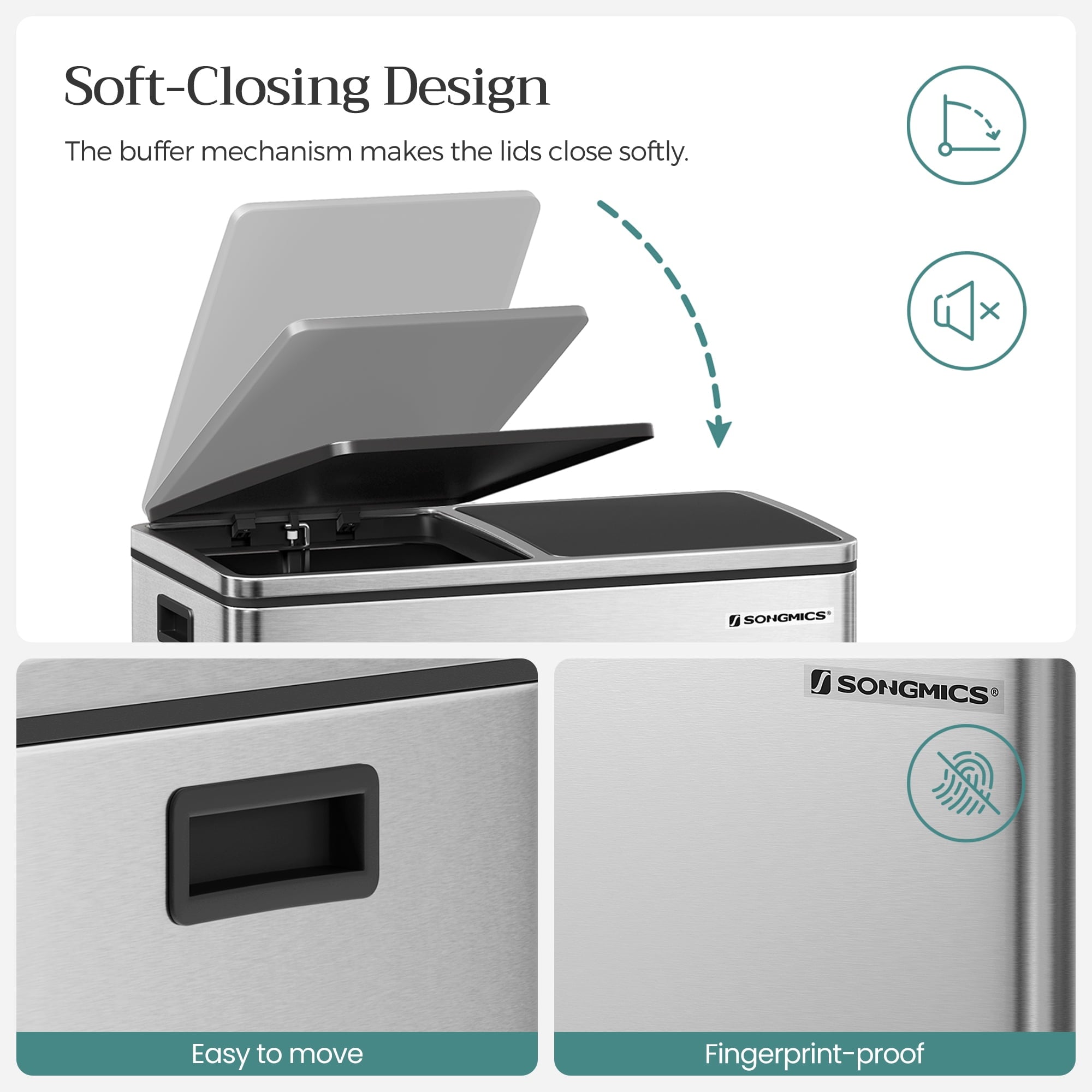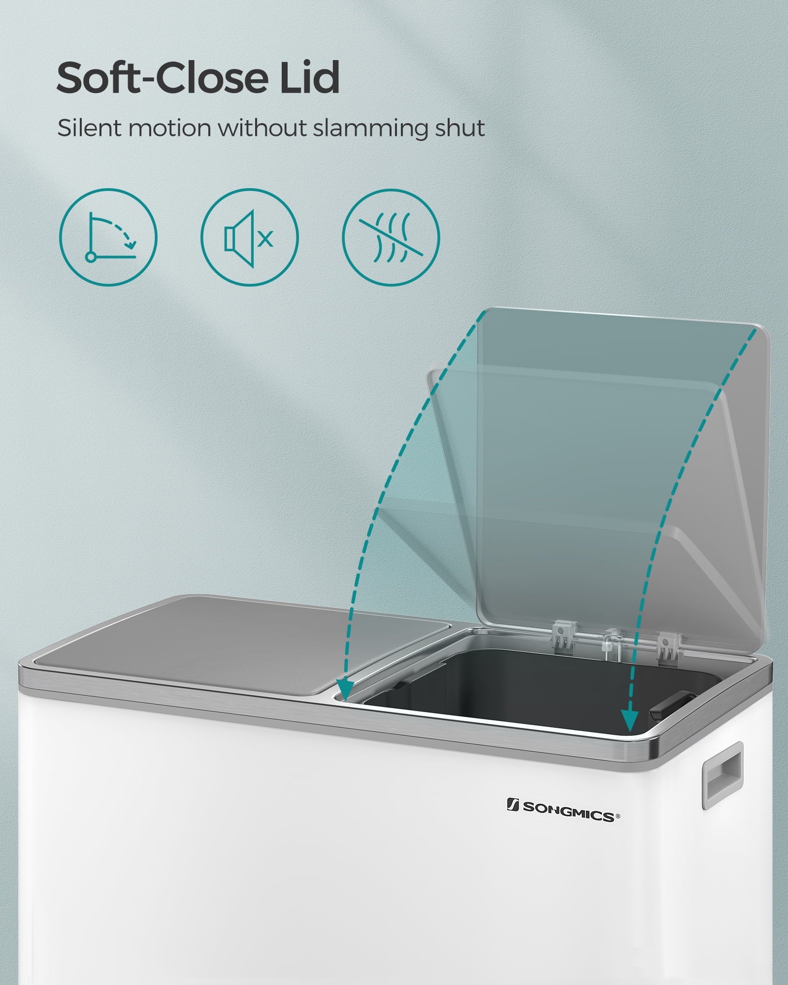 - [Strong yet Soft] The rigid stainless steel body of this garbage can withstands long-lasting use; the soft-close lid ensures the environment remains peaceful, with no loud slamming to be heard