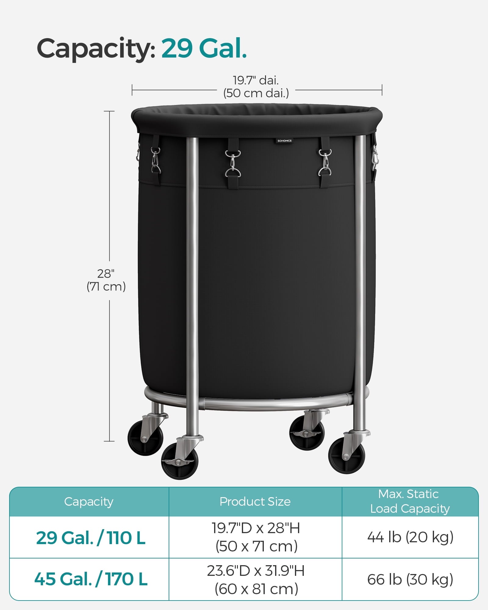 - 【Large Storage Space】 The size of the laundry sorter: 19.7″L x 19.7″W x 28″H. This rolling laundry hamper provides large container to sort dirty clothes and toys or other scattered items,make you home clean and neat.
