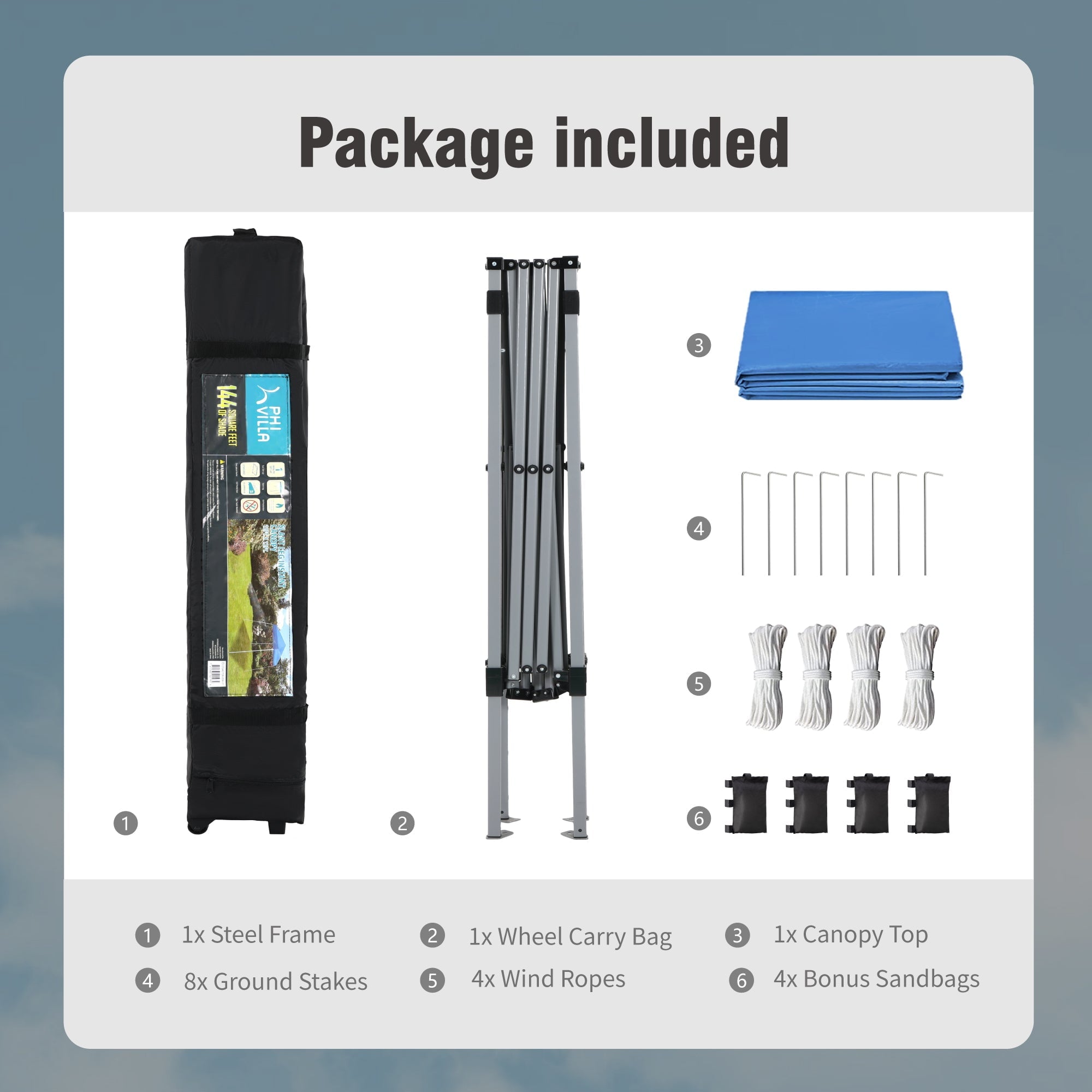 - Canopy Size: 12′ x 12′