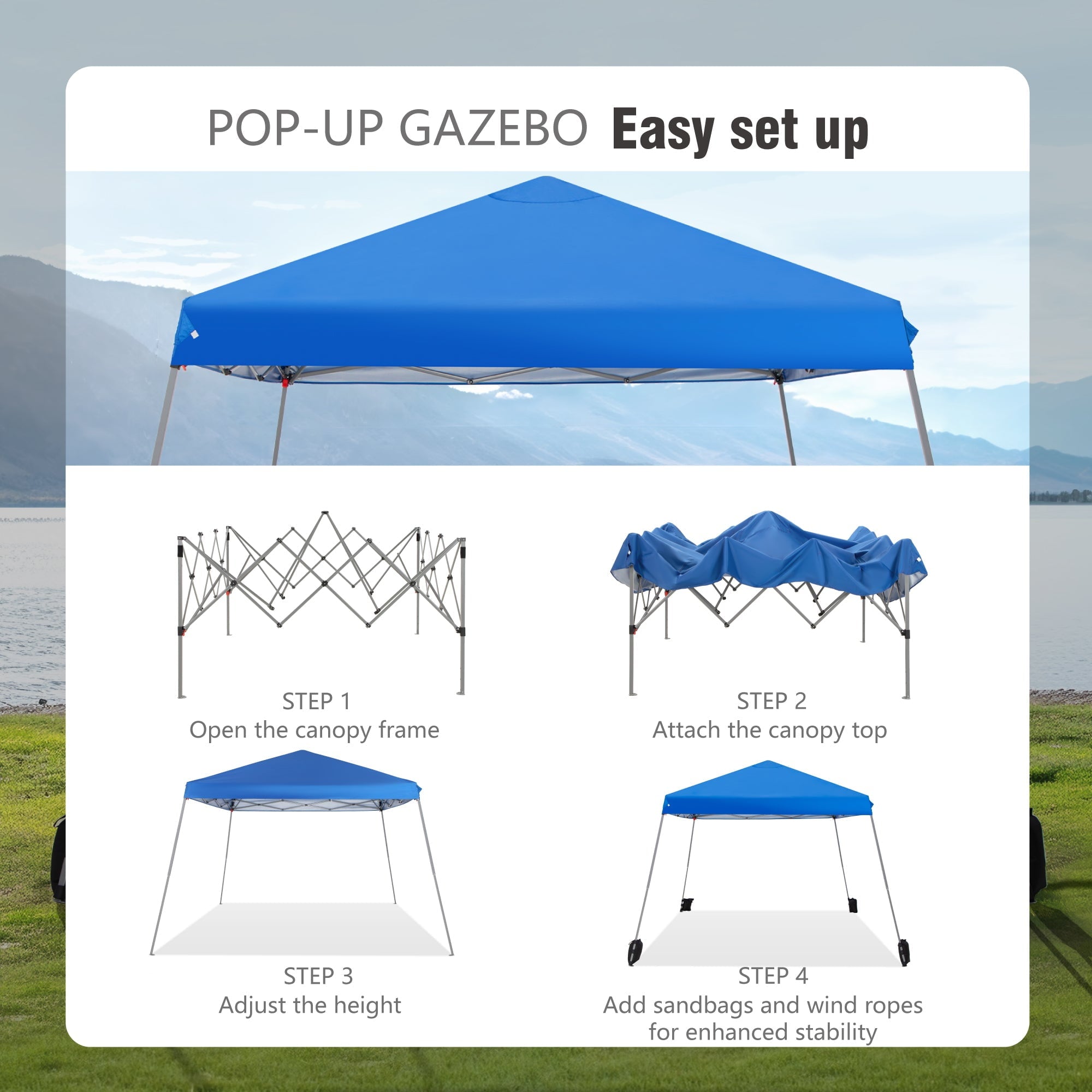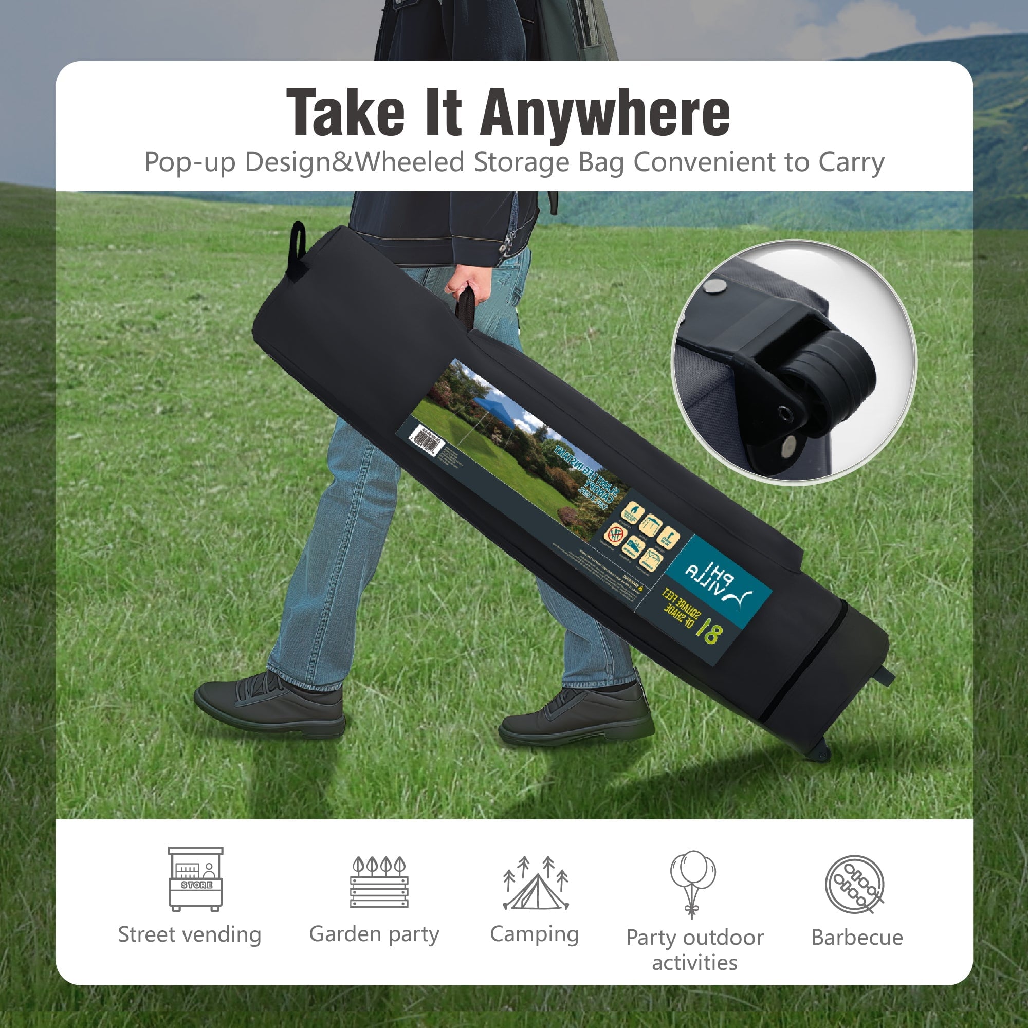 - Wide Application: Pop up awning provides a fast, affordable and easy-to-use shading solution for your outdoor activities. You can relax and enjoy outdoor activities such as small business, craft shows, tailgate parties, picnics, camping, party, BBQ, vendors, flea market, outdoor sporting events, etc.