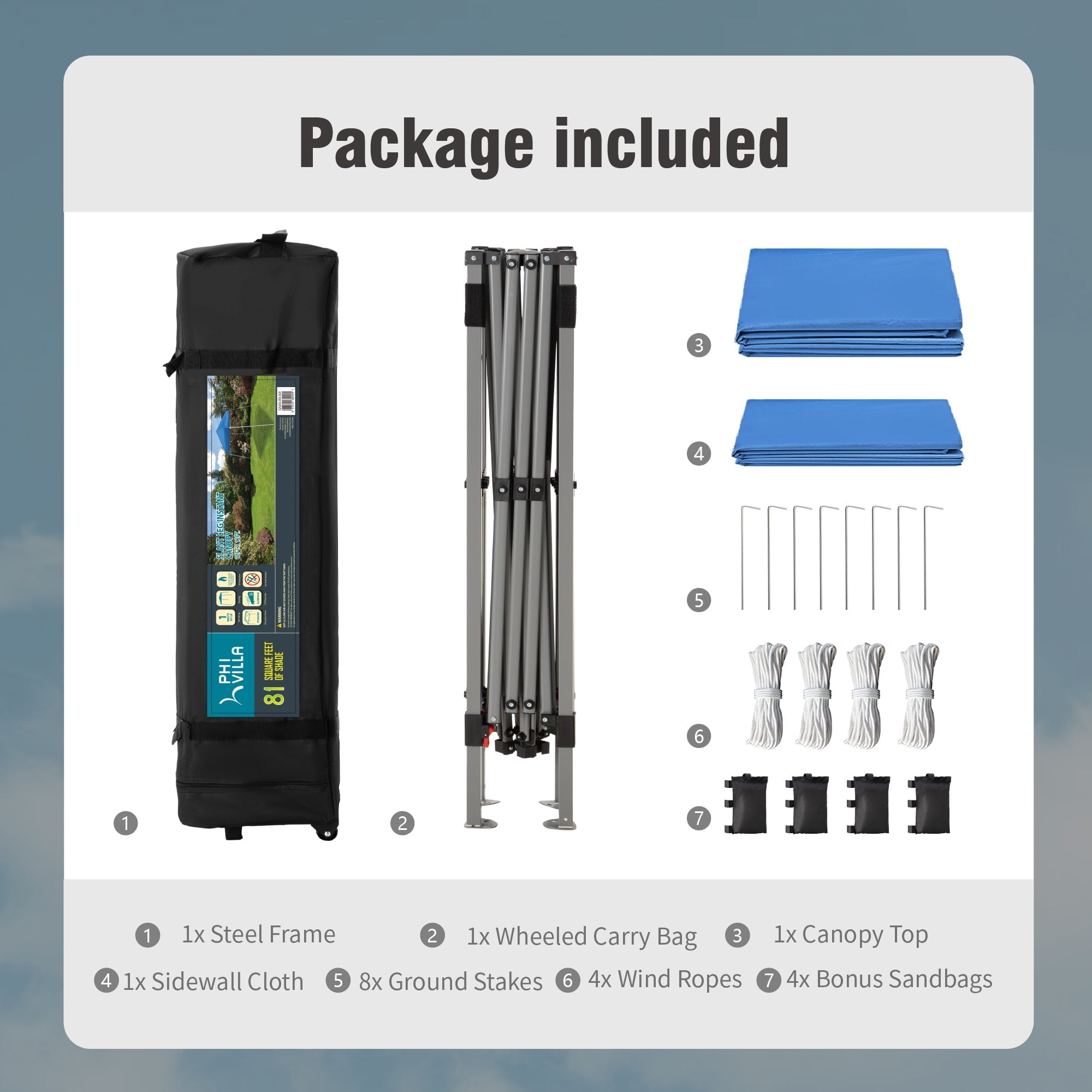 - 1 x Steel Pop-up Frame