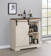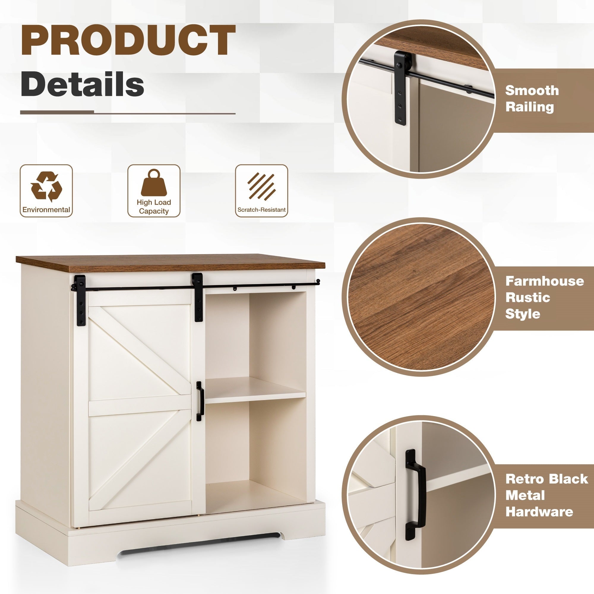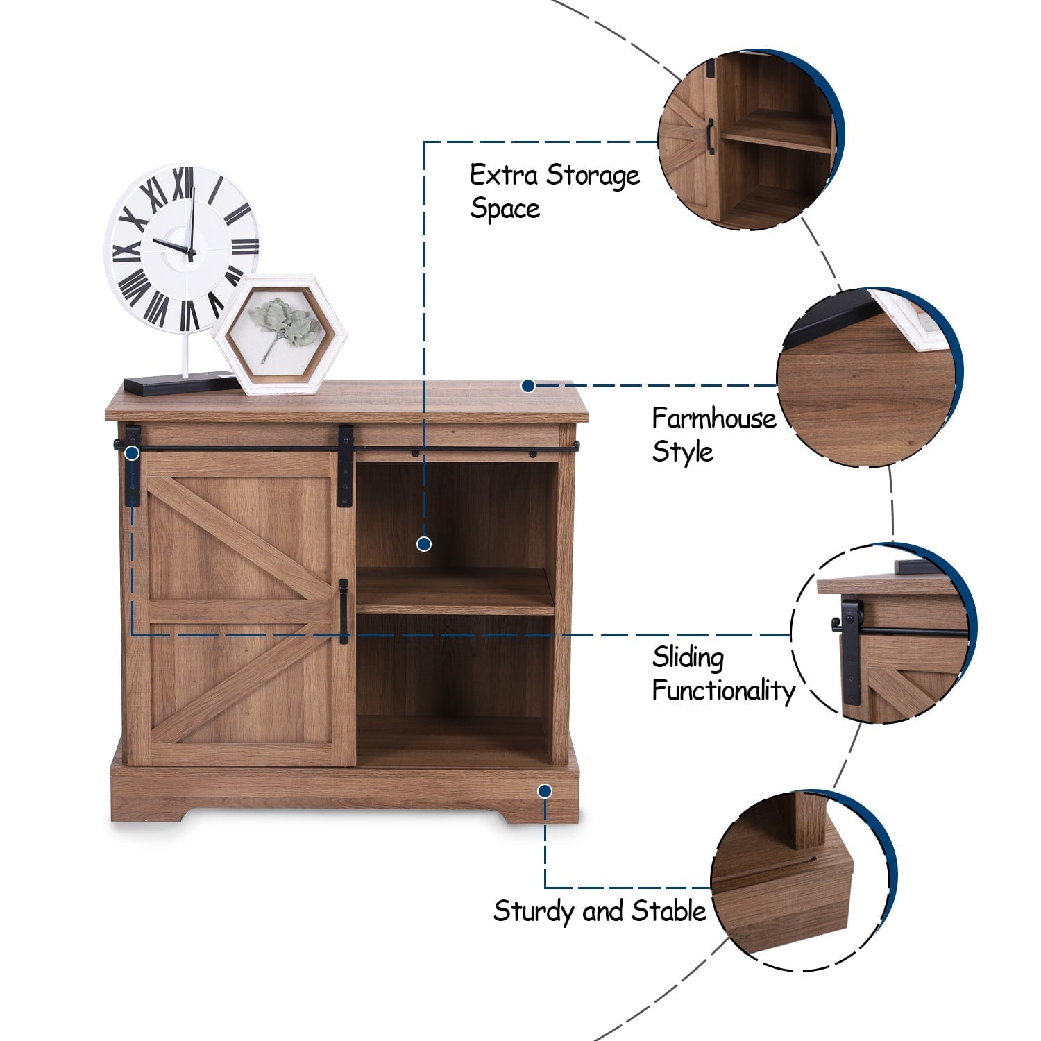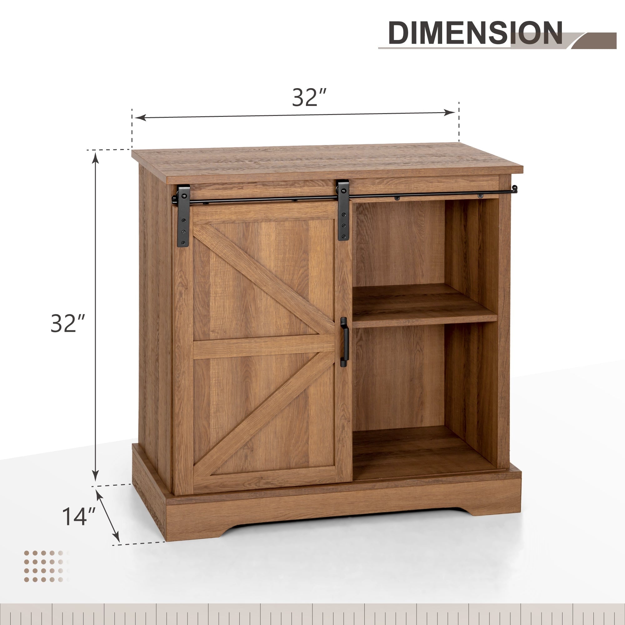 Store and display your favorite things with this Farmhouse Sliding Door Accent Cabinet. It features a barn wood-styled sliding door that easily glides side to side so you can store and display an array of items ranging from your collection of novels and stacks of magazines to knick-knacks and photos of your family and friends. You can display the best and hide the rest! Put in the bathroom to hold towels, makeup, and other essentials, place in the dining room for simple bar storage or use in the living room for your small-space tv console needs. Made from high-grade MDF, and powder-coated metal, this small cabinet will last in any capacity in your house for years to come, this beautiful storage cabinet is just what your home needs!