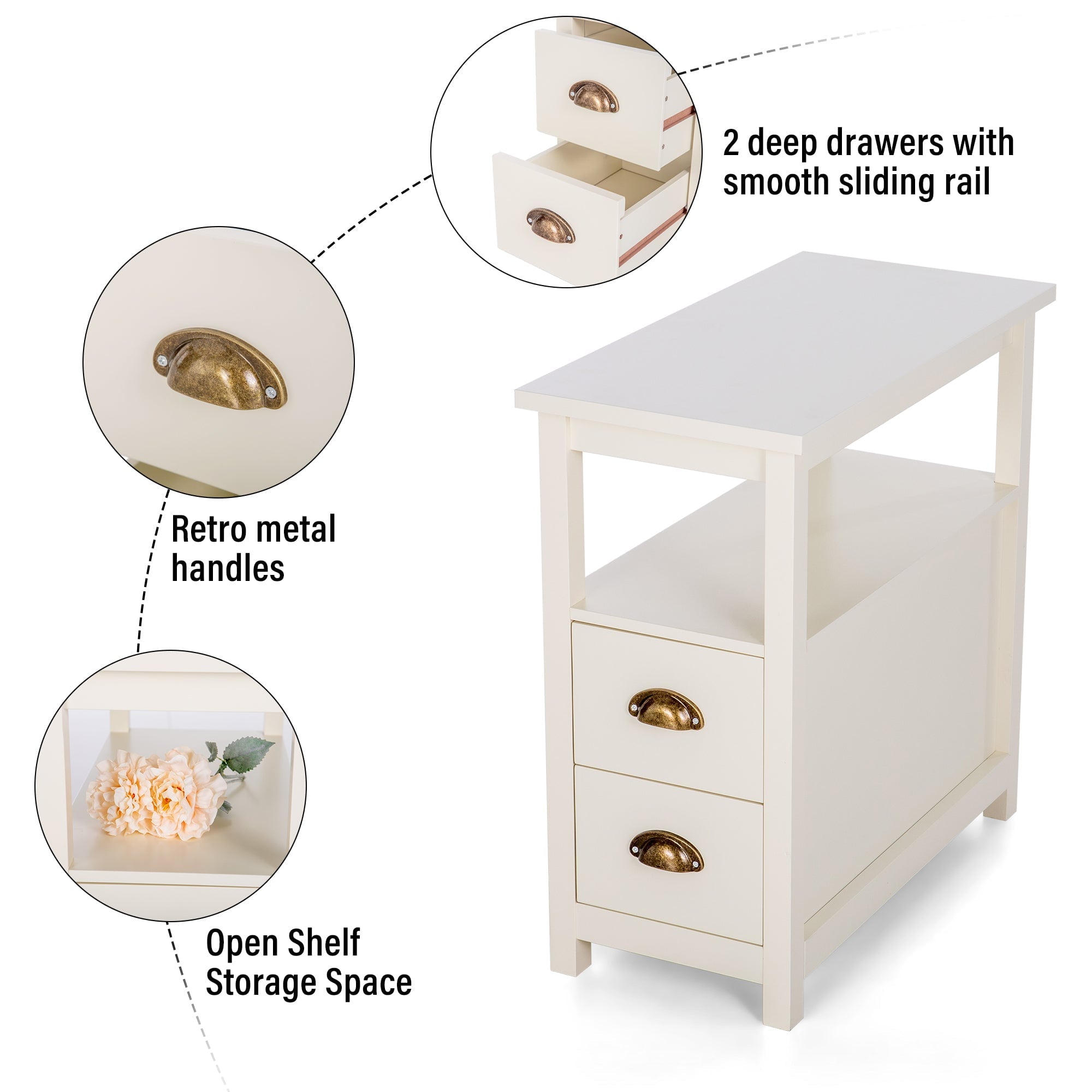 - Narrow & Space Saving: With slim dimensions, the narrow nightstand is especially suitable for small and narrow spaces, which will not occupy too much space.