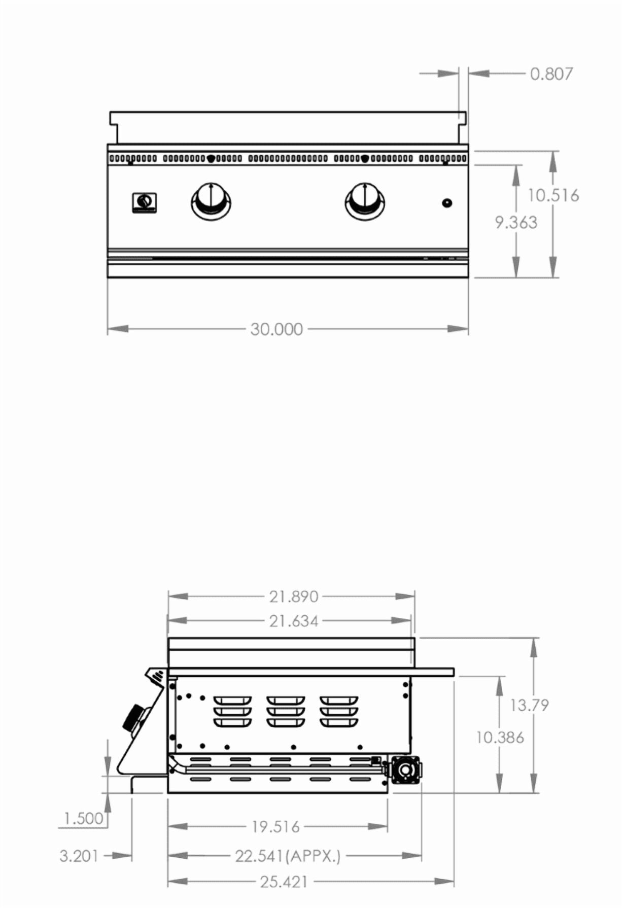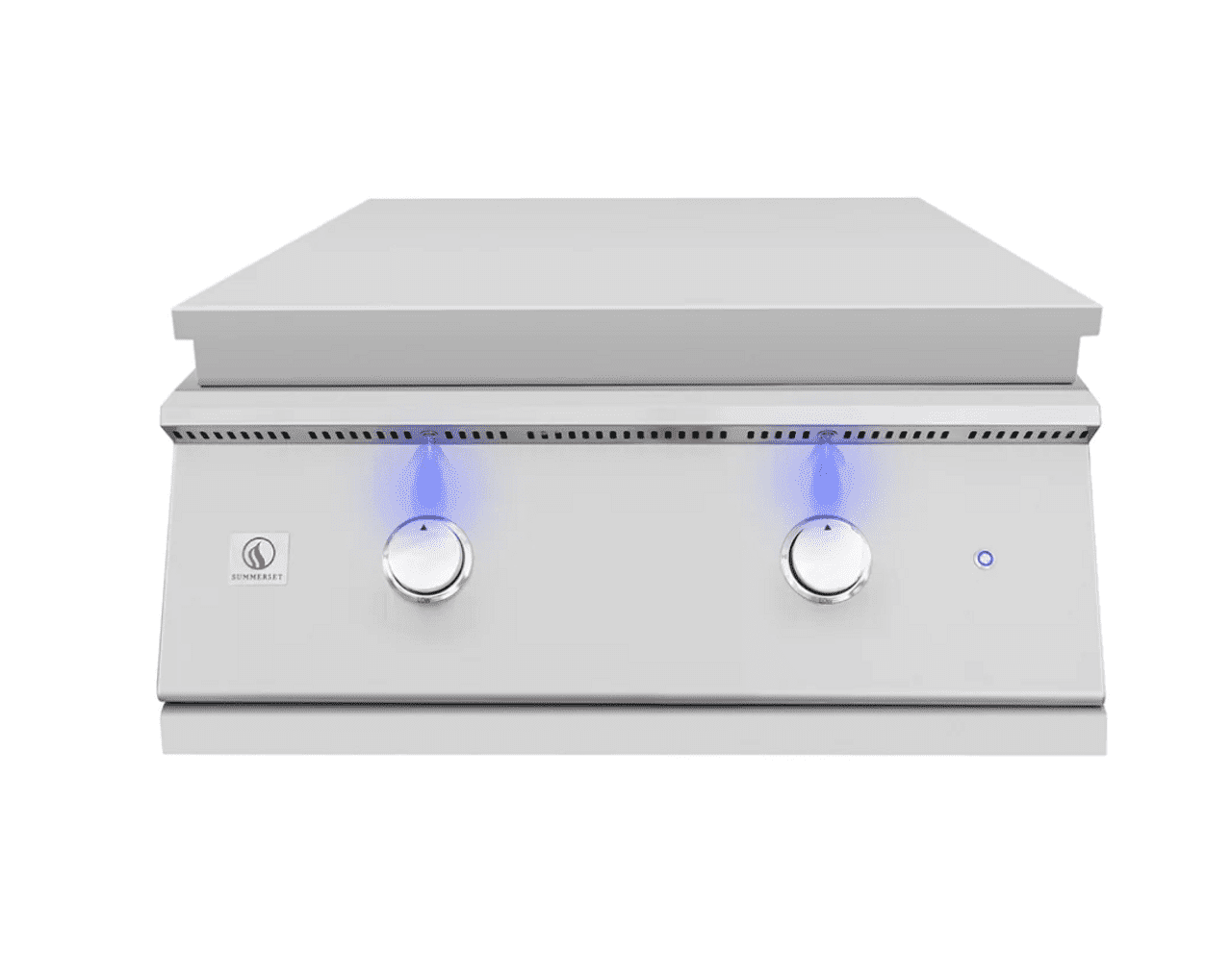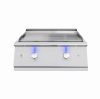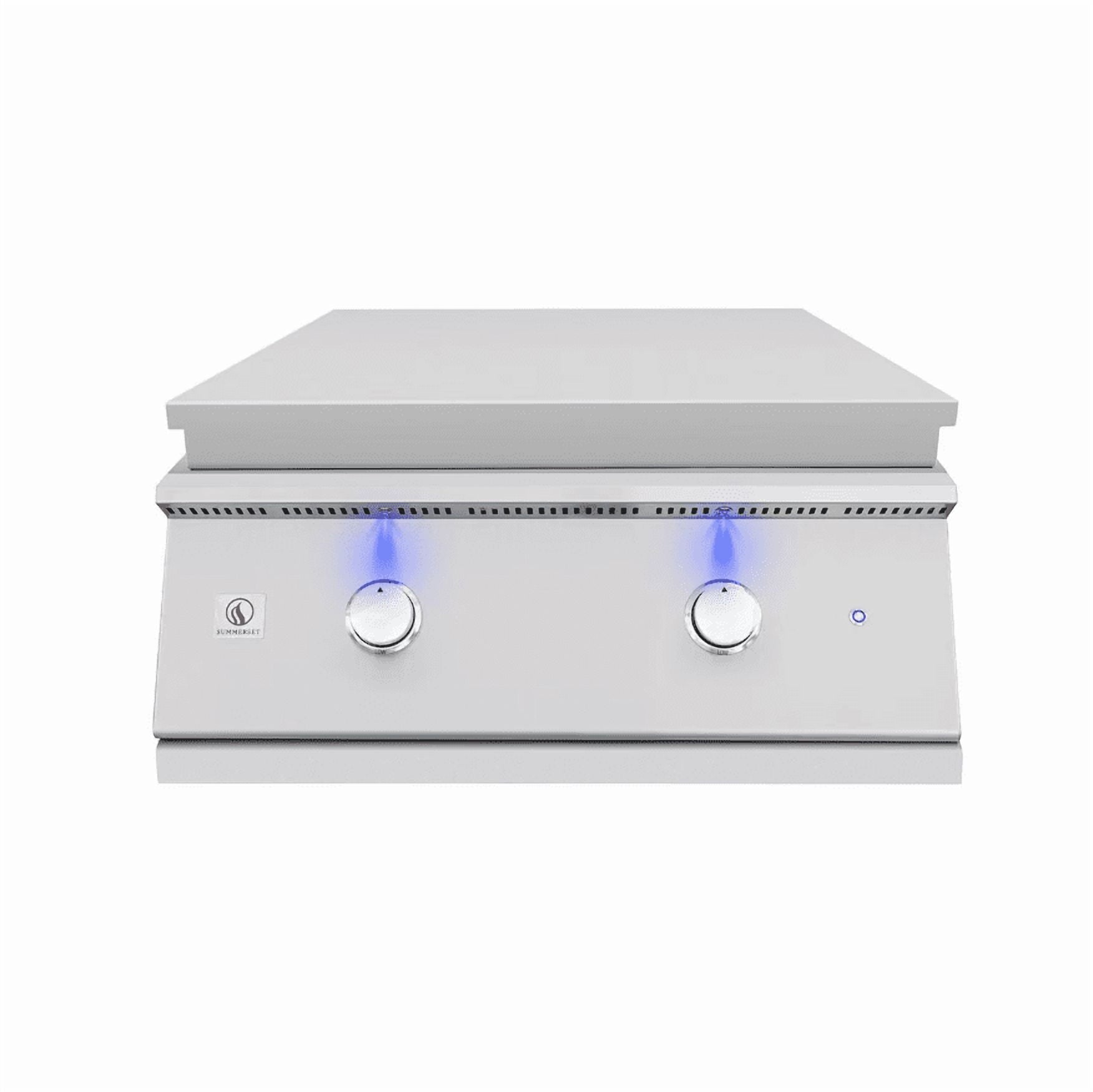 Discover new culinary possibilities with the all-new premium 30″ Gas Griddle by Summerset. Built with durable #304 stainless steel, this heavy-duty flat top grill is a perfect addition to your outdoor kitchen, expanding your cooking options and introducing a range of exciting flavors. Its spacious 495-square-inch cooking surface, made from half-inch thick steel, is fueled by two powerful 18,000 BTU U-Tube burners, delivering a combined 36,000 BTUs of searing heat—ideal for grilling steaks, burgers, carne asada, eggs, pancakes, and more. Featuring blue LED-lit front panel controls and a full-size #304 stainless steel cover, your griddle is protected from the elements and always ready for your next meal. Ignite the Gas Griddle by Summerset and elevate your outdoor cooking to a whole new level.