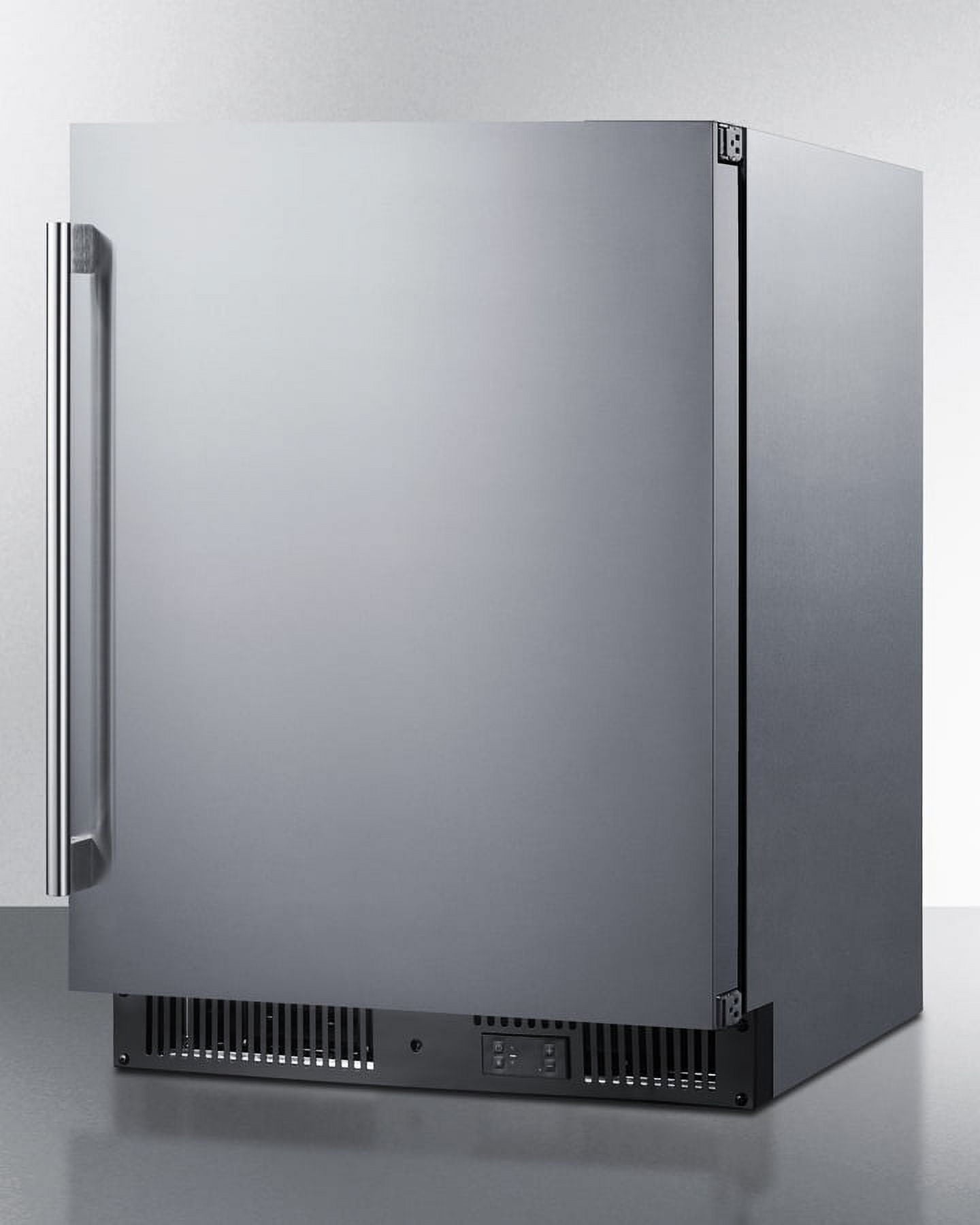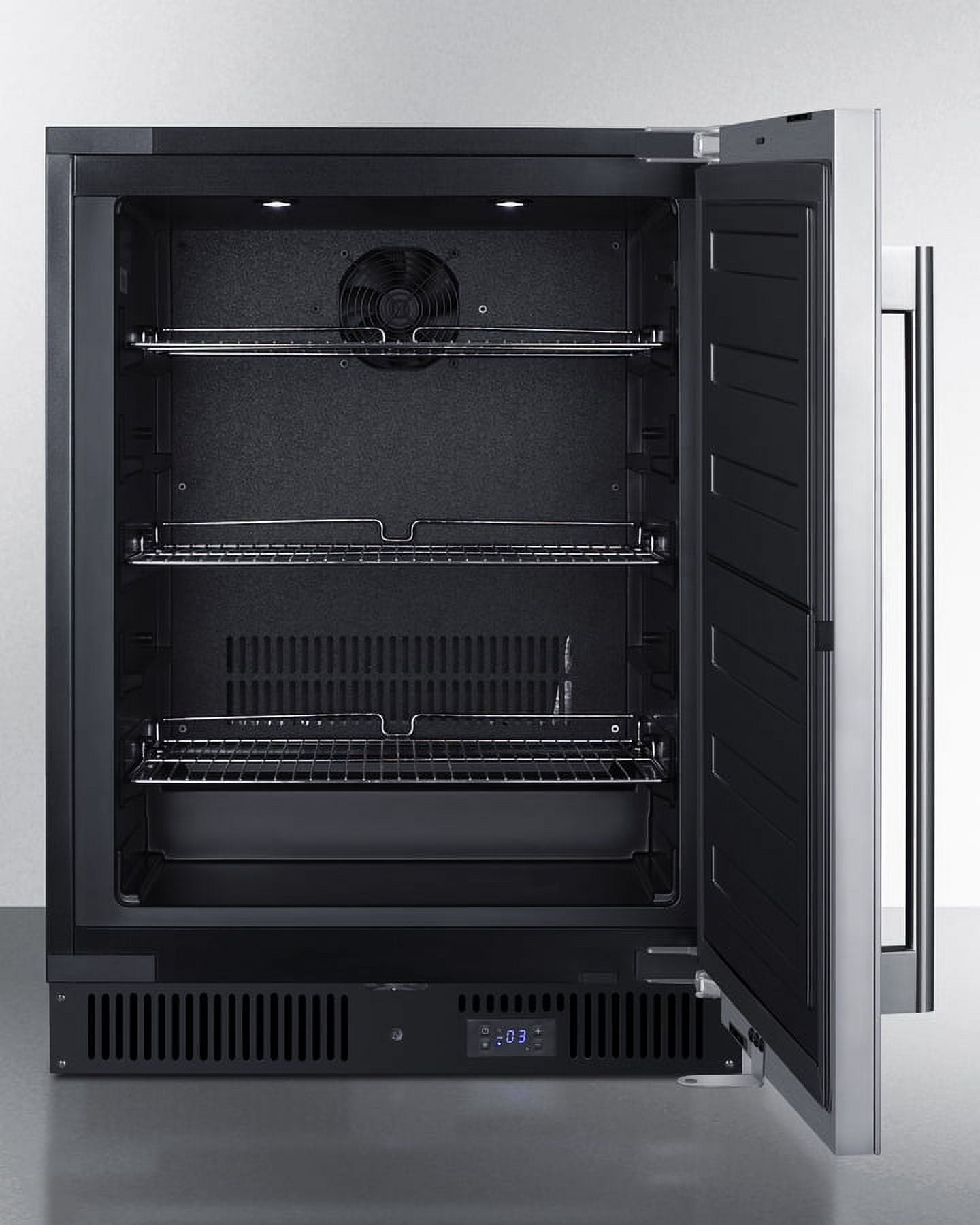 Summit manufactures the industry’s largest selection of built-in appliances sized for use under lower ADA compliant counters, including frost-free freezers specially designed to match our popular ADA compliant refrigerators. Model ALFZ53CSS is a 24″ wide all-freezer that can be paired with our AL54 all-refrigerator. Sized at just 32″ high, it can easily be installed under an ADA compliant counter. This freezer features a stainless steel wrapped cabinet and user-reversible stainless steel door with a pro style handle. A factory-installed lock offers added security with two keys included. This unit comes with a front-breathing system that enables recessed built-in installation, while the fully finished exterior also allows freestanding use as needed. A right angle plug and sealed back design offers added space savings. Inside, the ALFZ53CSS utilizes frost-free operation with fan-forced cooling to ensure low maintenance and even temperature distribution. Recessed LED lighting offers an attractive yet efficient look inside the black interior. Three adjustable chrome shelves can be set at five different positions to best accommodate your storage needs. Additional user-friendly features include an open door alarm, high temperature alarm, and Sabbath mode setting that lets you disable some of the electrical elements during periods of observance. This unit features intuitive digital controls located in the external kickplate. The ALFZ53CSS freezer is approved for residential use and also ETL-S listed to NSF-7 standards for commercial applications. With its deluxe style and user-friendly features, this unit is the perfect choice for home or commercial kitchens. It’s a perfect match for our AL54CSS all-refrigerator. Additional door finishes are available, including panel-ready, black stainless steel, and our new vibrant colors. Browse the full selection to explore your options.
