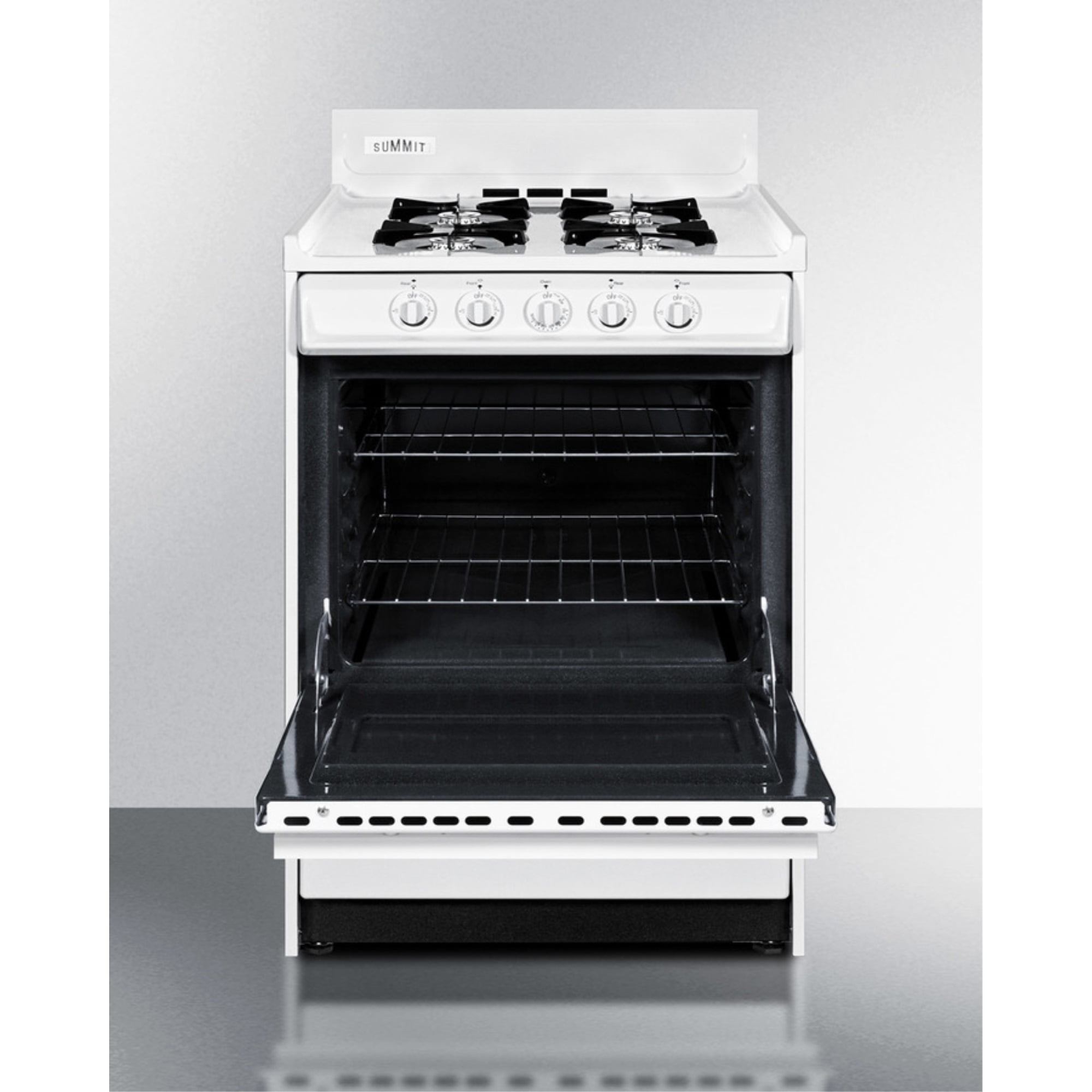 Summit Appliance offers a wide selection of American-made household ranges built to last in space-challenged kitchens, including off-grid settings with non-traditional power needs. Sized at just 24″ wide, the WLM610P is a complete LP gas range with four open 9000 BTU burners, a 2.92 cu.ft. oven, and lower drop-down broiler compartment. It utilizes battery start ignition, ideal for rural areas or other homes not using electricity to power appliances. This item is preset for propane/LP gas connections. For the same item designed for use with natural gas, see the WNM610P. With a classic white exterior, the WLM610P matches any kitchen style. It is sized with a convenient 24″ depth, ideal for L-shaped or galley kitchens where every inch counts. The recessed door design helps to protect adjacent cabinetry. Upfront push-to-turn knobs ensure easy, safer cooking, preventing users from reaching over hot burners to adjust the heating. Inside, the porcelain oven includes two adjustable racks to accommodate a variety of sizes. Made in the USA, Summit’s slim-fitting ranges offer lasting durability in the prefect fit. Browse our full selection to explore your choices.