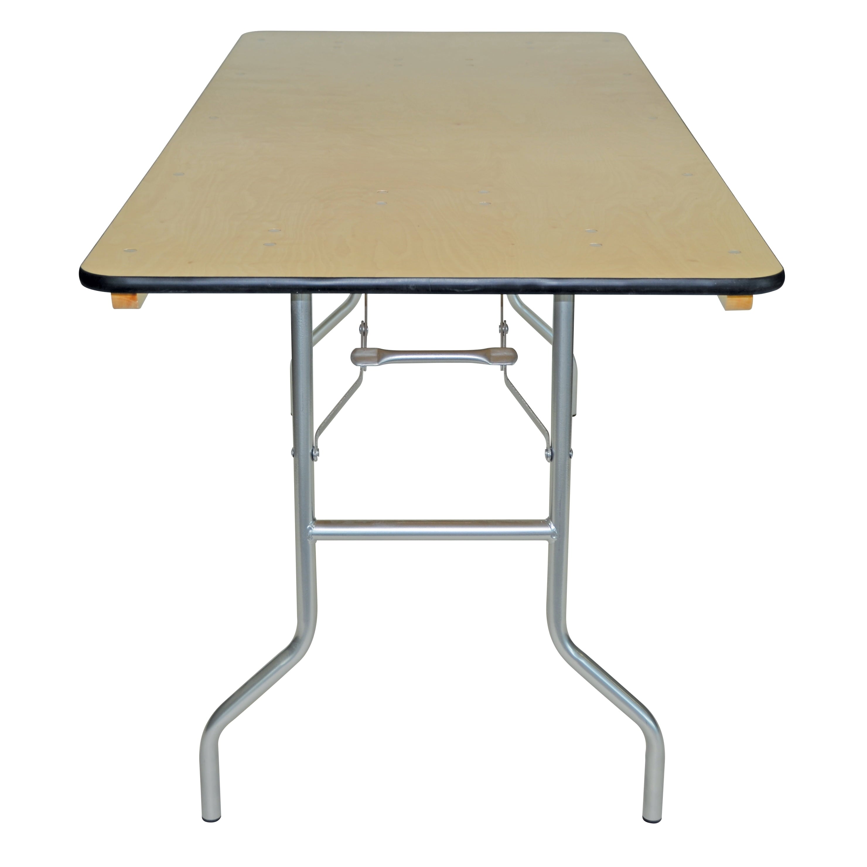 These heavy-duty birch wood folding tables are commercial grade. They are built with steel and plywood and are sturdy and strong. The 3/4″ thick plywood top has multi coats of polyurethane for a strong and durable finish. The edging provides added protection from damage when handling. The table legs are wishbone style with 16 gauge powder coated steel and superior bolt-through construction. They are perfect for any event.
