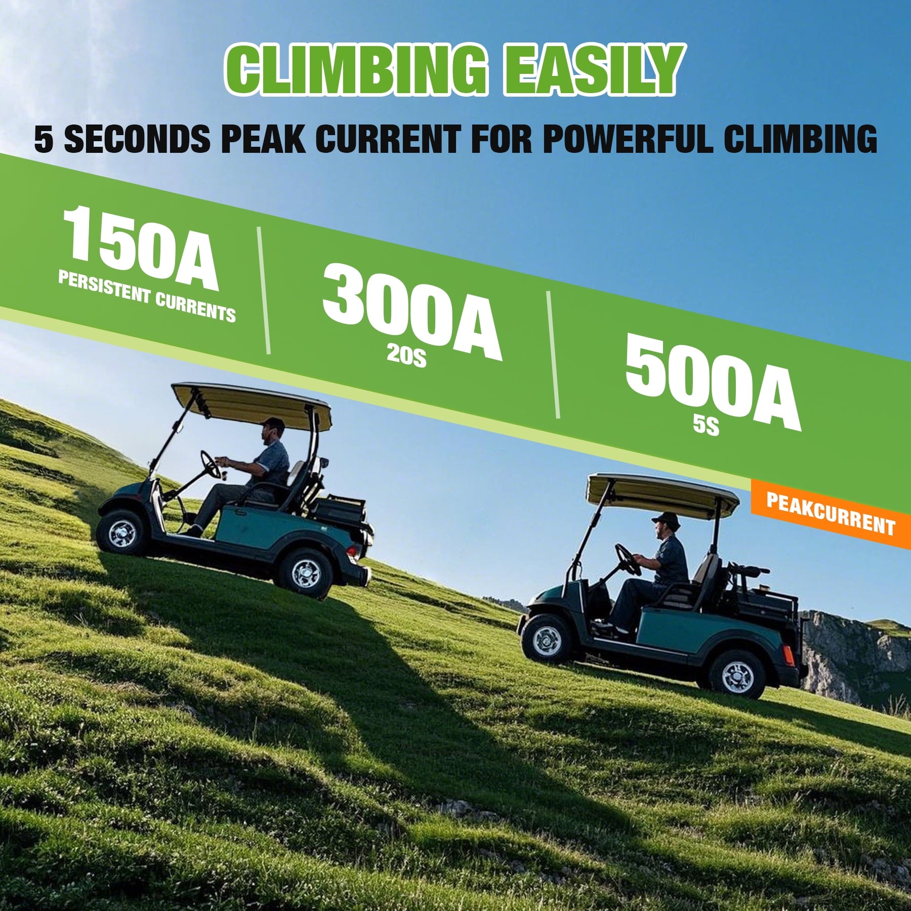• 【Effortless Installation & Space Optimization】Pre-configured terminals and compact single-unit design replace bulky lead-acid setups in minutes. Fits standard golf cart compartments (10.25” width) while reducing weight by 70% – no welding or complex wiring required.