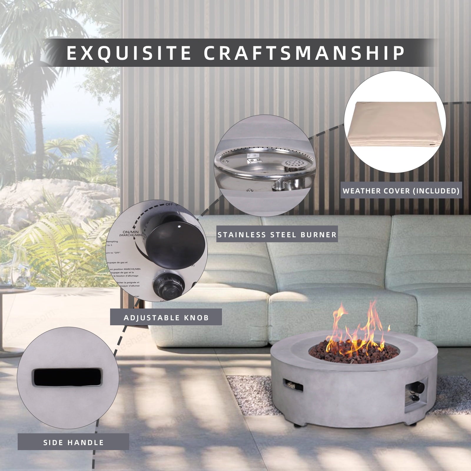 - 【Durable and Weather-Resistant】: Crafted from durable Terrafab material, our fire pit is built to withstand the elements. It is resistant to rust, corrosion, and fading, ensuring long-lasting beauty and functionality. The included weather-resistant cover protects your fire pit when not in use, keeping it looking like new