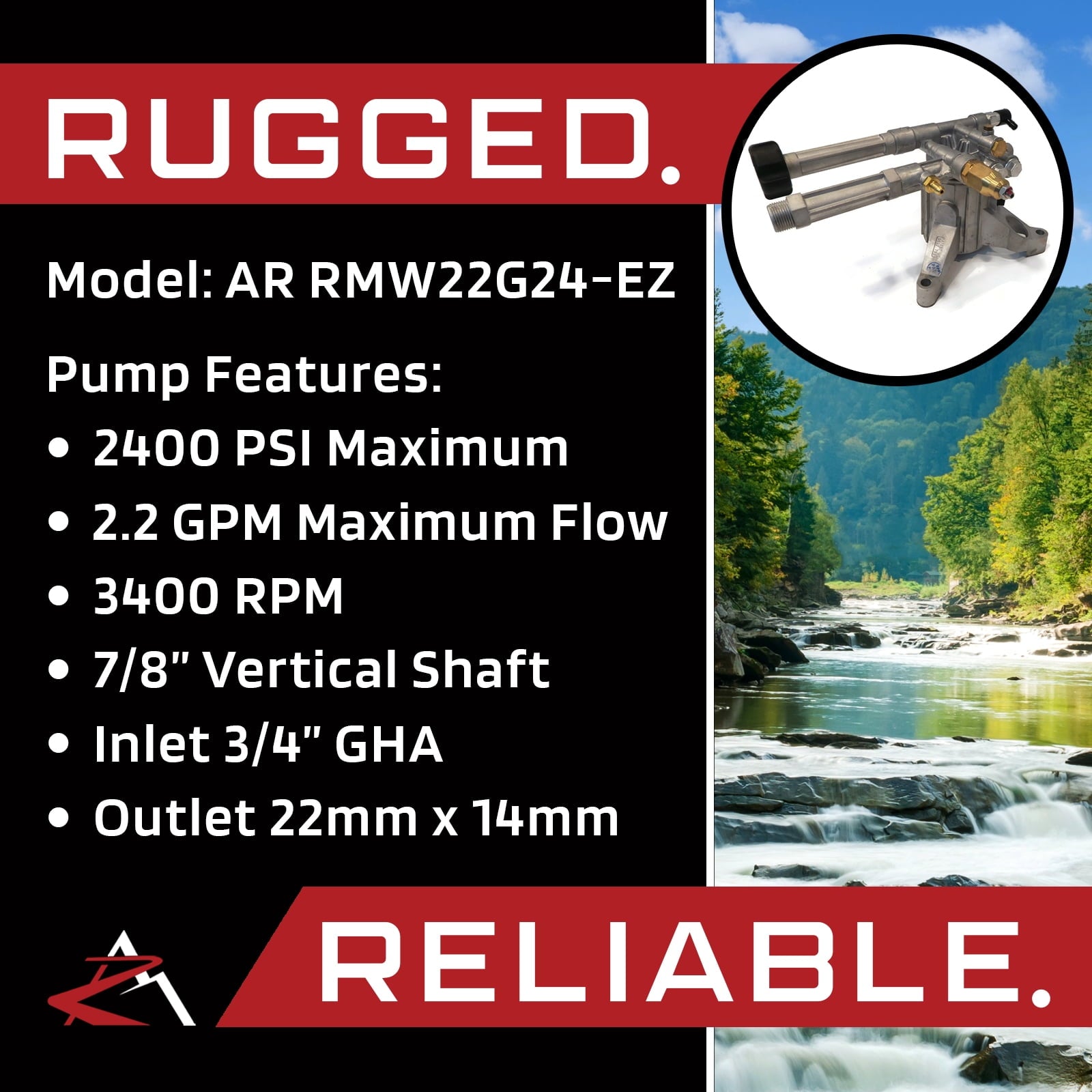- Includes – (1) Vertical Pressure Washer Pump, RMW22G24-EZ, (1) Thermal Release Valve & (1) Chemical Injector (both come installed); comes as shown in the first image (does NOT include engine shaft key or bolts)