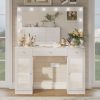 - 💟【Ample Storage Space】The large vanity table features four shelves, a spacious composite glass tabletop, three drawers, and two cabinets. These provide ample storage space for organizing your belongings neatly and saying goodbye to clutter.